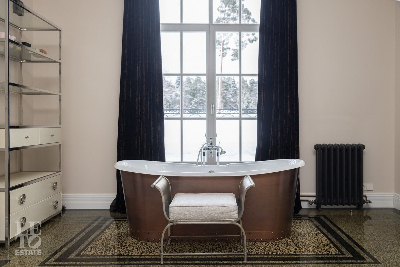 Продуманная планировка включает в себя 7 спален, кабинет, множество мест хранения, а также косметологический кабинет и студию звукозаписи. Для удобства перемещения в доме предусмотрен лифт. Просторная SPA-зона с бассейном, сауной, хаммамом, массажным кабинетом и купелью позволяет расслабиться и насладиться уходом за собой. Особое внимание уделено просторной террасе с зоной барбекю и камином, где можно наслаждаться живописными видами и свежим воздухом в любое время года.