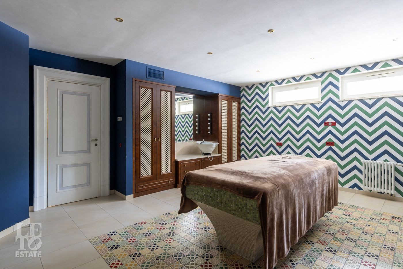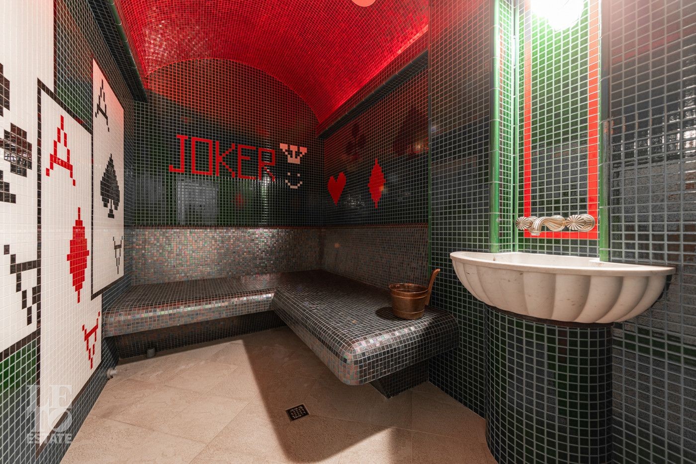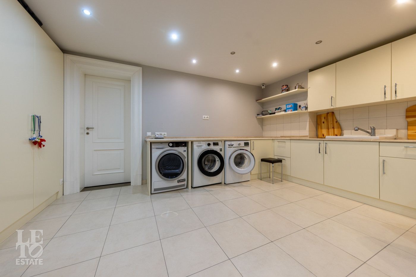 Цокольный этаж: котельная, 2 кладовых помещения, чемоданная, салон красоты-СПА, винный погреб, студия звукозаписи, спальня, постирочная, хозяйственный блок., 2 санузла.