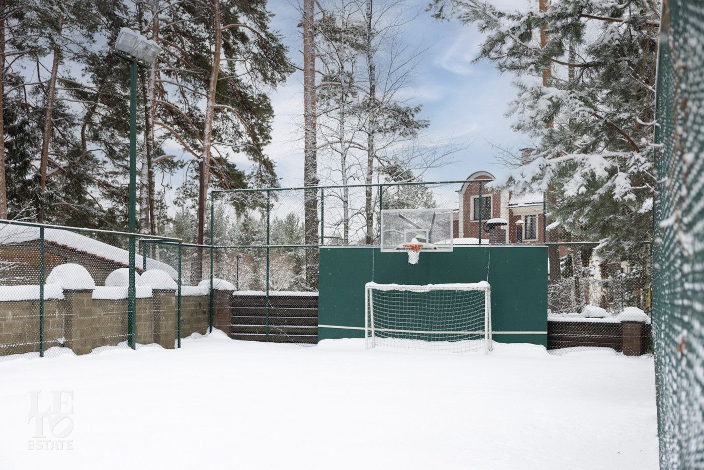 Большой участок площадью 41 сотка утопает в зелени, создавая приватную атмосферу уединения и покоя. Придомовая территория с футбольным полем и спортивной площадкой добавляет активности и разнообразия в повседневную жизнь. Фонтан при въезде в усадьбу, парковка на 6 автомобилей, гараж на 3 машиноместа с квартирой для персонала на втором этаже – все продумано до мелочей для удобства и комфорта владельцев.