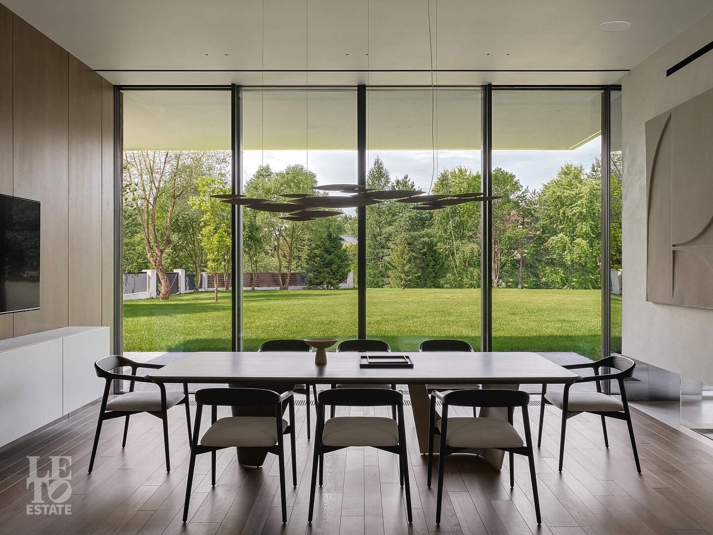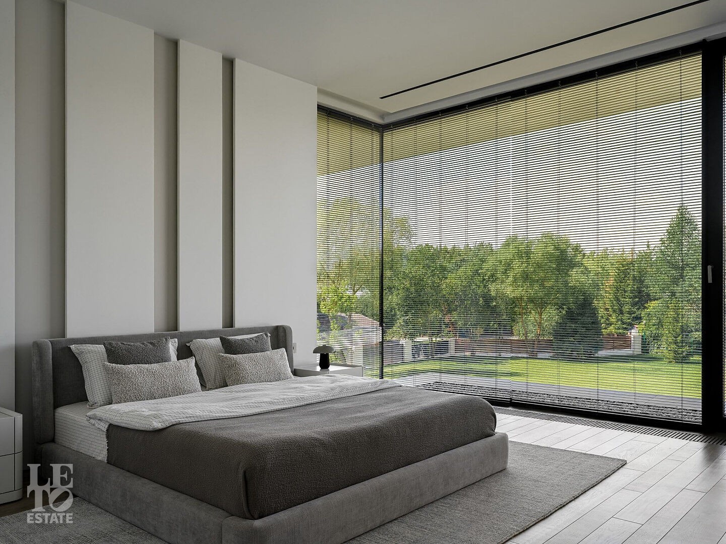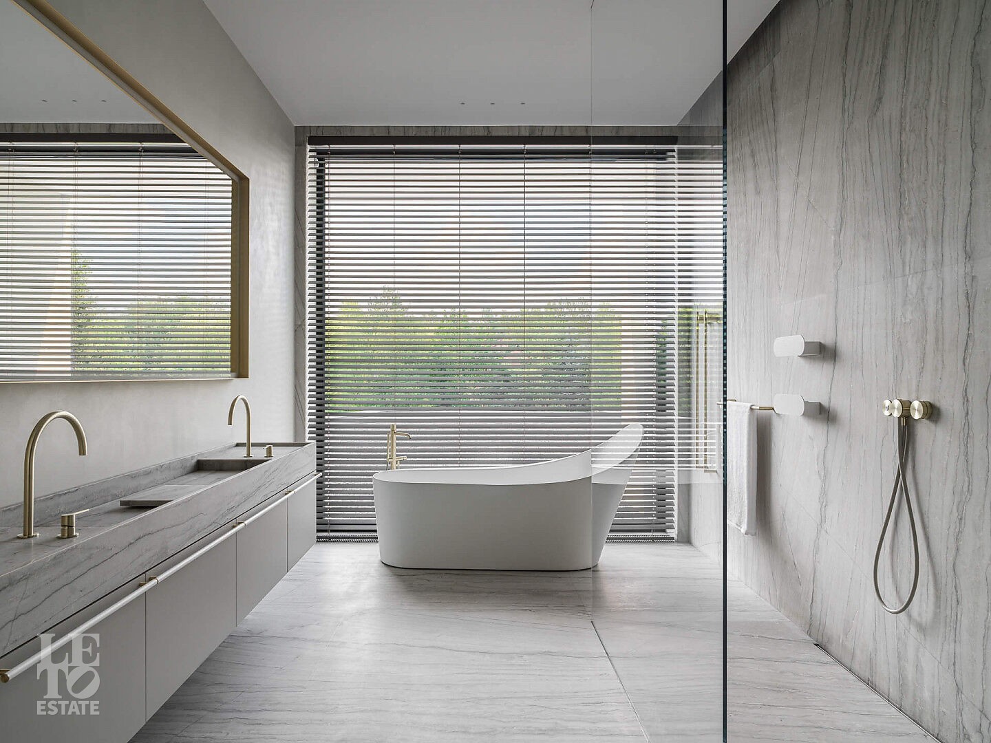 В доме: мастер-спальня с двумя ванными и гардеробной, разделенной на зону для него и для нее, а также 4 спальни с отдельными гардеробными и ванными комнатами, спа-комплекс с бассейном/сауной/хаммамом, кабинет, хобби-комната под спортивный зал, детскую игровую или помещение для занятий.
