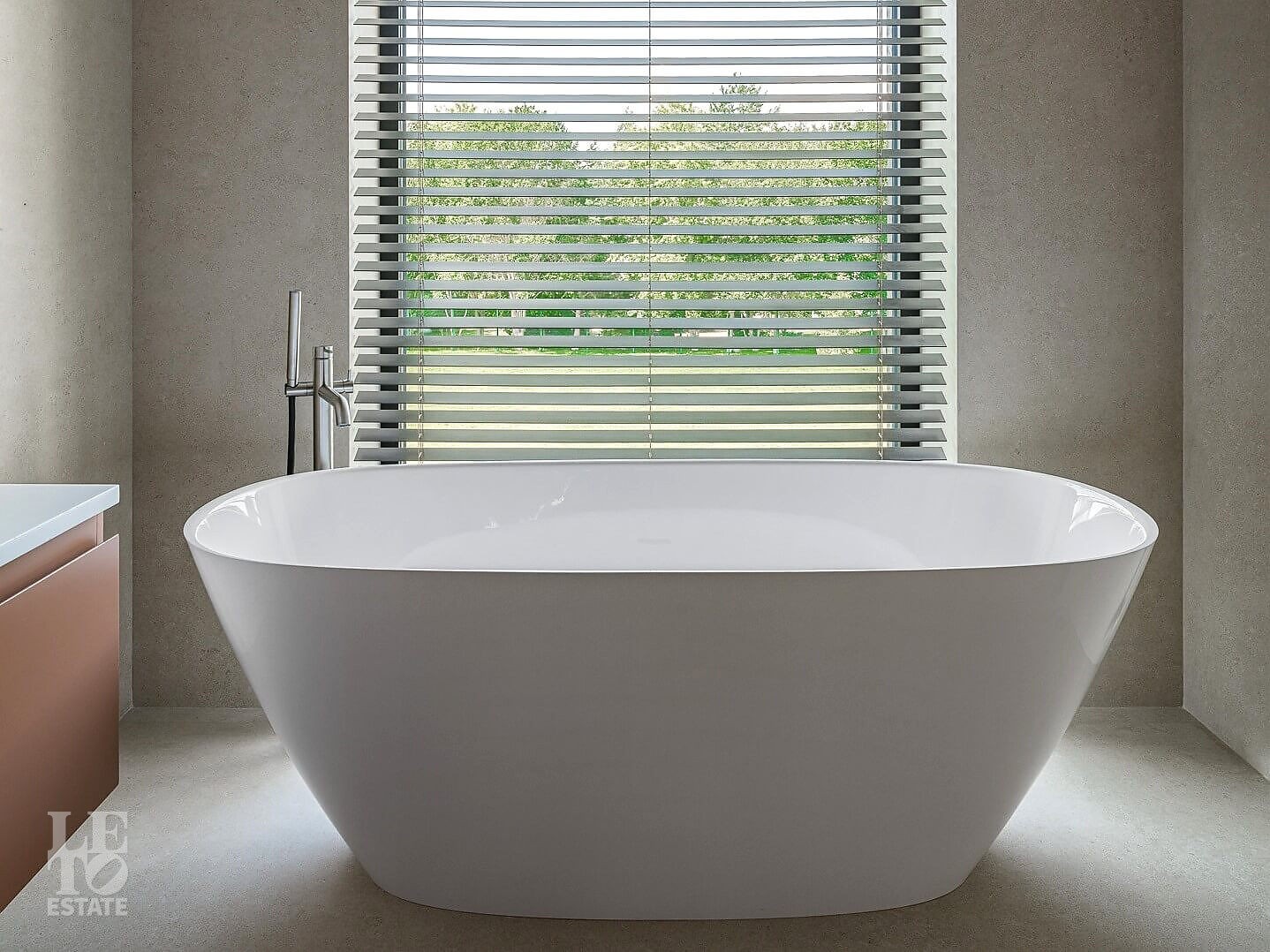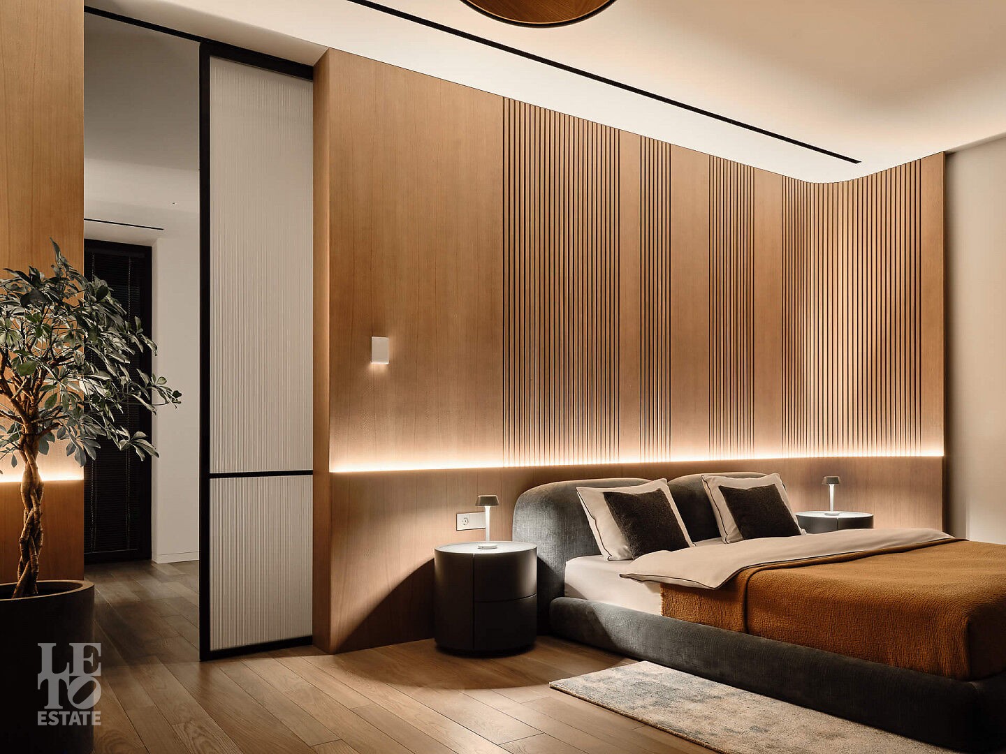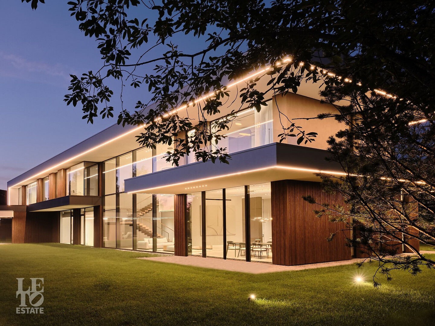 В доме: мастер-спальня с двумя ванными и гардеробной, разделенной на зону для него и для нее, а также 4 спальни с отдельными гардеробными и ванными комнатами, спа-комплекс с бассейном/сауной/хаммамом, кабинет, хобби-комната под спортивный зал, детскую игровую или помещение для занятий.