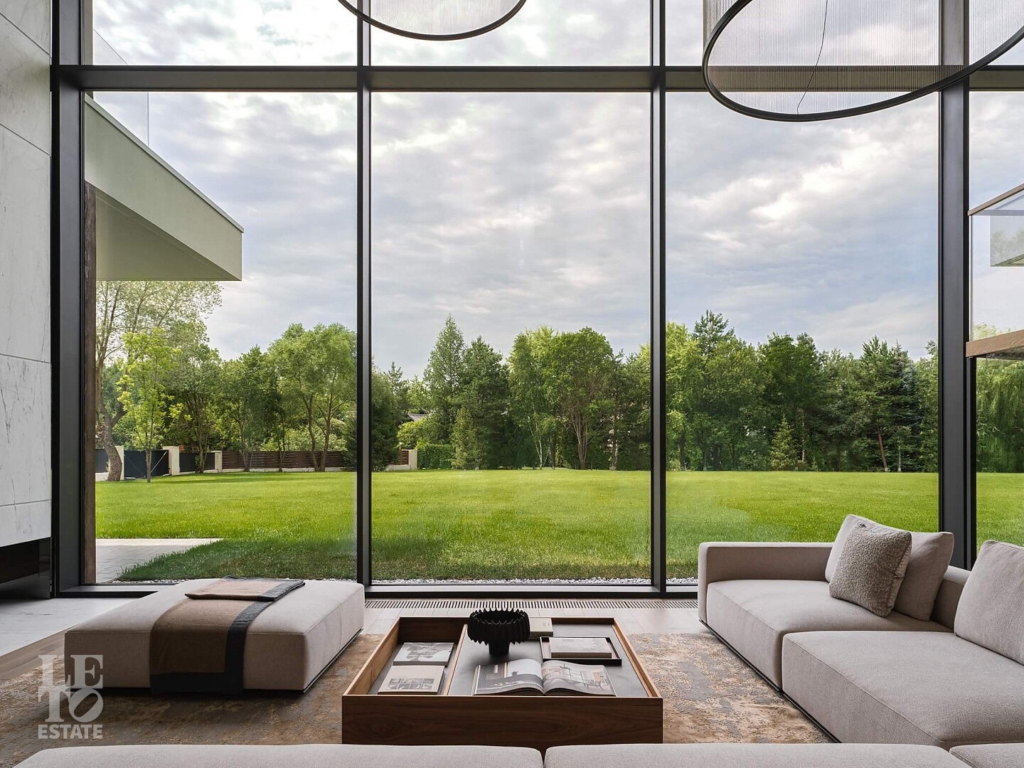 Maison du Soleil - новый дом в стиле минимализм общей площадью 1238 кв.м расположен в поселке Никольская слобода, самом близком из всех элитных поселков Новорижского шоссе.