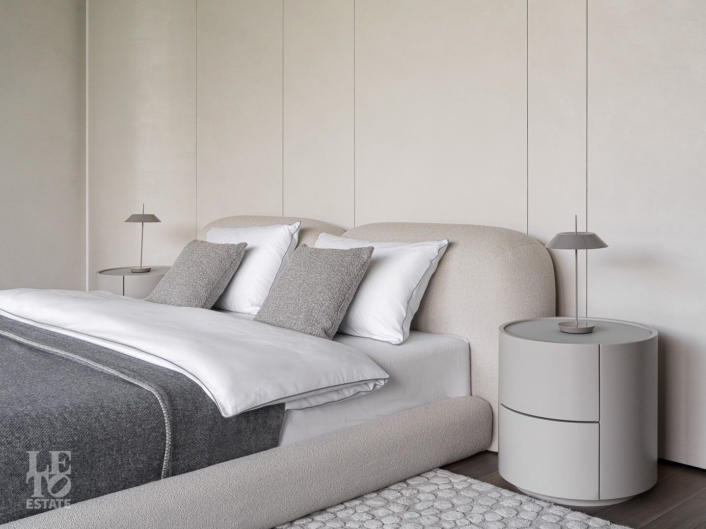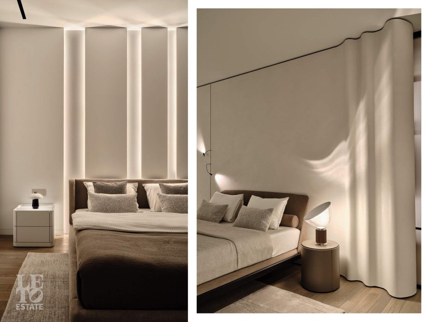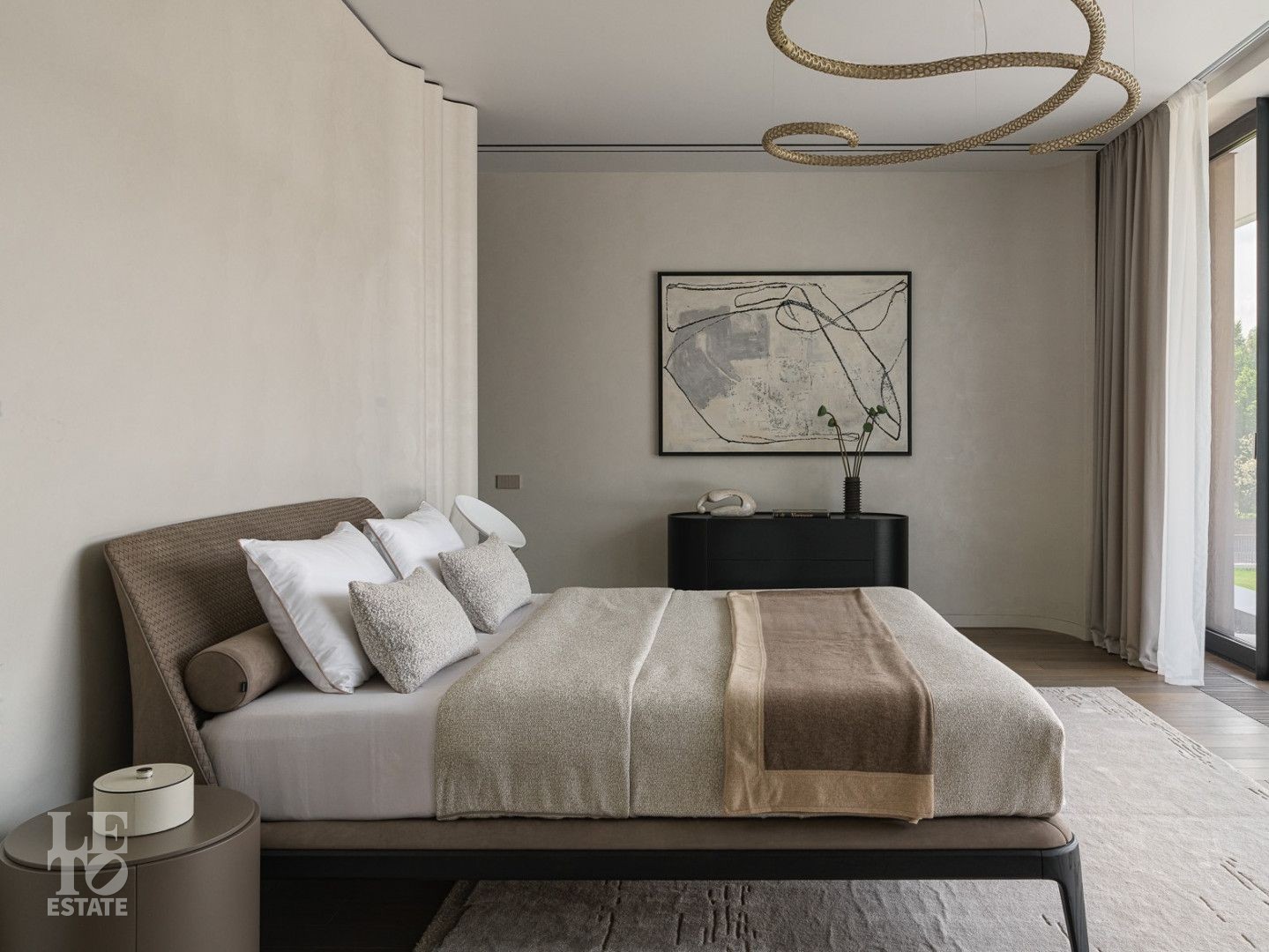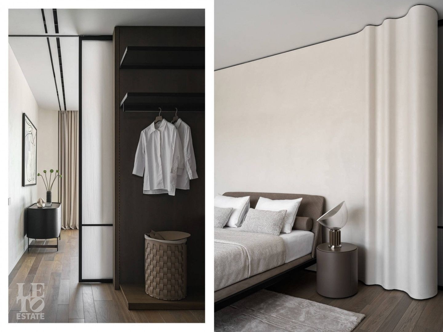 Второй этаж: мастер-спальня с просторной гардеробной и двумя ванными комнатами, спальня с выходом на балкон, ванной и гардеробом, две спальни с ванными и гардеробами.