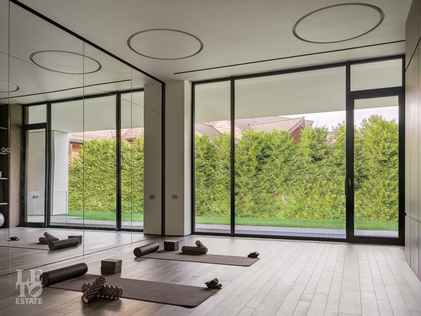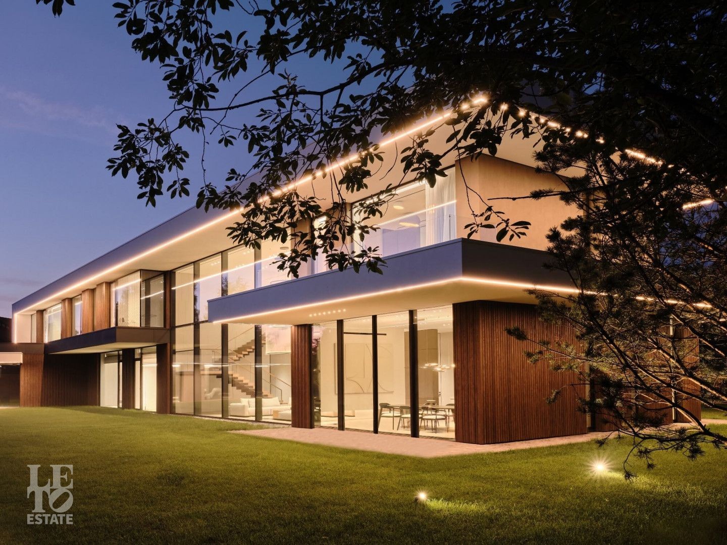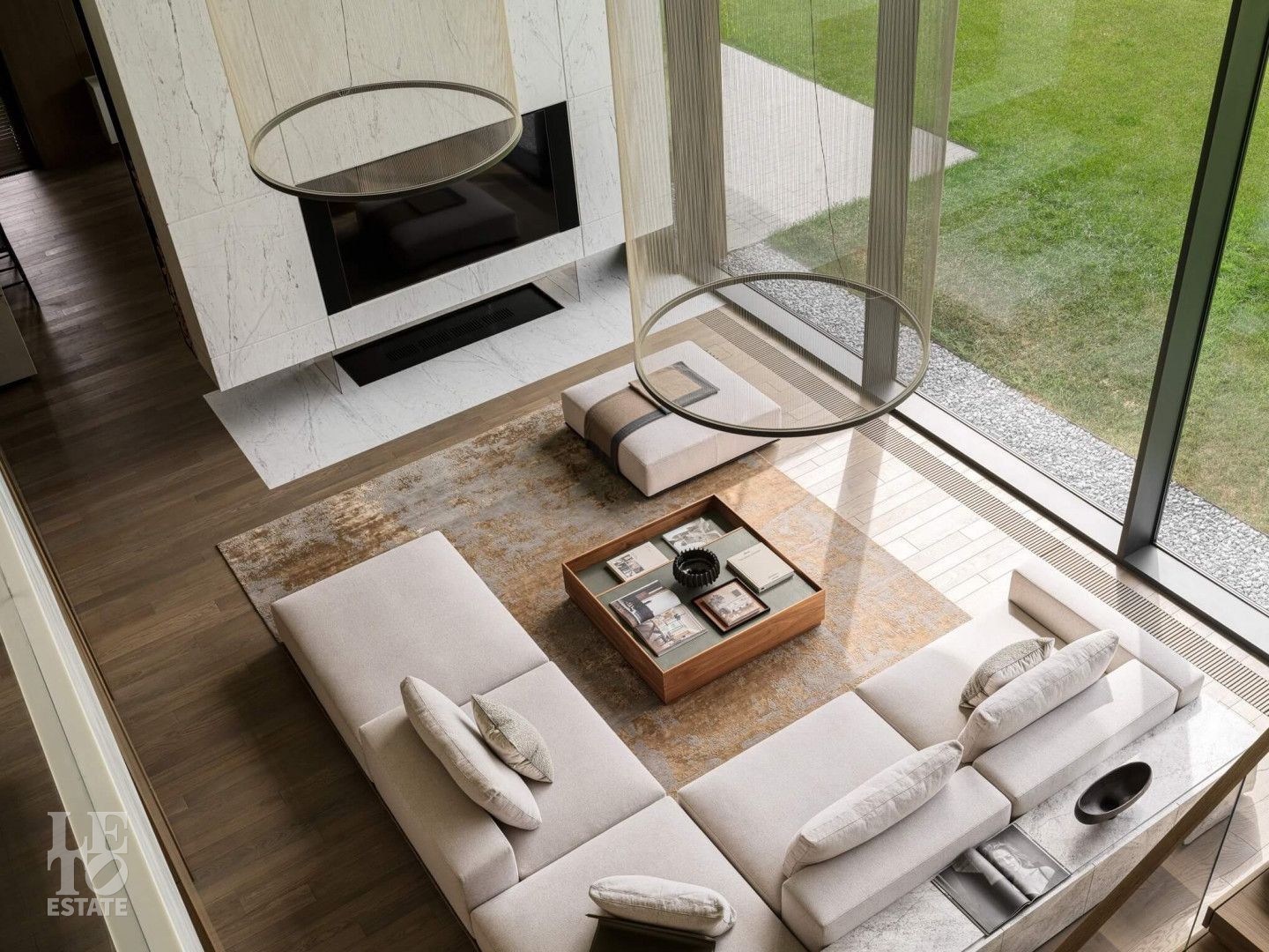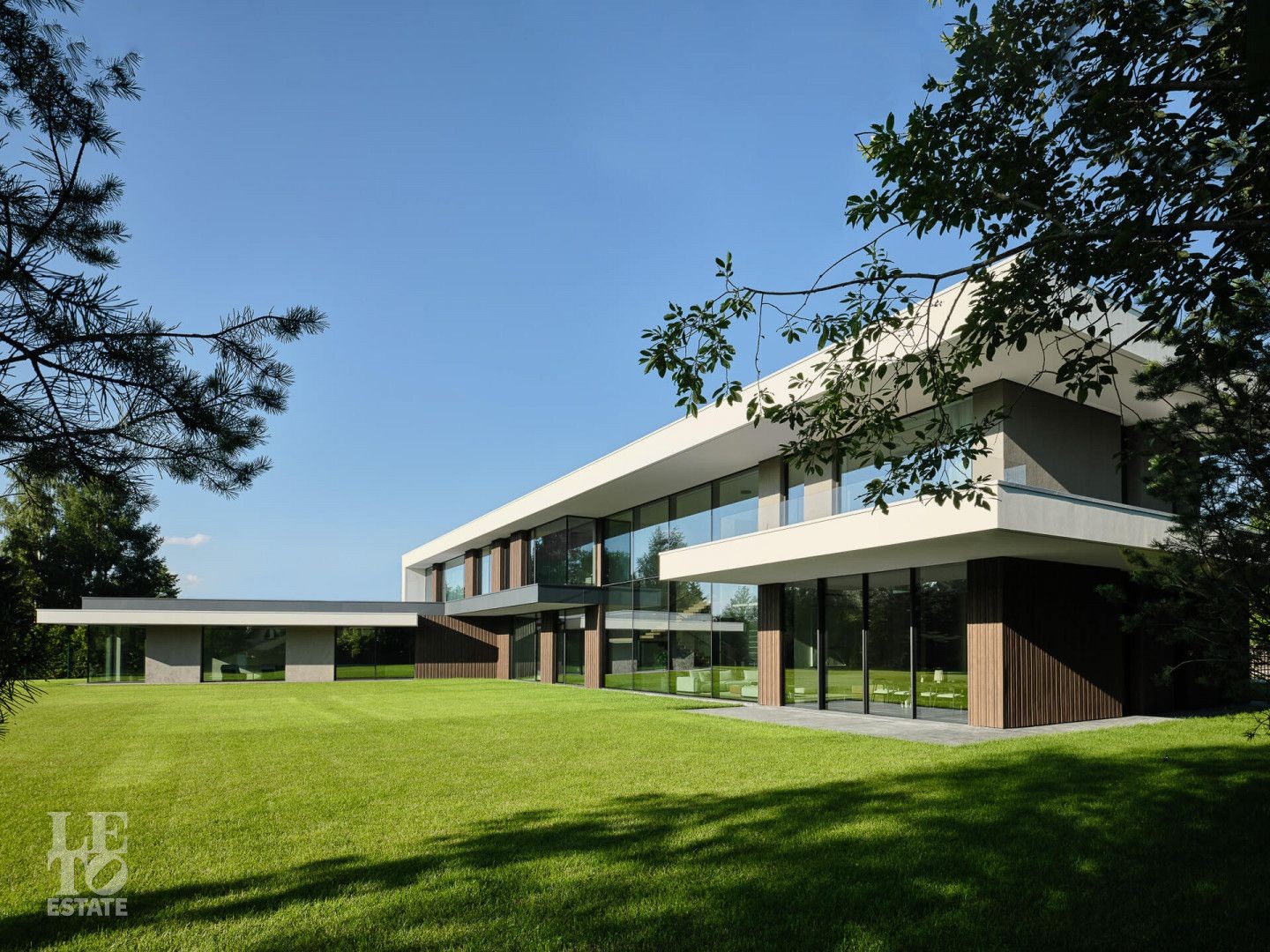 Особенности дома: новый современный дом; панорамные окна в пол; гостиная со вторым светом и высотой потолков 7,35 м; двусторонний камин; лифт; двухмаршевая парящая лестница; спа-комплекс с переливным бассейном 11*4,5 м с противотоком, с джакузи и тропическим душем, с зоной отдыха и безбарьерным выходом на террасу, с сауной, хаммамом и массажным кабинетом; парадная кухня с островом и зоной завтраков на 4 посадочных места; техническая кухня и винная комната; гараж для автомобилей на 3 м/м с с/у и техническим душем и лапомойкой для собак; полная система автоматизации “умный дом”; приточно-вытяжная вентиляция; центральное кондиционирование с возможностью установки системы увлажнения; автономный блок для персонала с 2 спальнями.