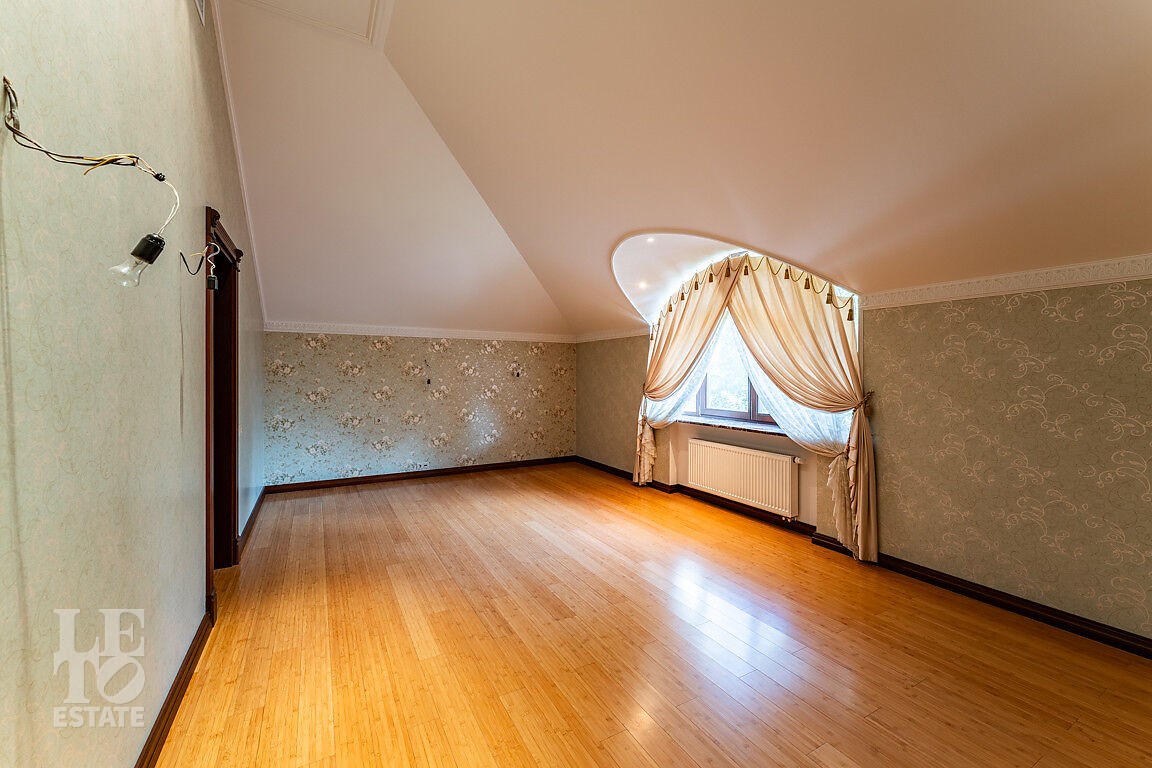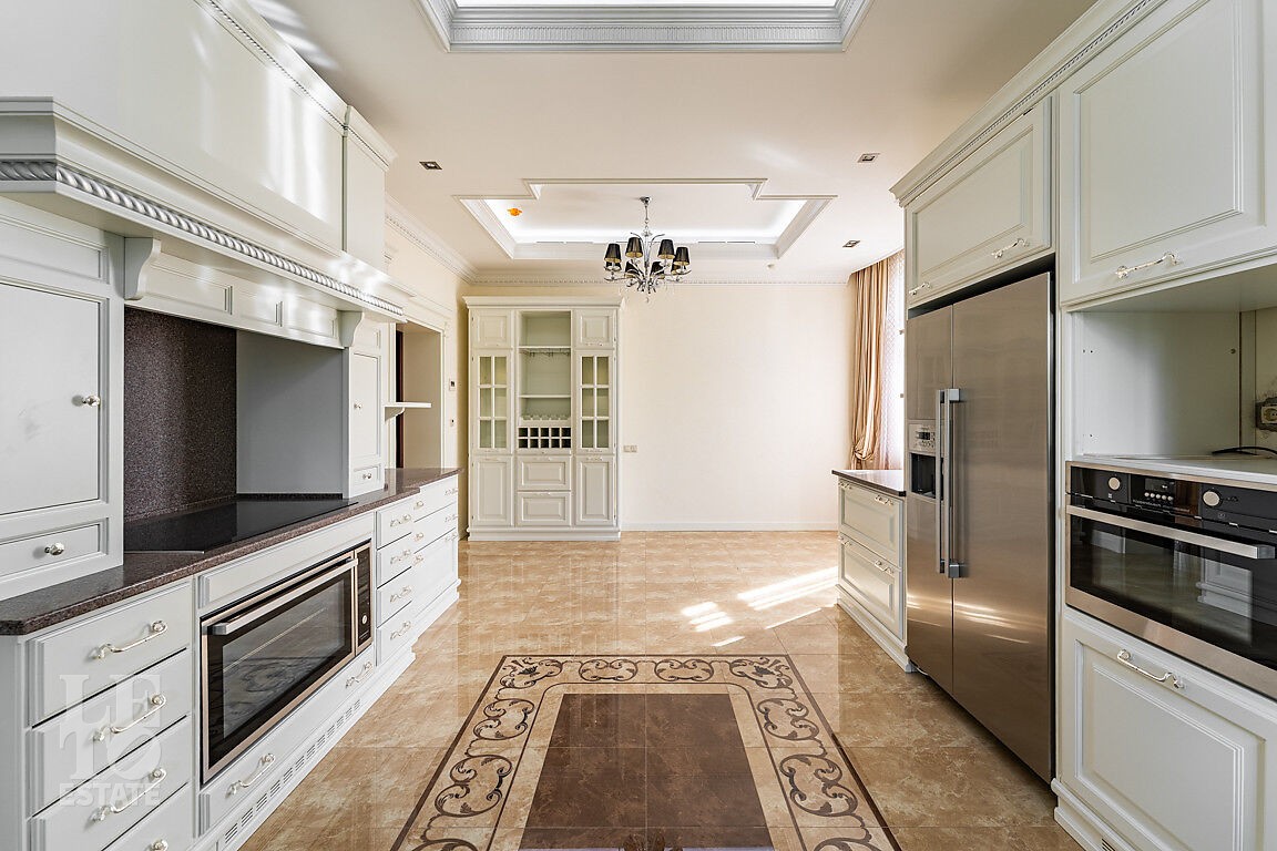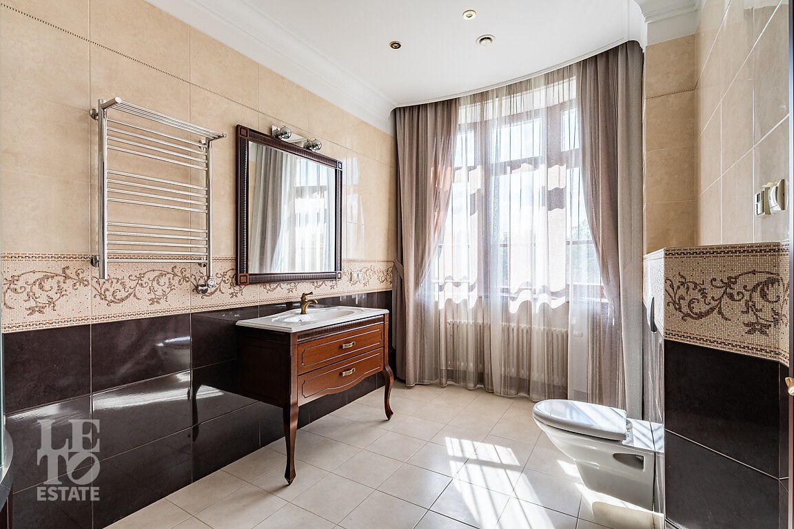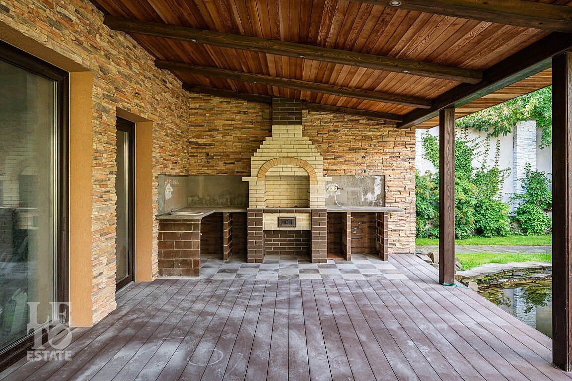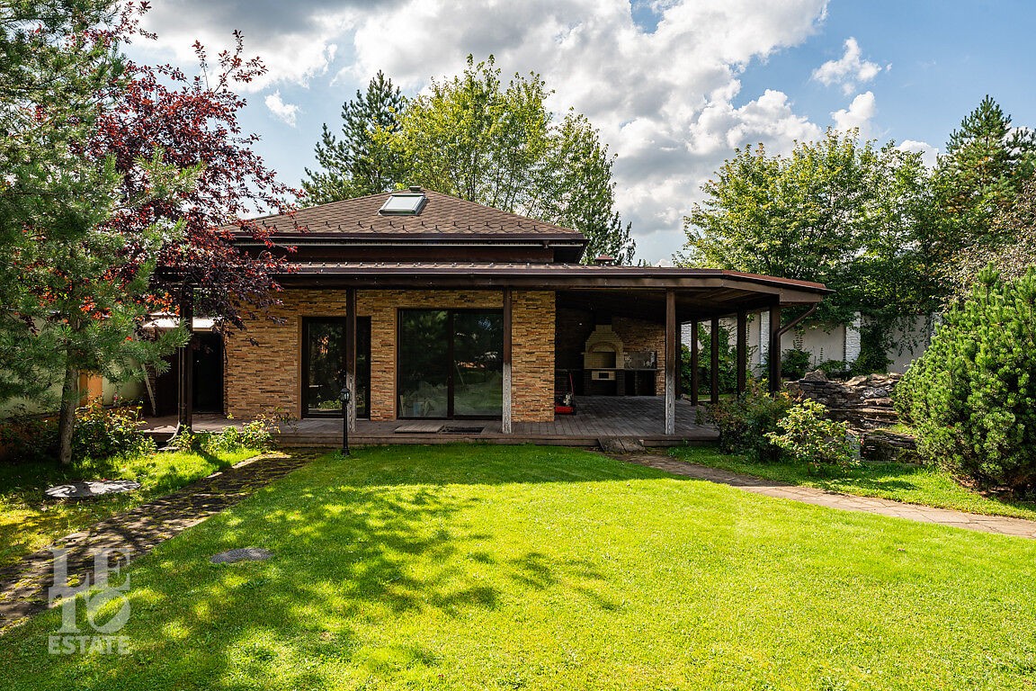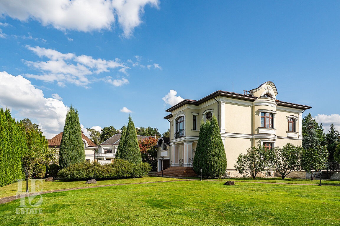 Особняк в классическом стиле в элитном посёлке Никольская Слобода. На участке выполнен ландшафтный дизайн, вымощены дорожки, установлено уличное освещение, ухоженный газон. На участке также расположены: теплая зона барбекю с террасой, дом для персонала.