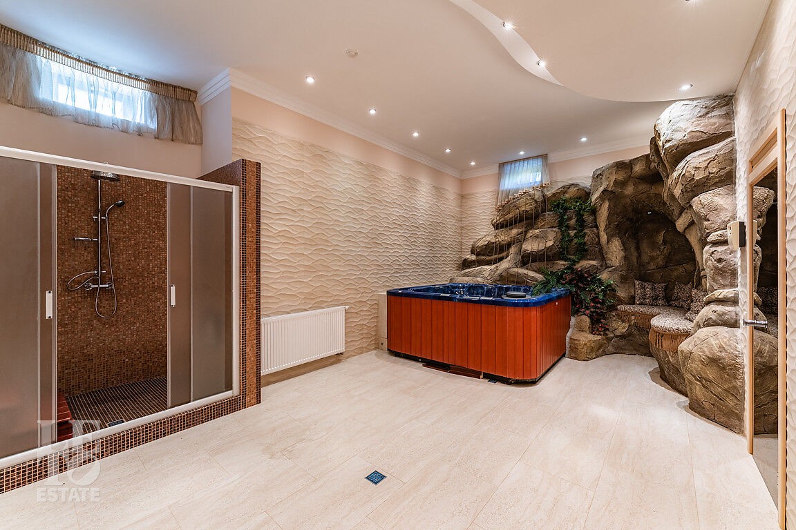 Цоколь: бильярдная, сауна, джакузи, с/у, душевая, спортзал, сейфовая комната, оружейная комната, кладовые комнаты, постирочная.