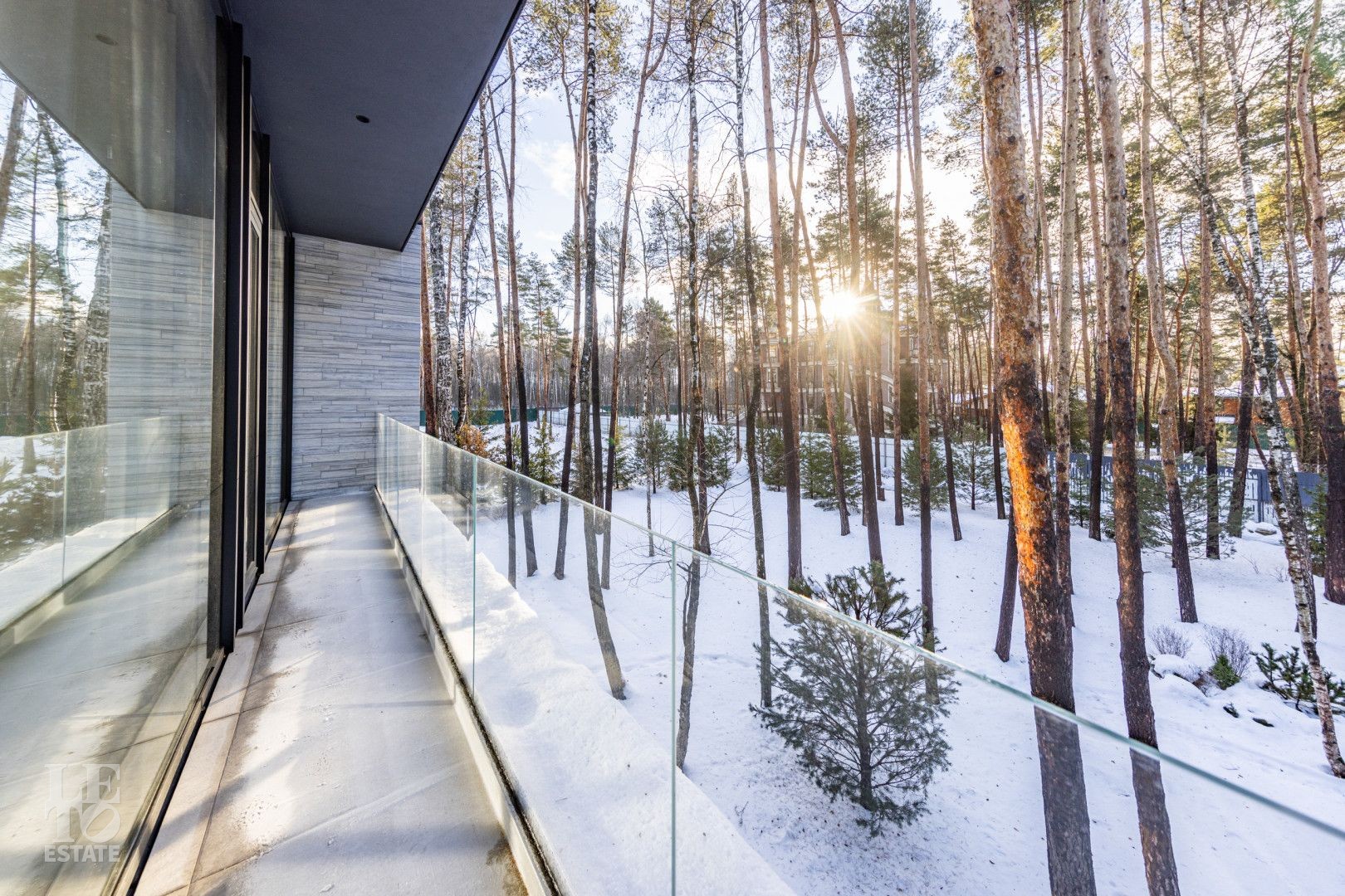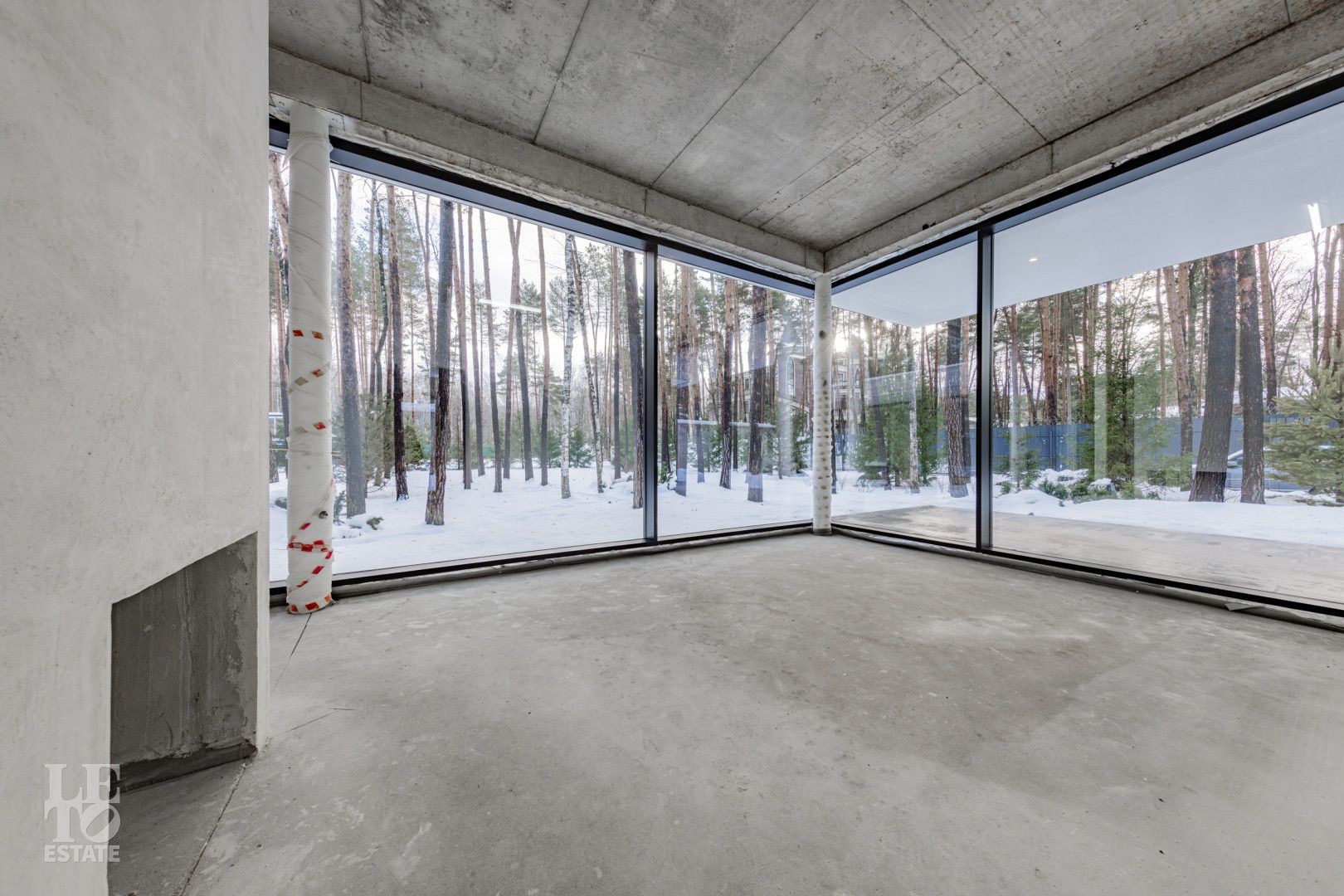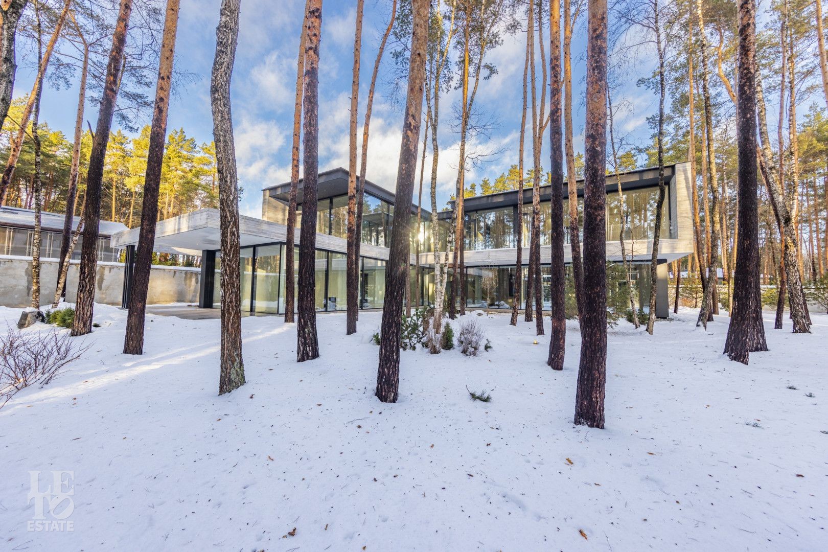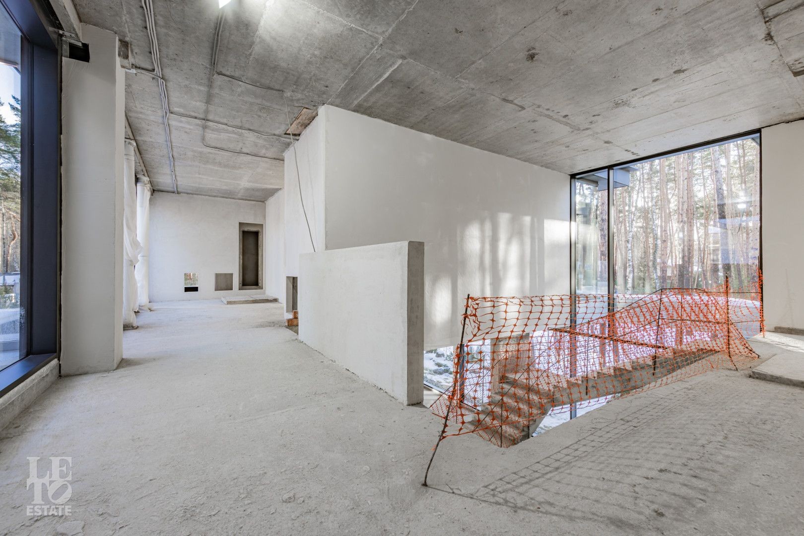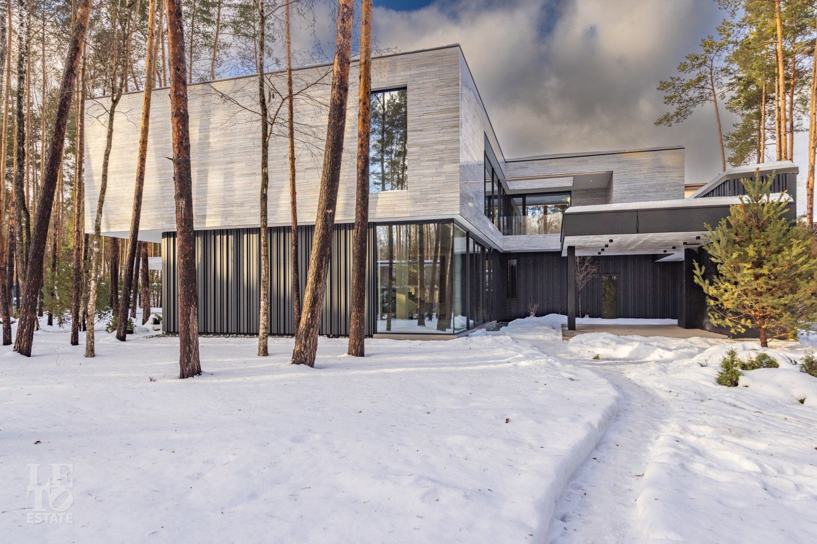 Особенности дома: ультрасовременная архитектура, панорамные окна (остекление занимает 50% площади фасада), по настоящему лесной участок, высокие потолки (после отделки: 3,2-3,7 м) и межкомнатные двери (до 2,6 м в основных помещениях). Полностью завершены фасадные и ландшафтные работы.