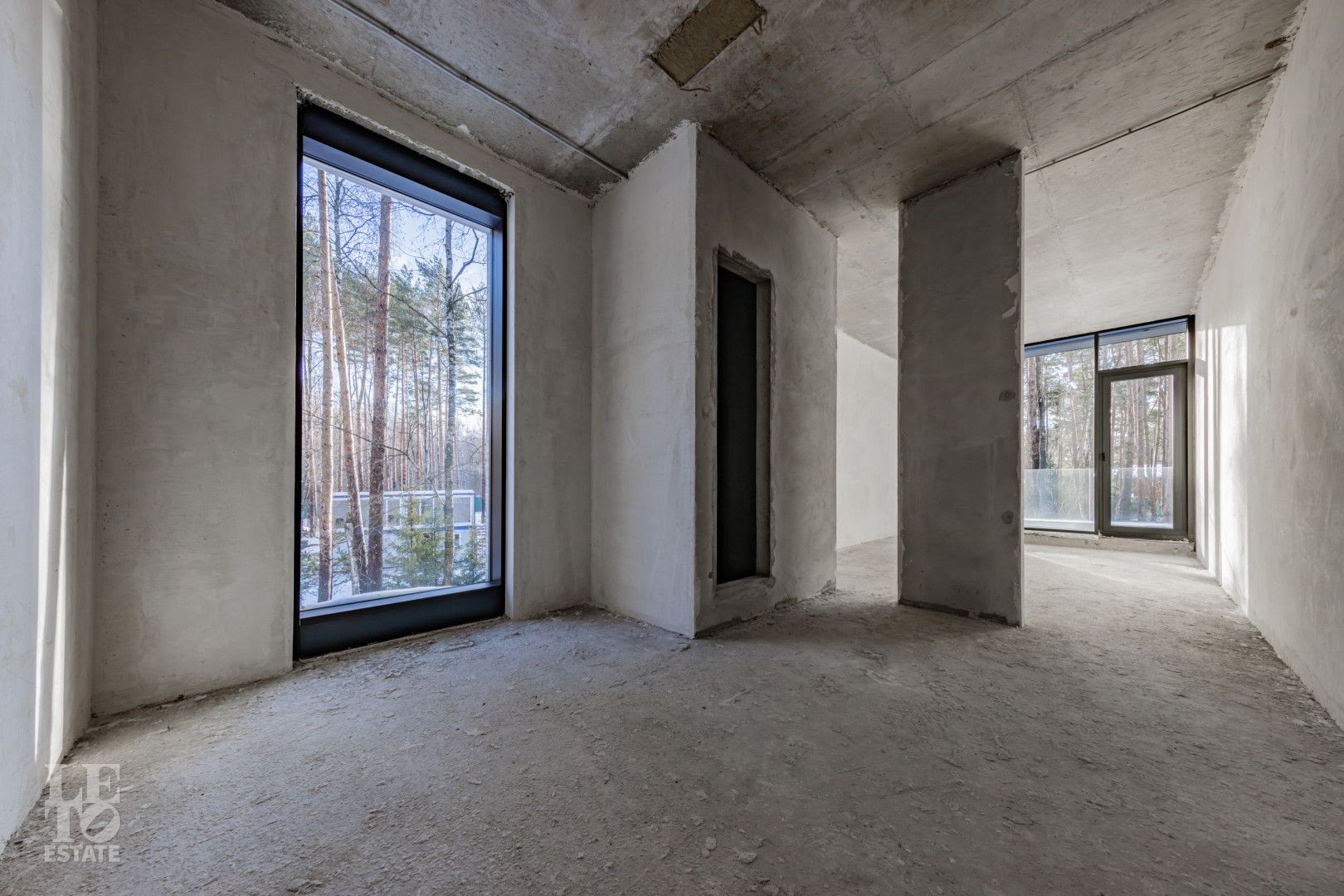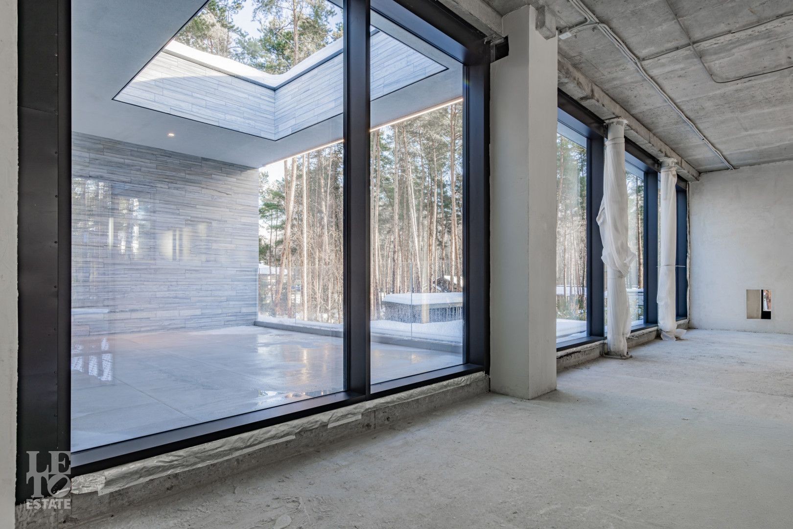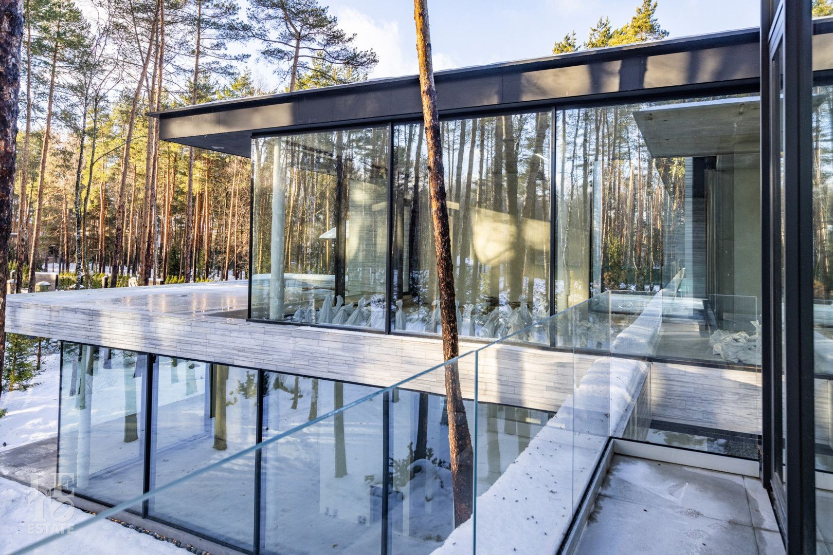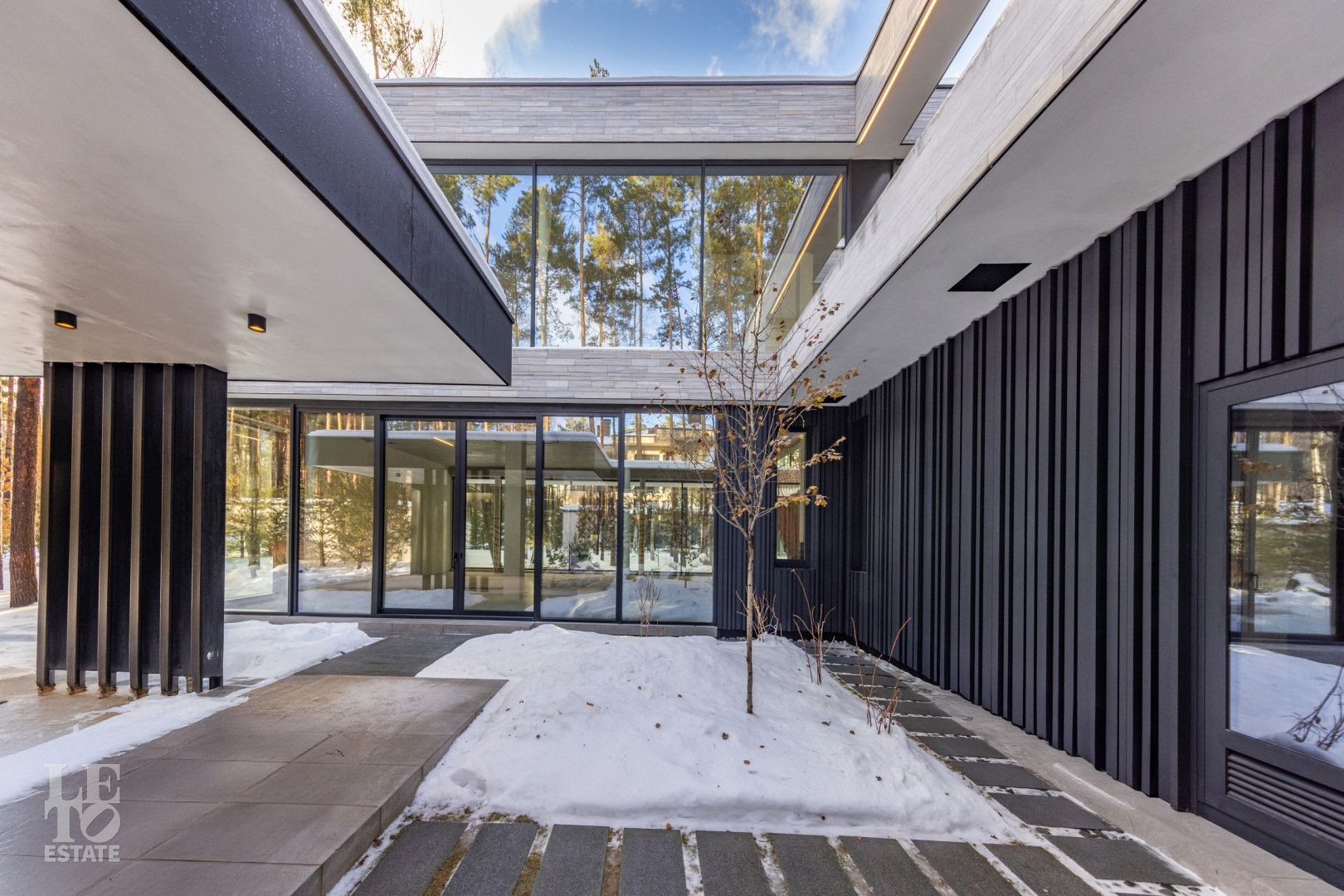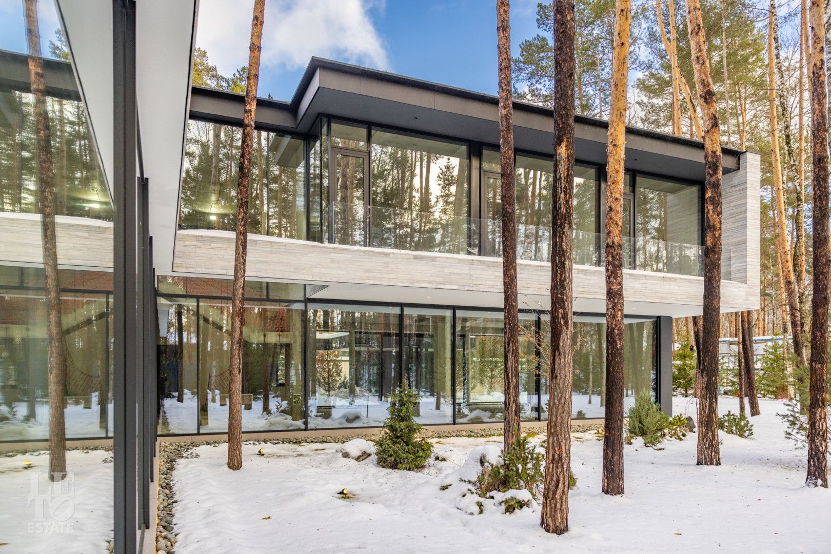 Особенности дома: ультрасовременная архитектура, панорамные окна (остекление занимает 50% площади фасада), по настоящему лесной участок, высокие потолки (после отделки: 3,2-3,7 м) и межкомнатные двери (до 2,6 м в основных помещениях). Полностью завершены фасадные и ландшафтные работы.