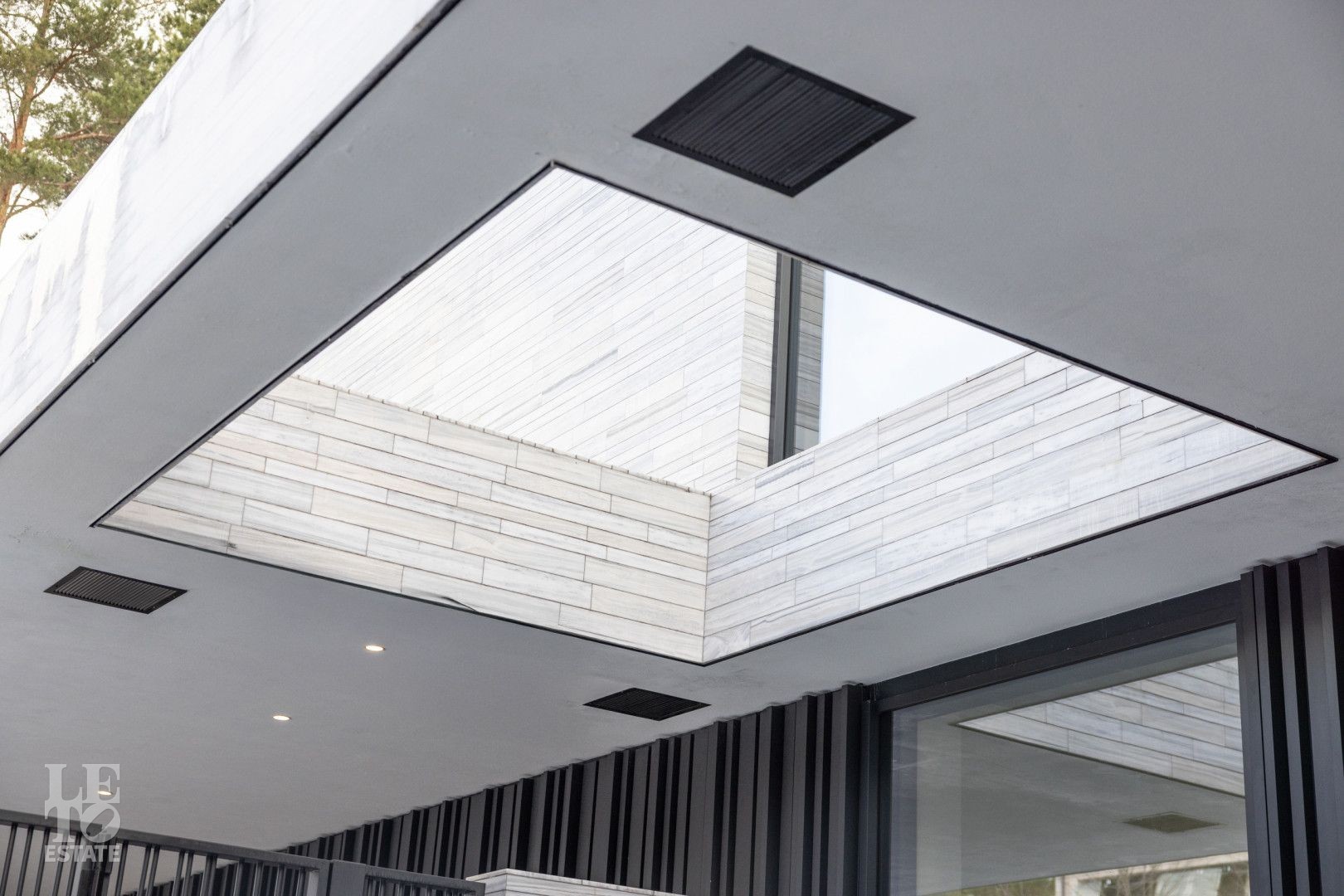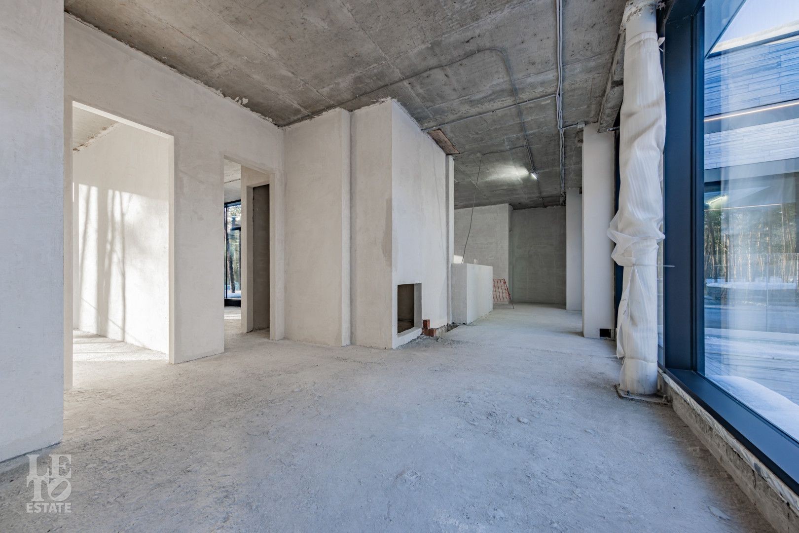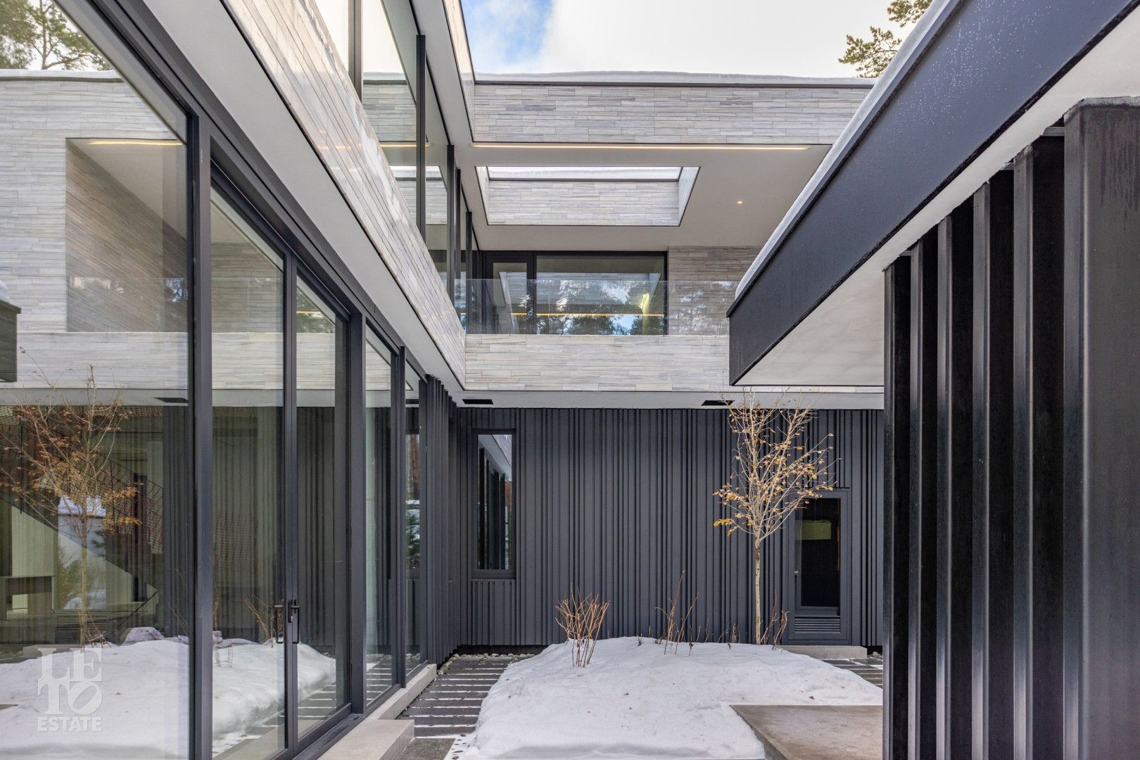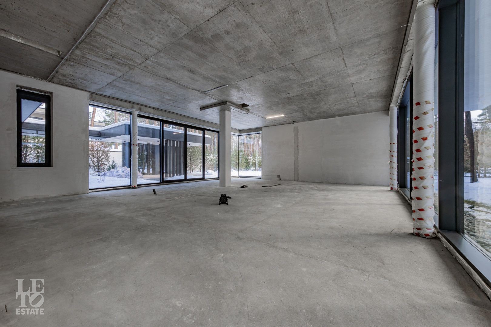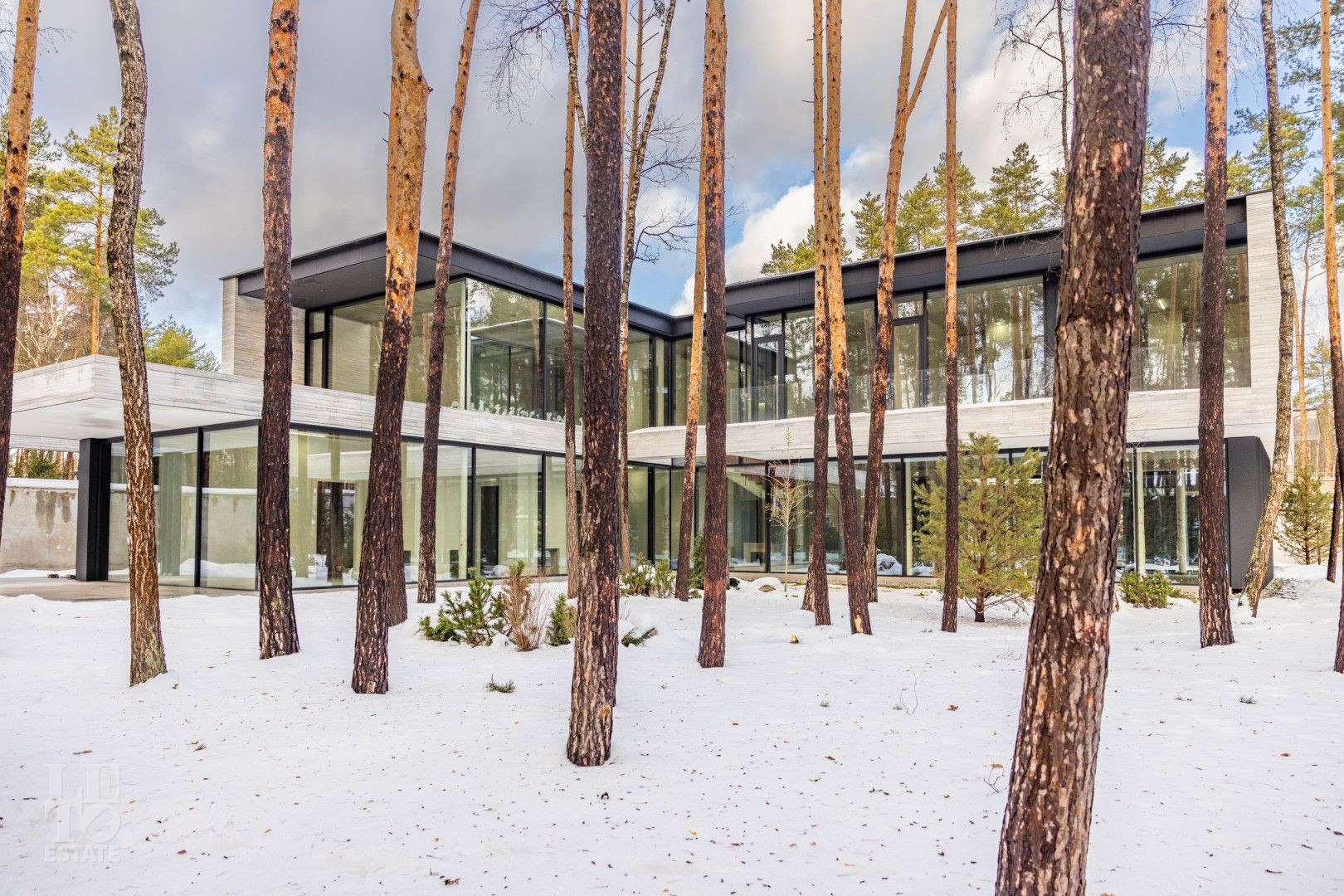 Особенности дома: ультрасовременная архитектура, панорамные окна (остекление занимает 50% площади фасада), по настоящему лесной участок, высокие потолки (после отделки: 3,2-3,7 м) и межкомнатные двери (до 2,6 м в основных помещениях). Полностью завершены фасадные и ландшафтные работы.