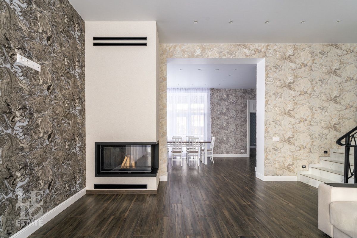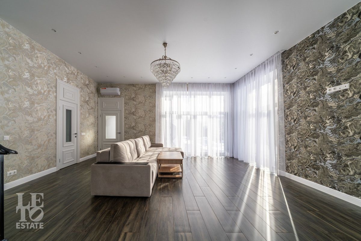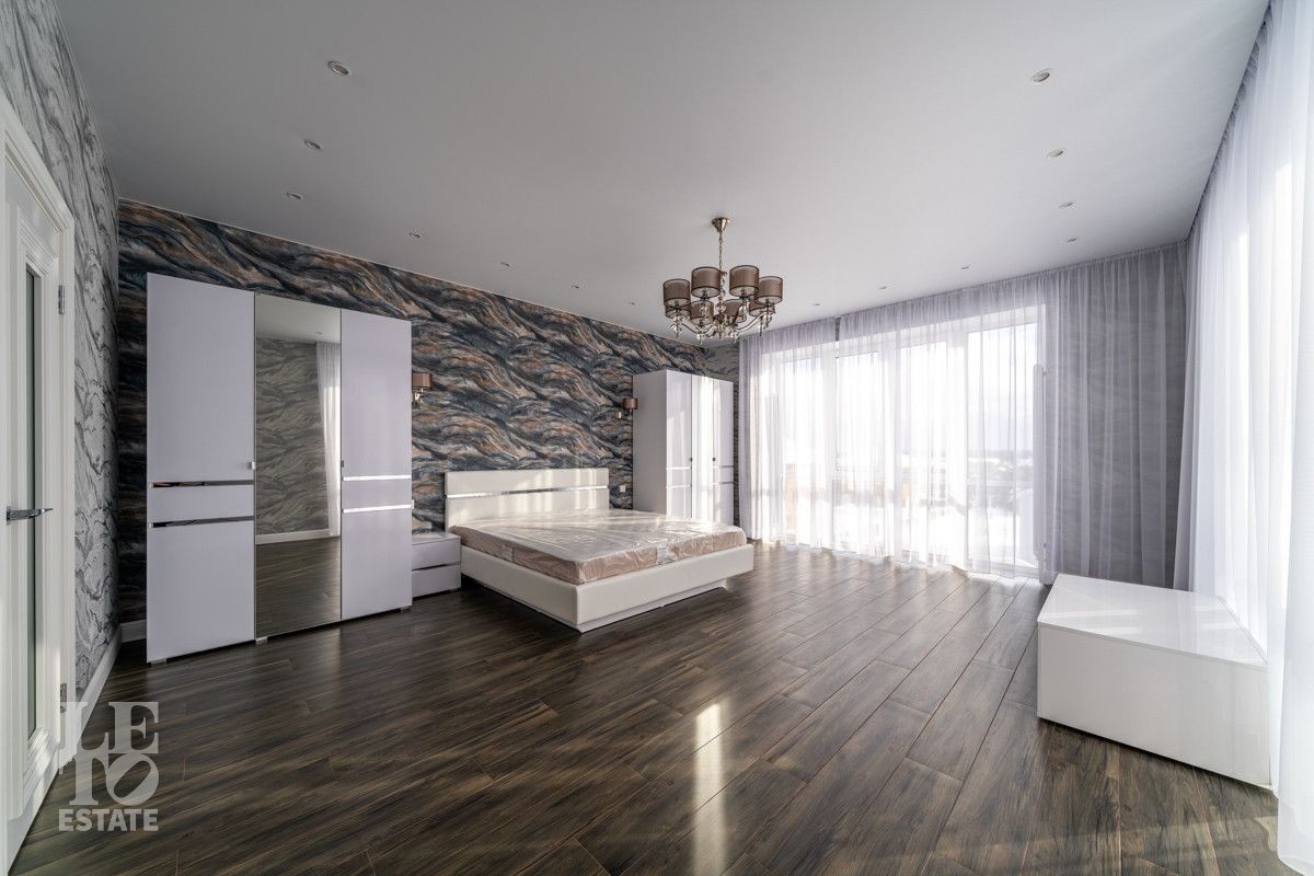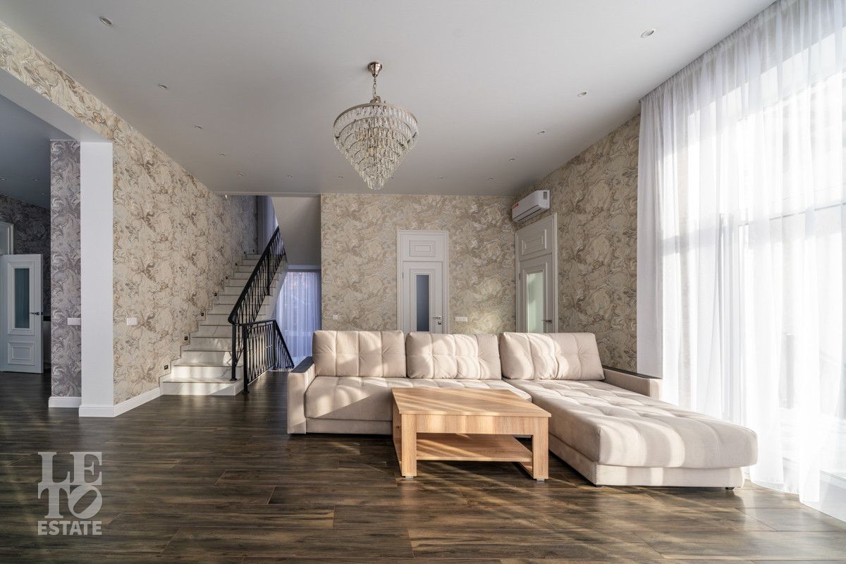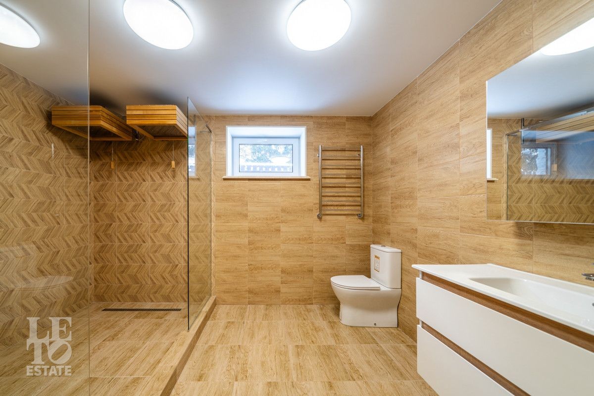 В доме просторная светлая гостиная - столовая с камином и выходом из столовой на террасу. Панорамное остекление создает ощущение дополнительного пространства и света. В доме установлены система кондиционирования и система теплого пола на всех этажах. СПА-зона с сауной и комнатой отдыха расположена на цокольном этаже.