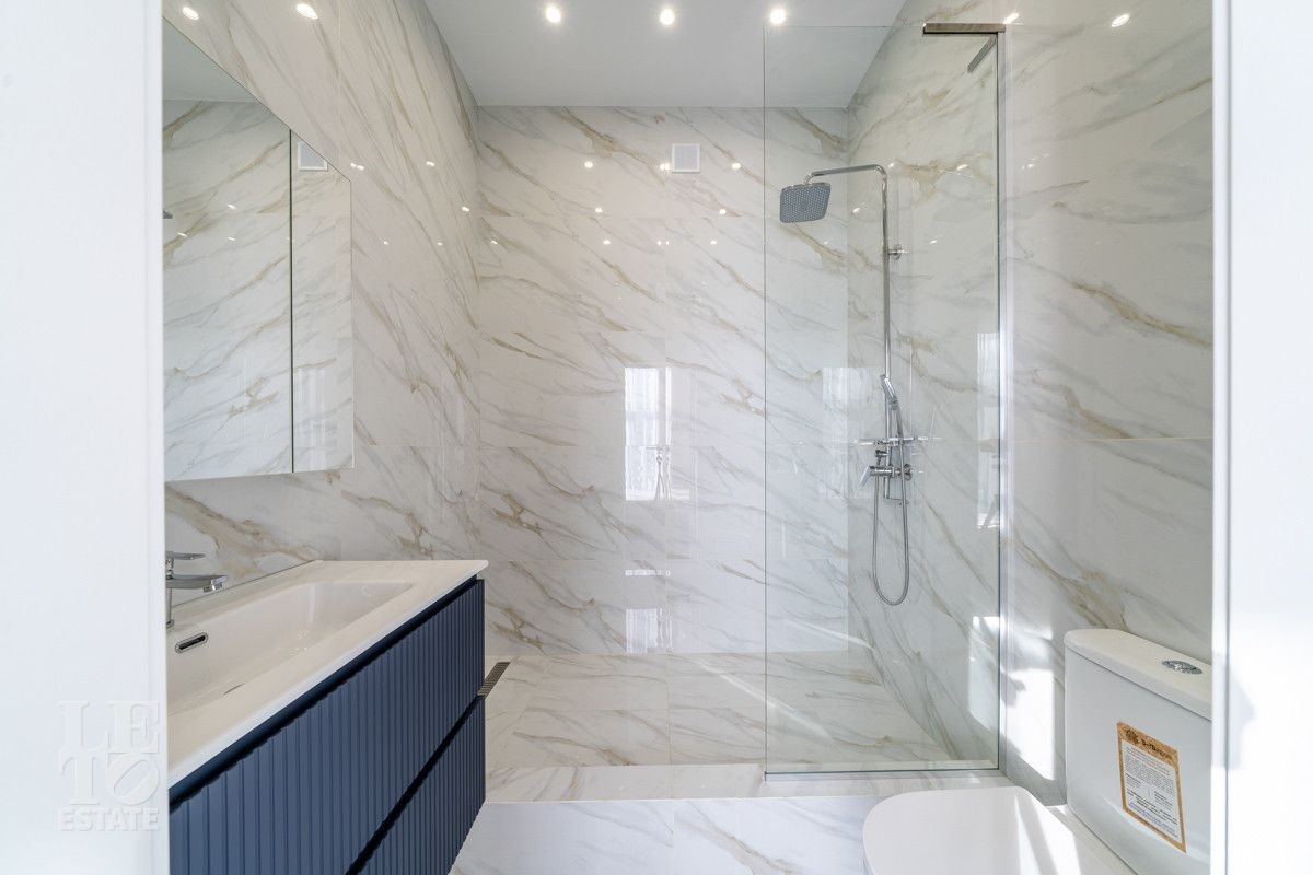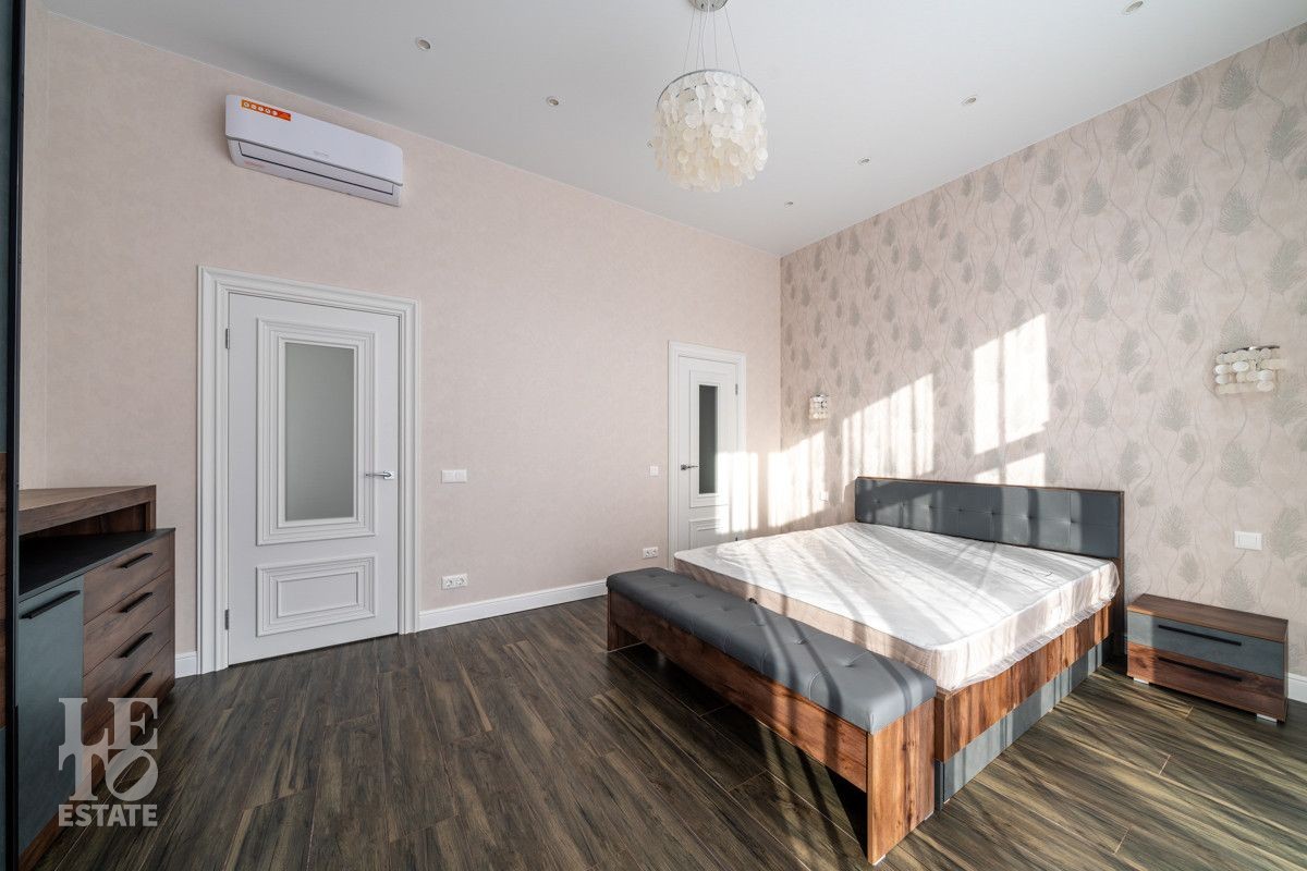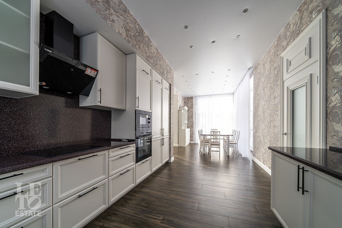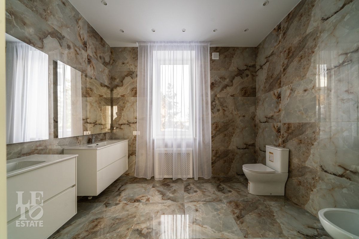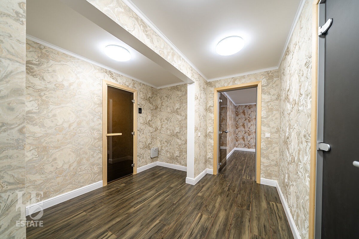 В доме просторная светлая гостиная - столовая с камином и выходом из столовой на террасу. Панорамное остекление создает ощущение дополнительного пространства и света. В доме установлены система кондиционирования и система теплого пола на всех этажах. СПА-зона с сауной и комнатой отдыха расположена на цокольном этаже.
