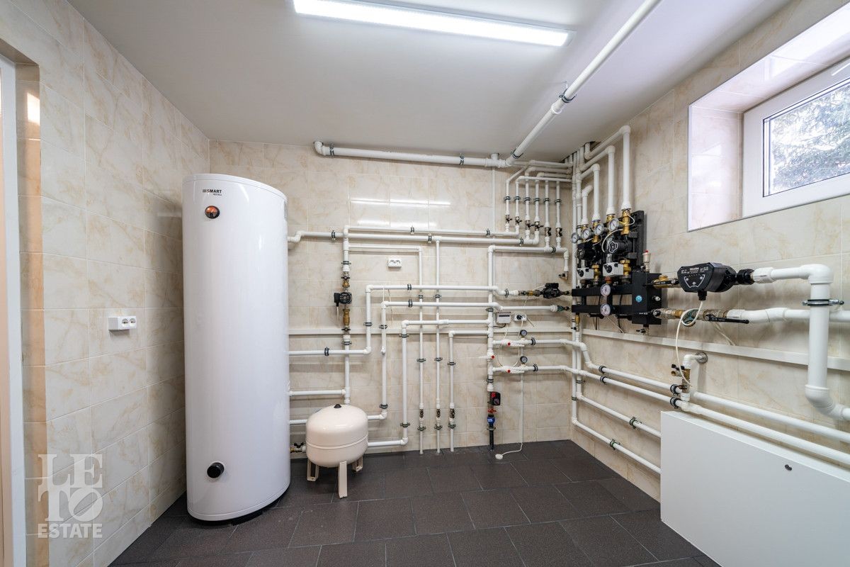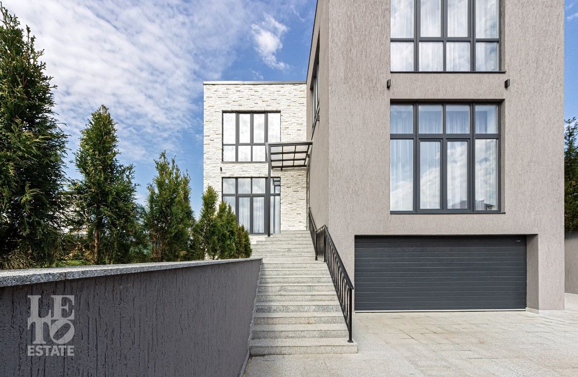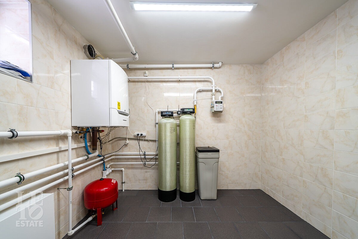 Цокольный этаж: сауна, комната отдыха с мини-кухней, санузел, постирочная, кладовая, бойлерная, гараж на два автомобиля;