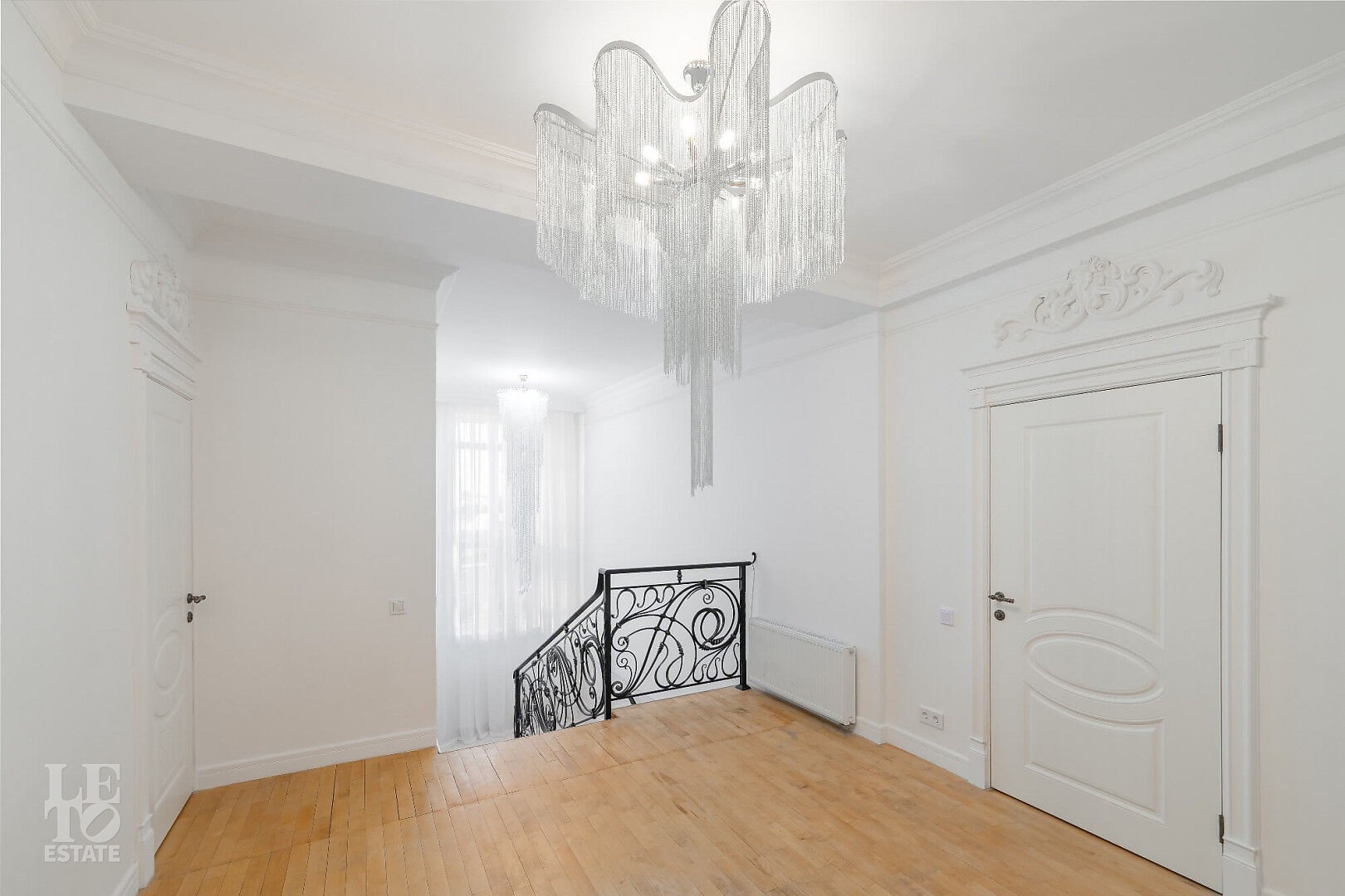 Высокие потолки, большая площадь остекления, камин с отделкой мрамором в гостиной, на полу штучный паркет, дровяная печь на малой кухне, светлый интерьер в классическом стиле, водяные теплые полы, уютный зеленый участок с ландшафтным дизайном.