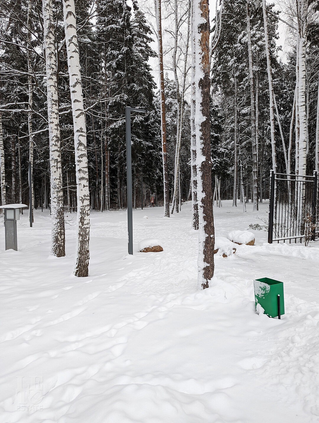 Посёлок органично вписан в природное окружение: на территории в 170 га раскинулись хвойные леса (42 га), парковые зоны, живописное озеро и пруды. Ландшафтный дизайн выполнен в лучших традициях паркового искусства — с авторскими скульптурами, изящными беседками, каменным мостиками и прогулочными аллеями.