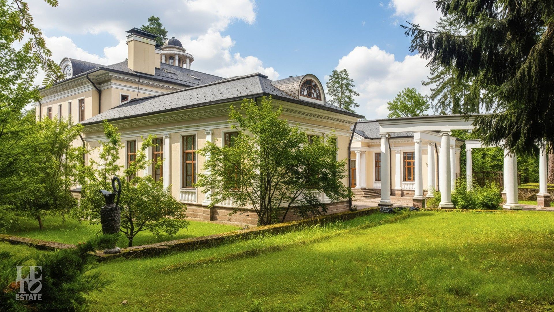 Вашему вниманию представляется особняк площадью 2000 м² расположен на участке 2 гектара среди вековых деревьев в коттеджном поселке Николино в 23 км от МКАД по Рублёво‑Успенскому шоссе.