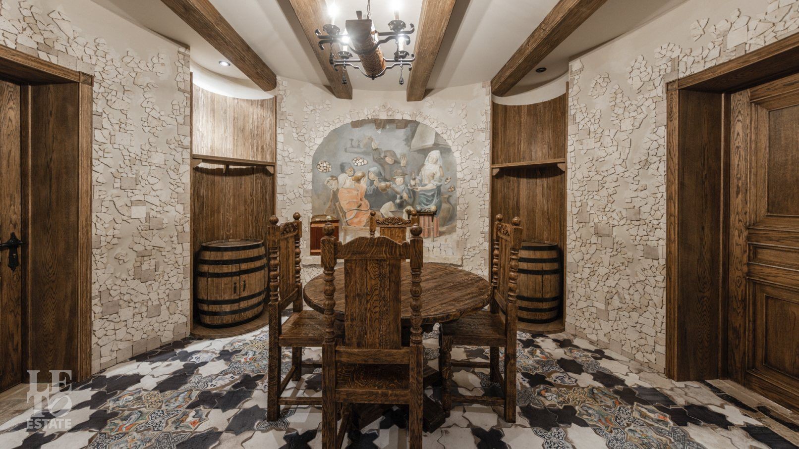 Цокольный этаж: винный погреб с зоной для дегустации, квартира для персонала, прачечная, кладовая, котельная, комната отдыха, санузел;