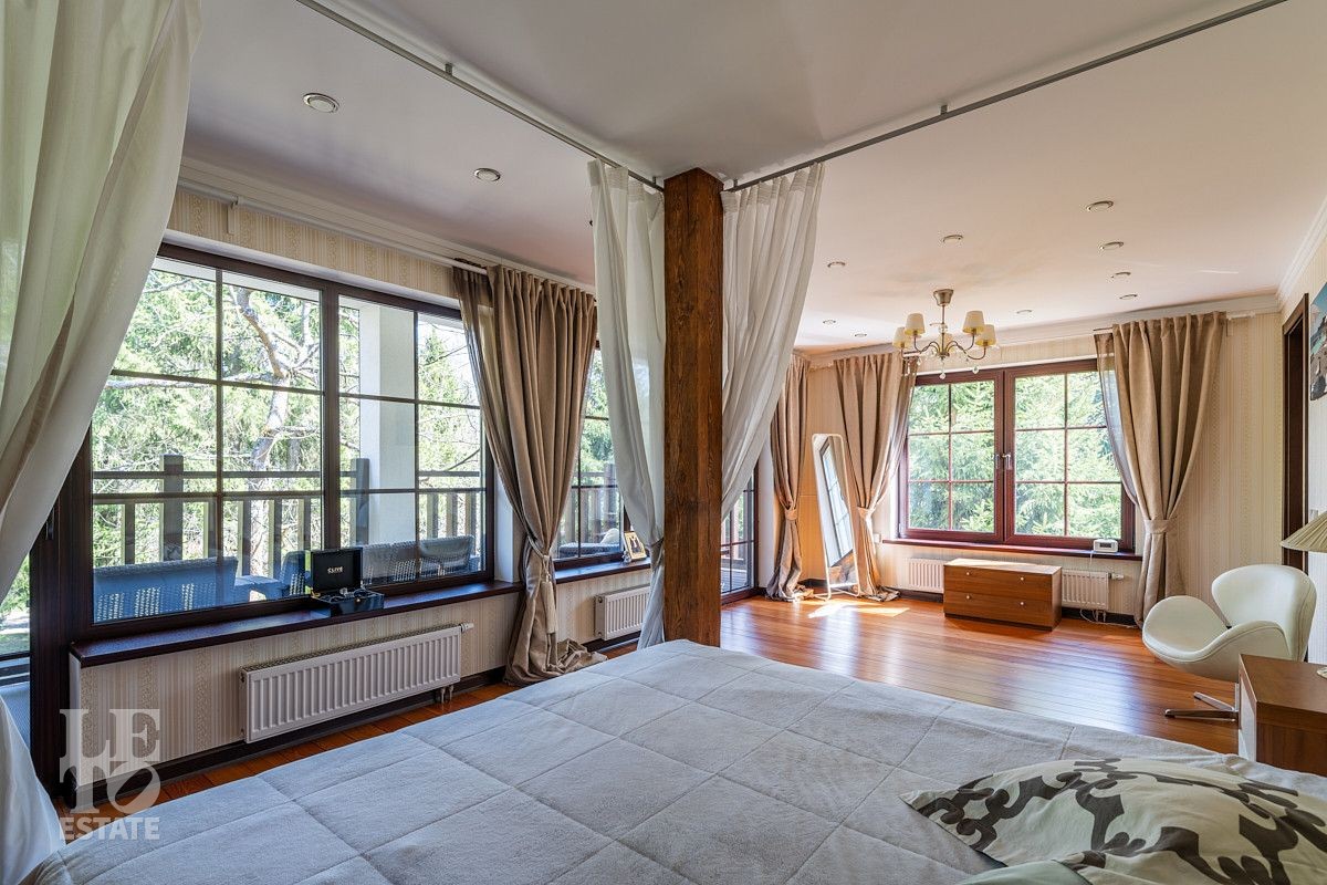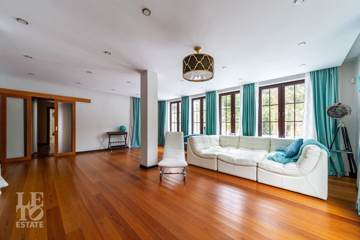 Вашему вниманию представляется загородная резиденция площадью 550 кв.м. на прилесном участке 42 сотки в поселке Николо-Прозорово, расположенного в 20 км от МКАД по Дмитровскому шоссе. Ремонт в доме производился с использованием высококачественных, экологически чистых строительных материалов по индивидуальному проекту. В доме выполнена качественная внутренняя отделка, установлена вся необходимая мебель и бытовая техника премиальных брендов. Центром притяжения дома является гостиная со вторым светом и выходом на террасу, главным украшением которой является массивный камин. Так же уделено особое внимание безопасности на участке и в доме, установлена охранная система и видеонаблюдение. На участке 50 соток выполнен высококлассный ландшафтный дизайн, декоративный пруд, вечернее освещение. Пространство участка спланировано максимально грамотно, что позволило реализовать застройку просторного дома, дома для персонала, русской бани , летнего бассейна и беседки с зоной барбекю.