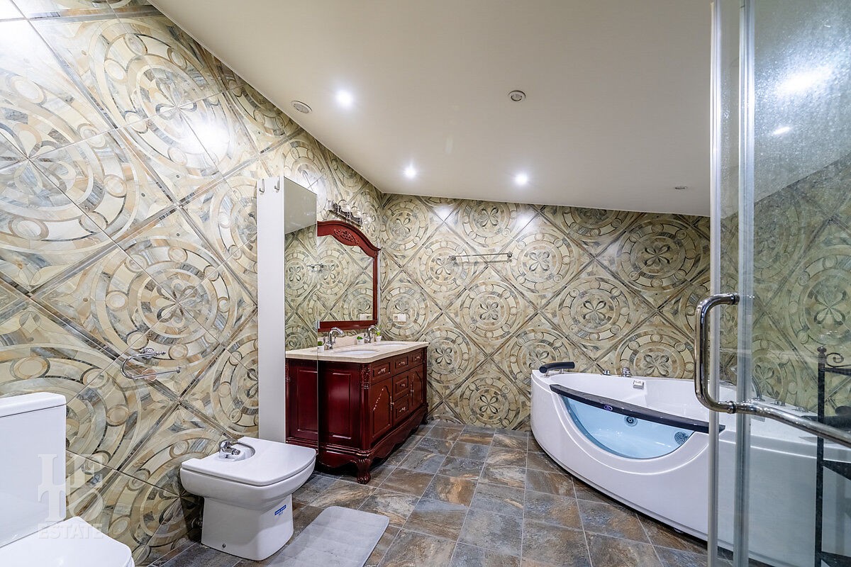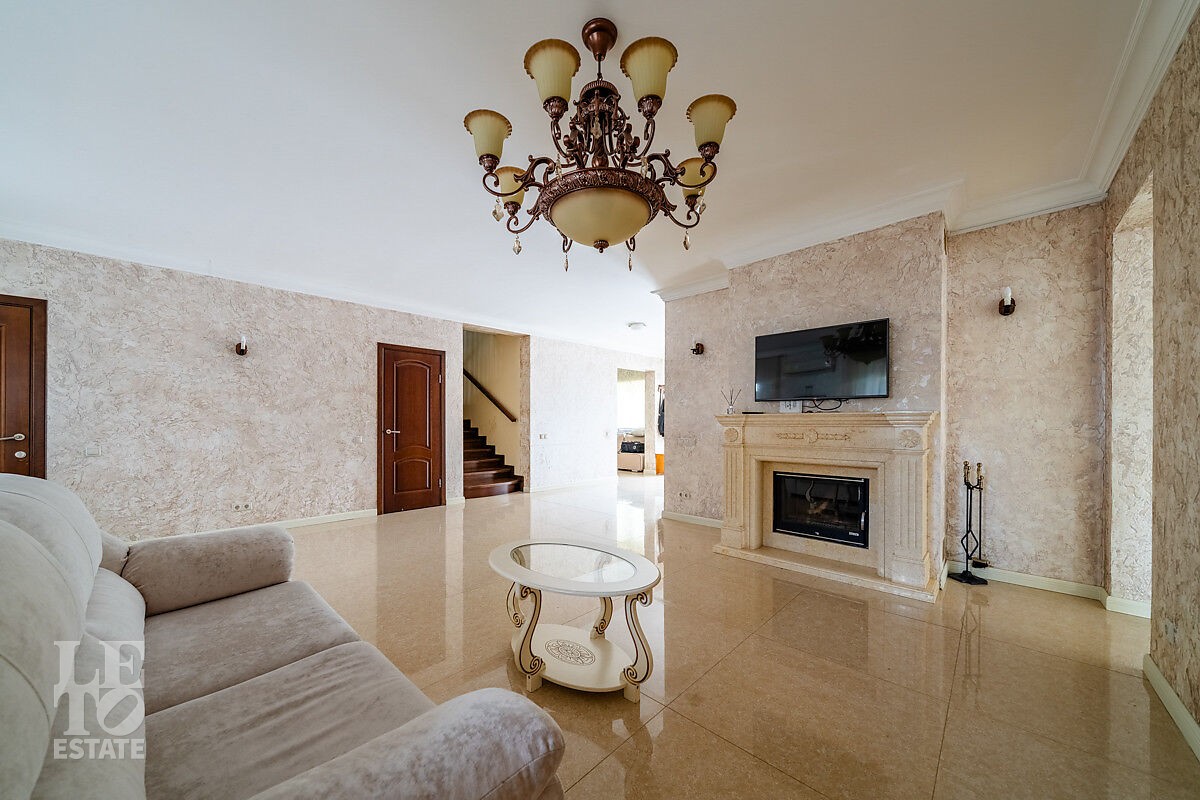 Второй этаж – гостиная, три спальни с индивидуальными санузлами и гардеробными.
