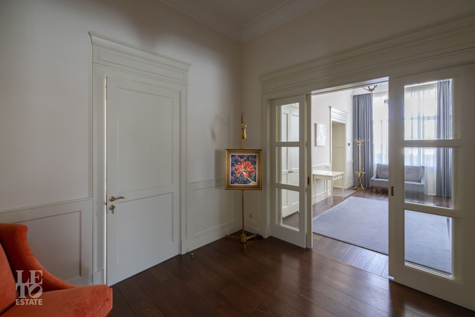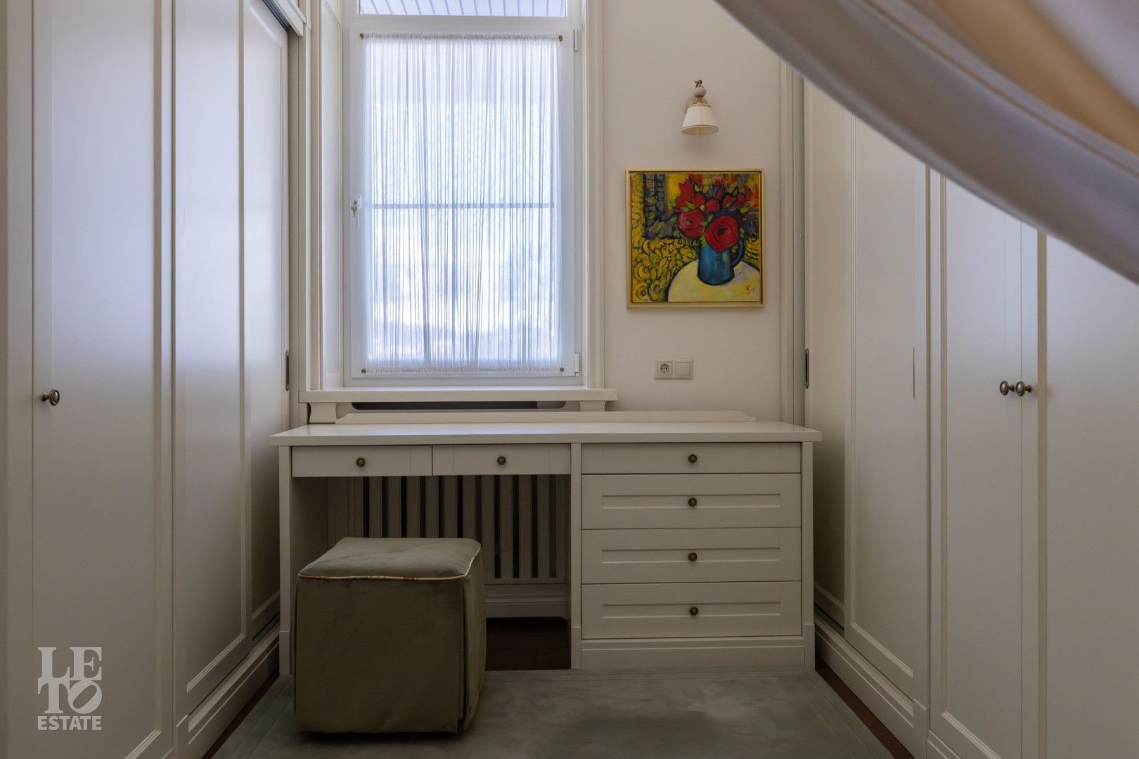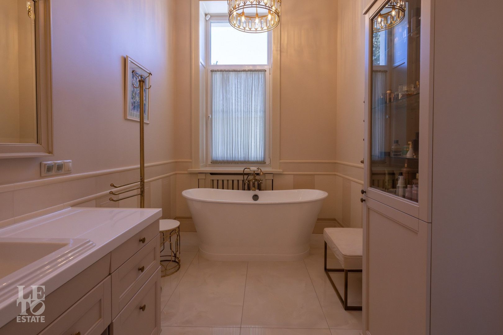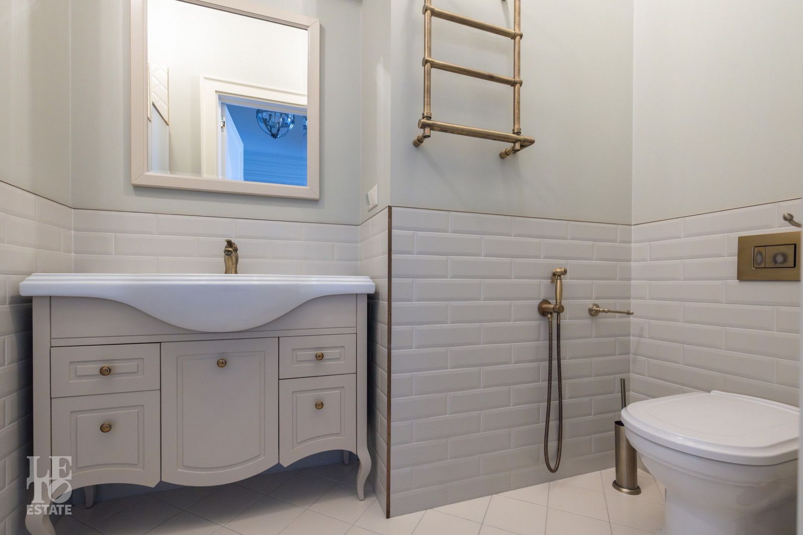 Первый этаж: две мастер спальни с гардеробными и просторными санузлами, кабинет (возможно использовать как спальню), гостевой санузел с душем, гостиная, кухня с выходом на застекленную террасу и комнатой для хранения, гардеробная, постирочная.