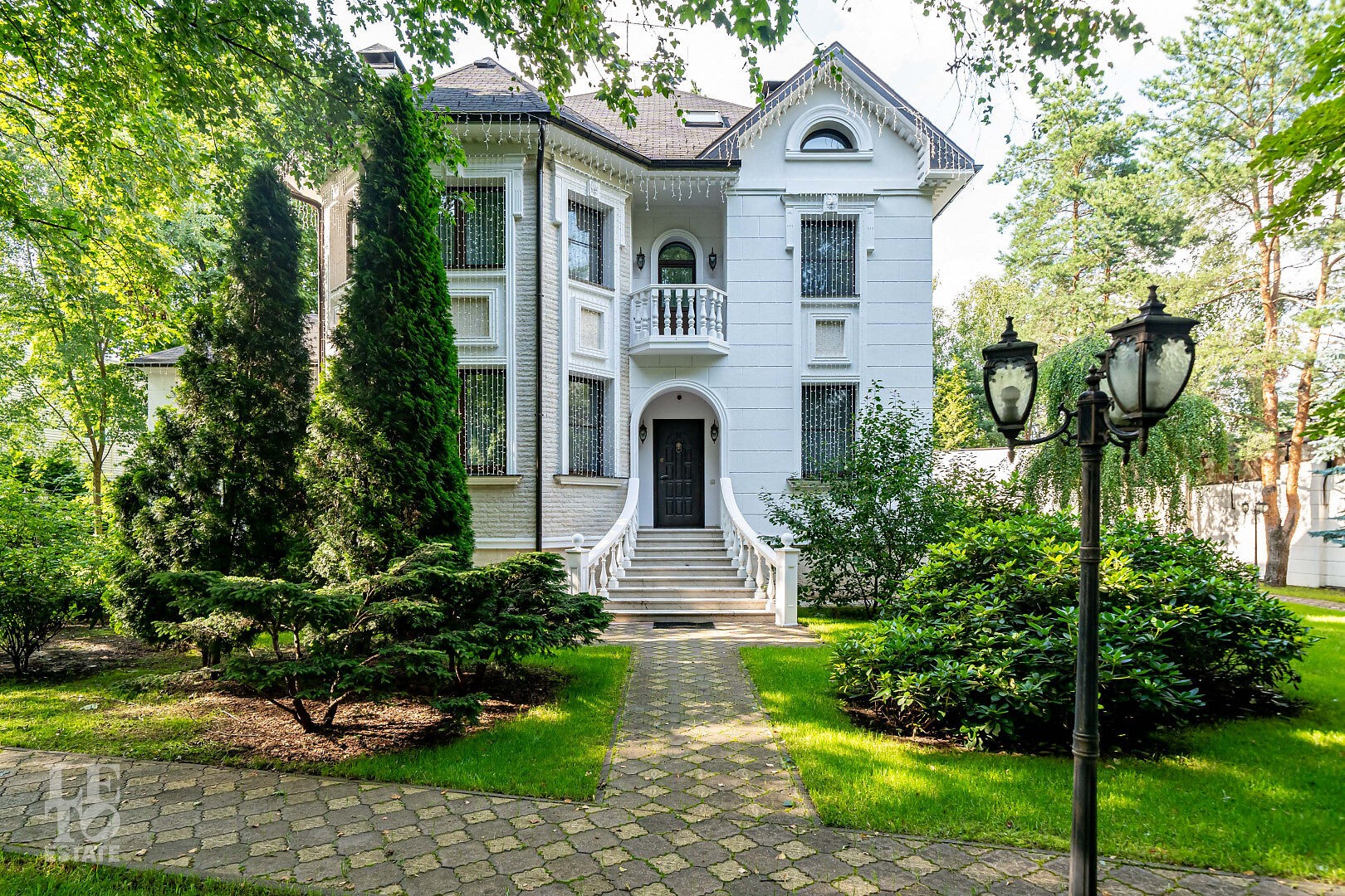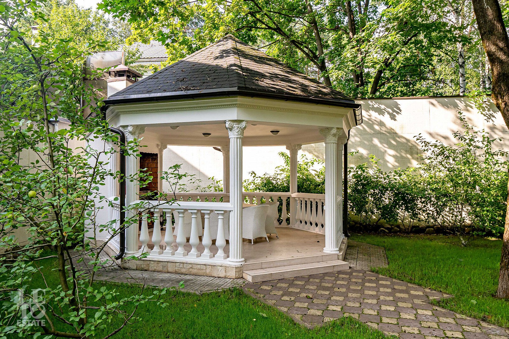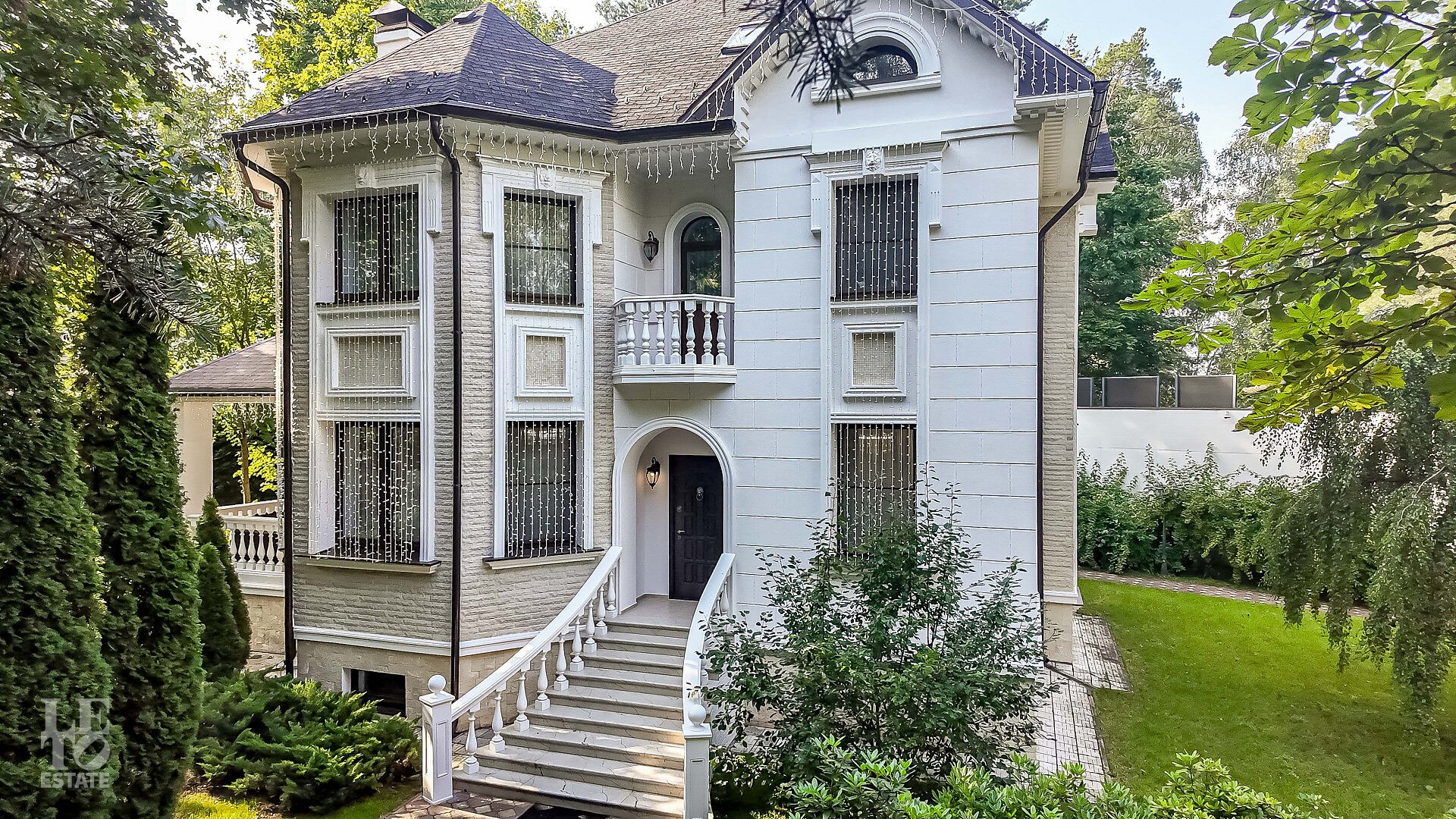 На просторном лесном участке правильной формы расположены 3 строения: основной дом, гостевой дом с помещением для персонала и барбекю-беседка - идеальное место для семейных праздников и отдыха с друзьями.