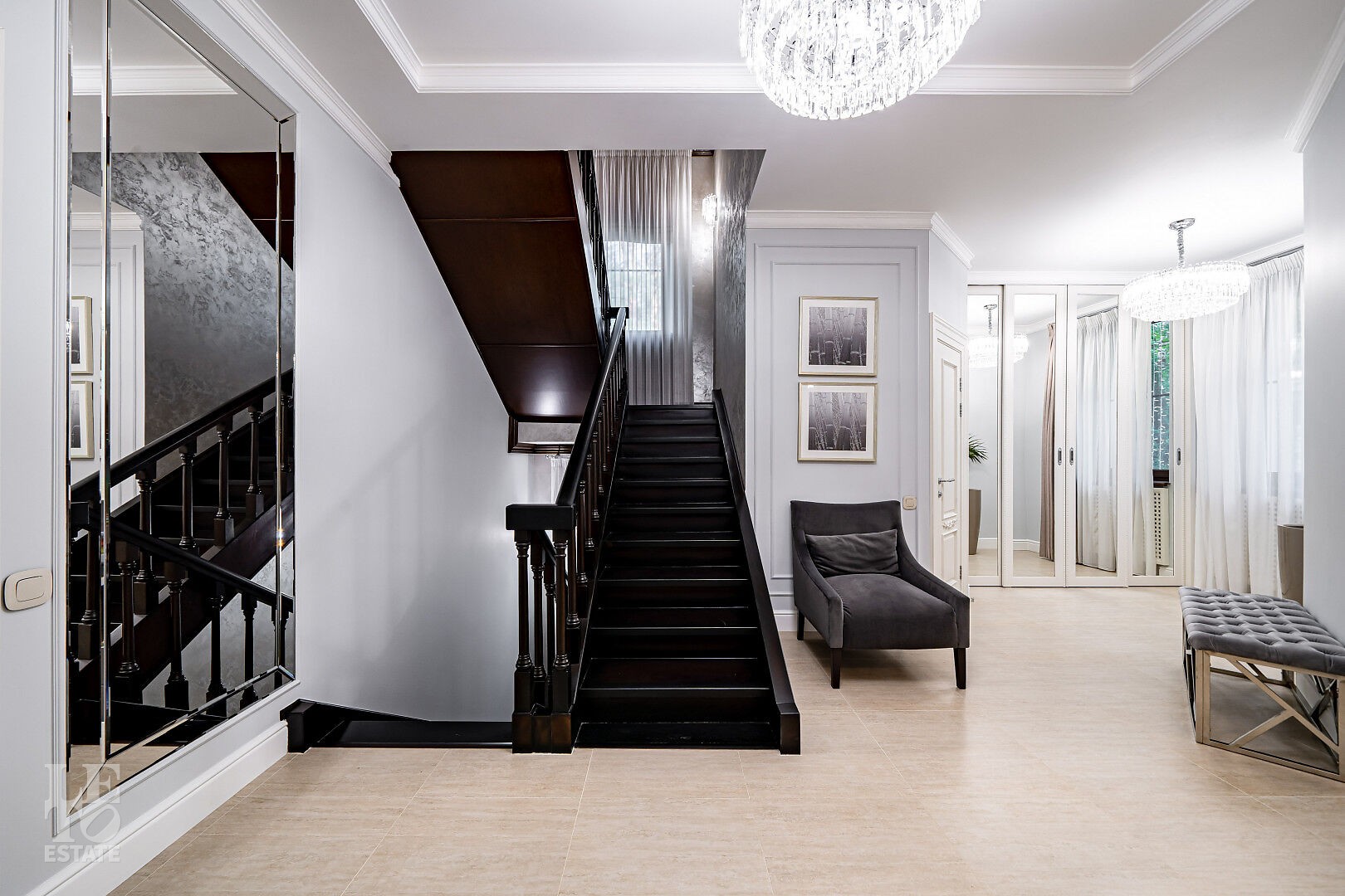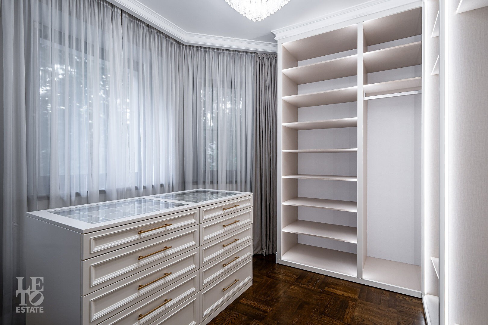 Второй этаж: мастер-спальня с мужской и женской гардеробной, мастер-ванна, детская