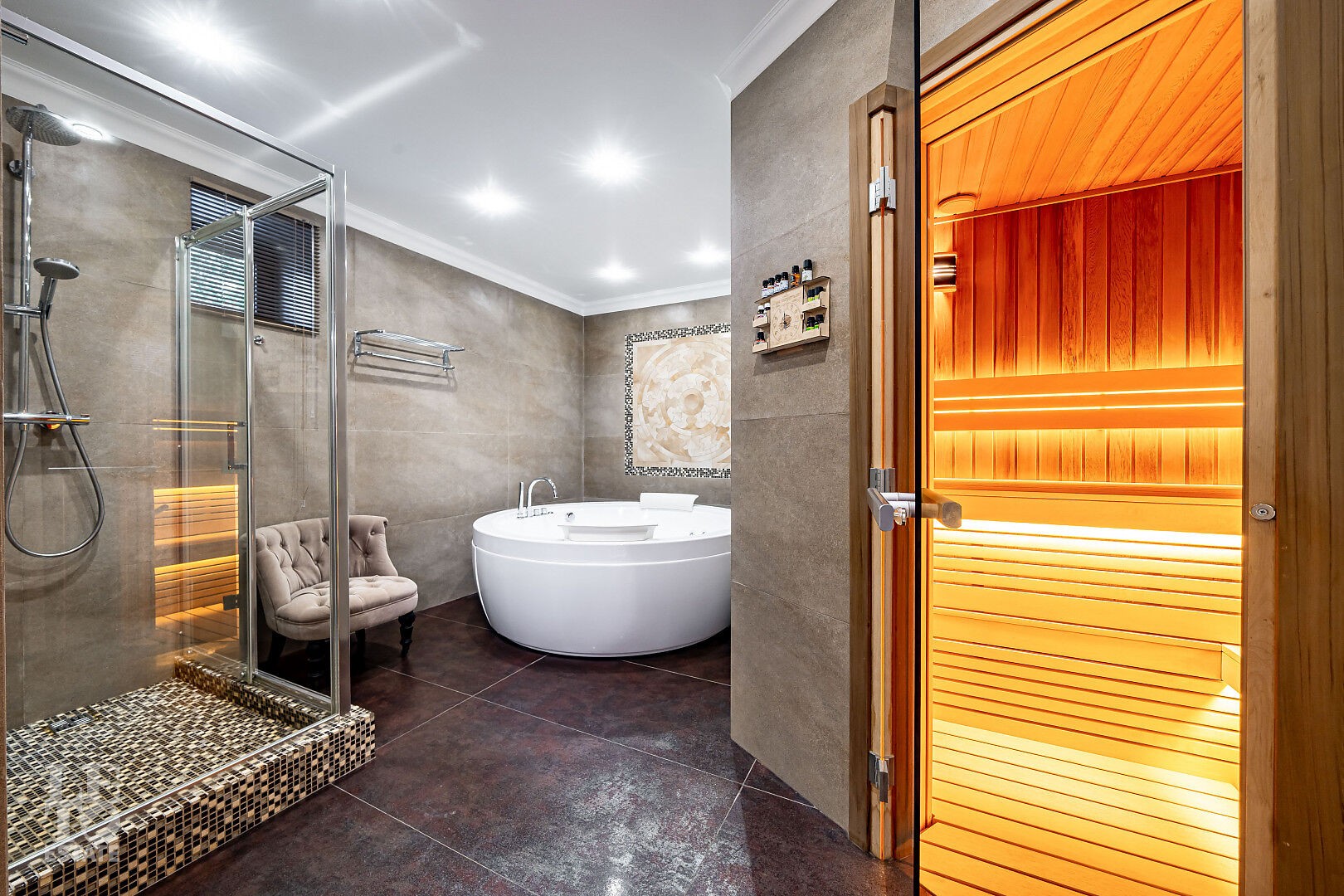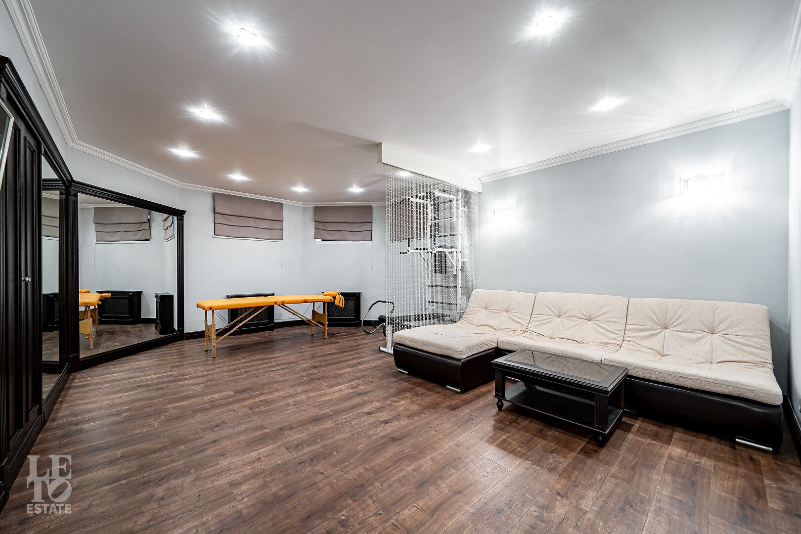 Цокольный этаж: спортивный зал, спа: джакузи, сауна, с/у, душевая, кладовая, постирочная,