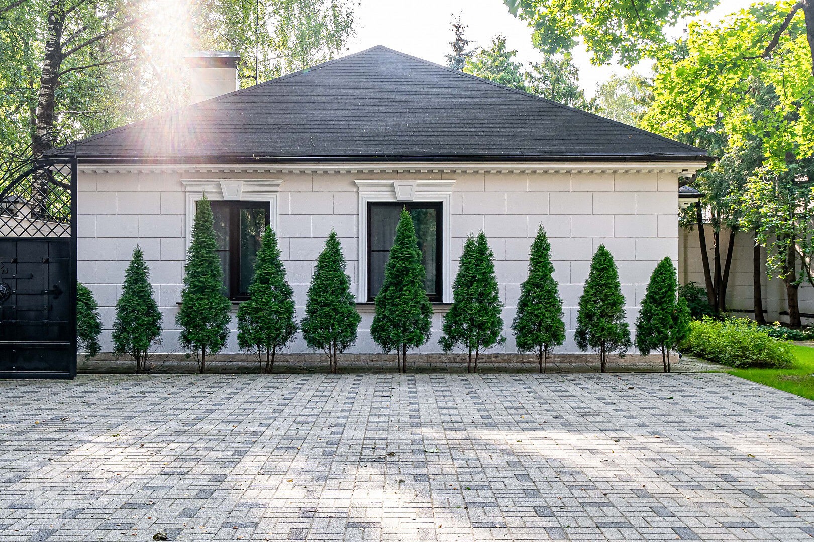 Выполнен ландшафтный дизайн, система авто полива. По периметру установлены
