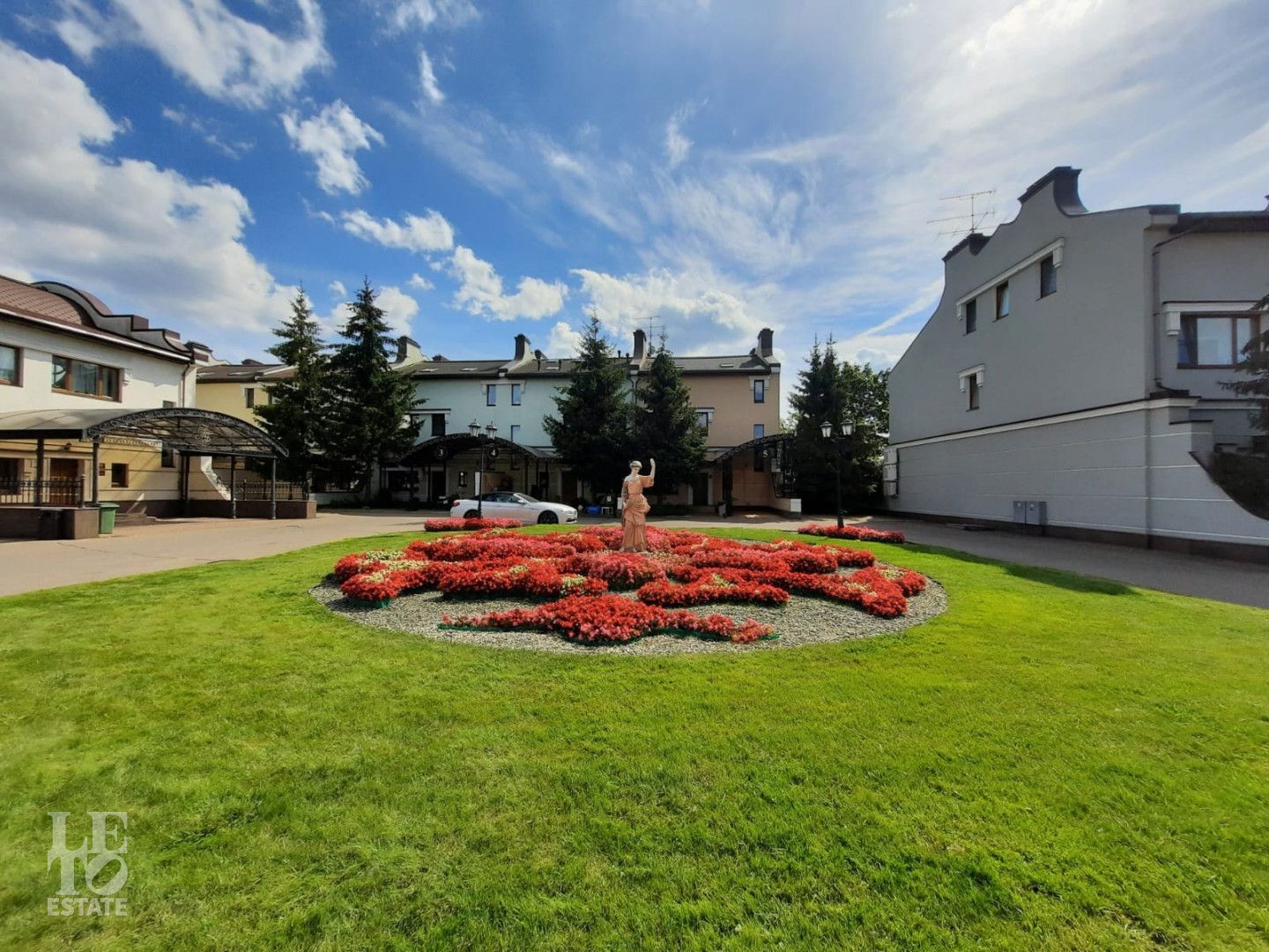 Рассказ о поселке бы неполным без упоминания о ландшафтном дизайне. Широкие улицы и пешеходные дорожки украшены клумбами, газонами и фонтанами. По поселку приятно прогуливаться, наслаждаясь видами.