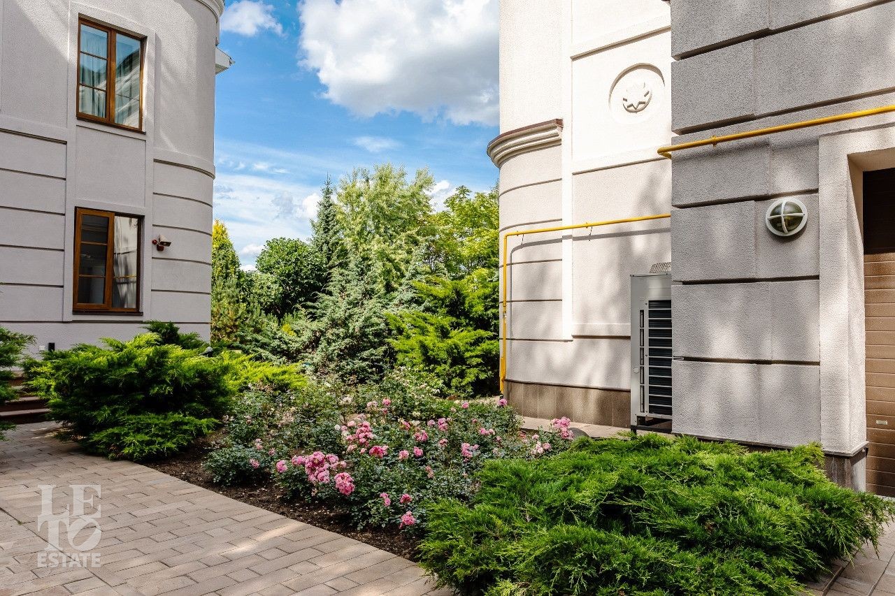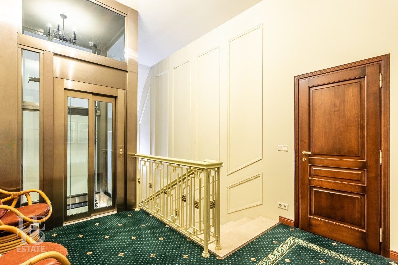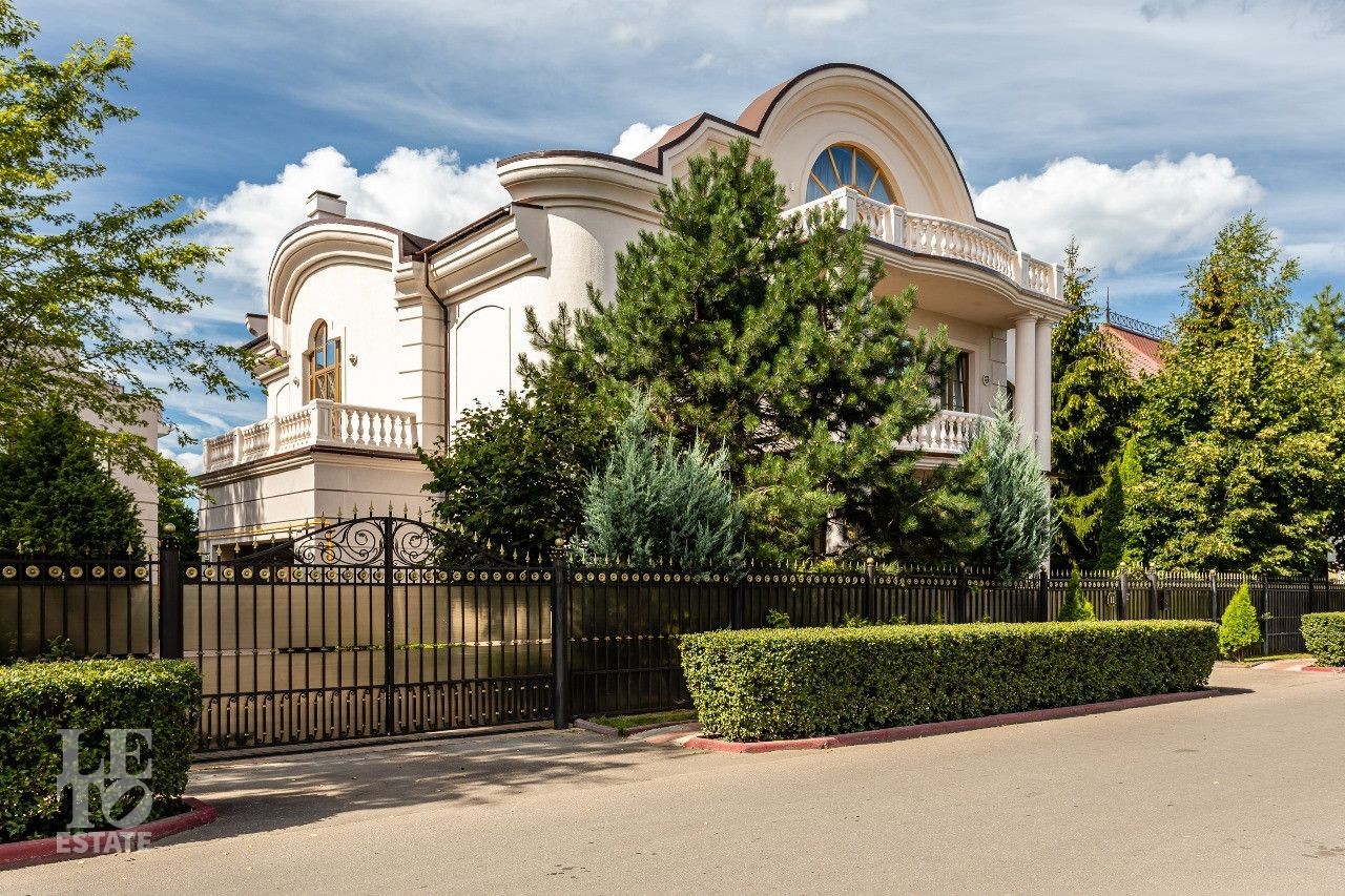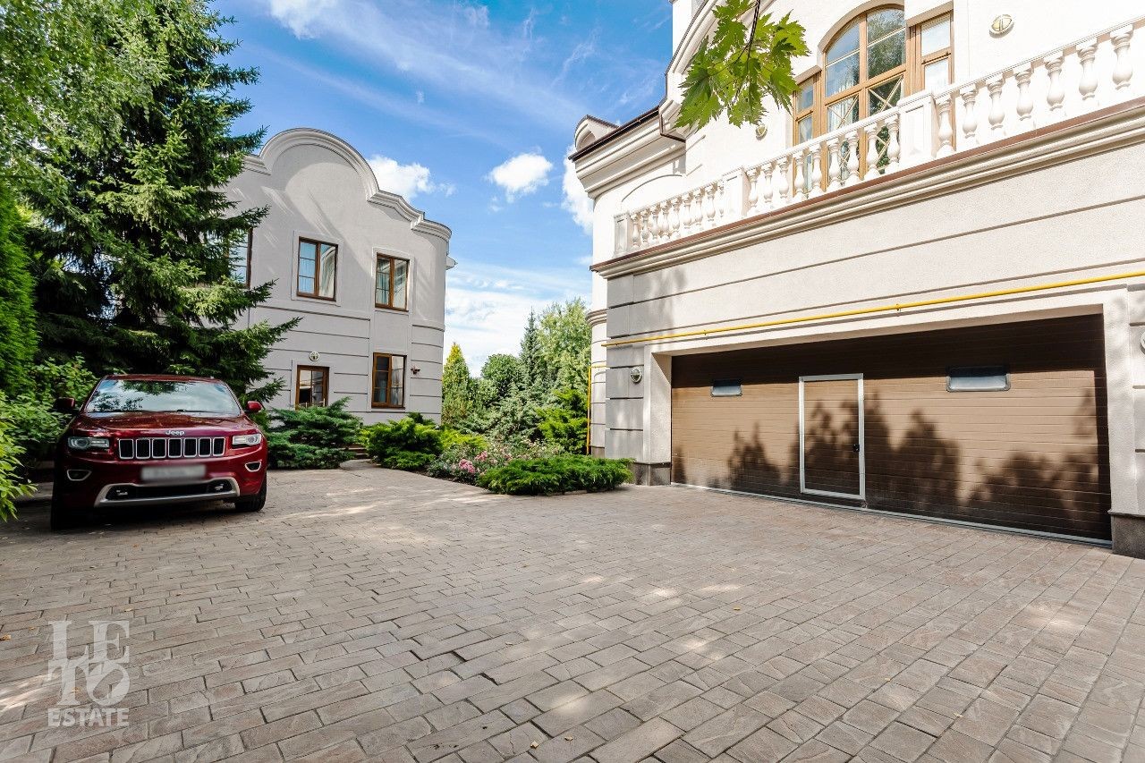 Дом построен в классическом стиле. Фасад дома украшен барельефами, рустами, входная группа выделена колоннами, на балконах использованы балюстрады. Выполнена фасадная шпаклевка. В доме установлено два котла Buderus, установлена система водоочистки, предусмотрена приточно-вытяжная вентиляция и система пожарной сигнализации. Отделка выполнена с использованием элементов из дерева и натурального камня. В каждой спальне предусмотрен индивидуальный санузел. Мансардный этаж отведен под зону отдыха с бильярдной. Лифтовая кабина и шахта – стеклянные. Лифт поднимается до третьего этажа.
