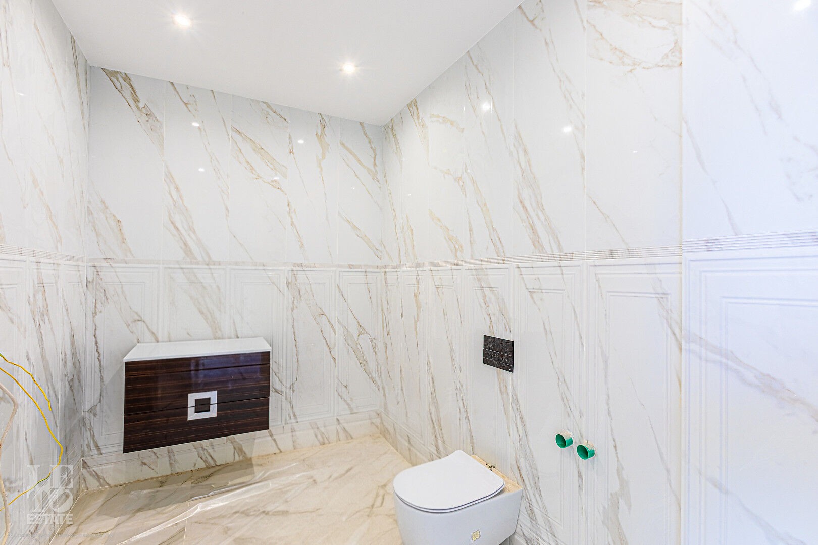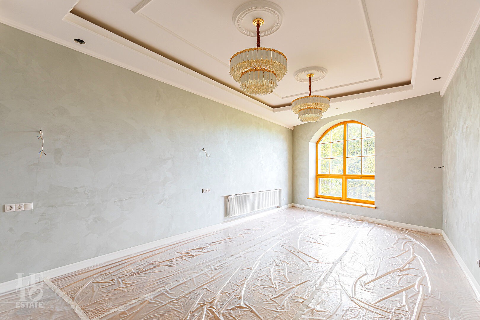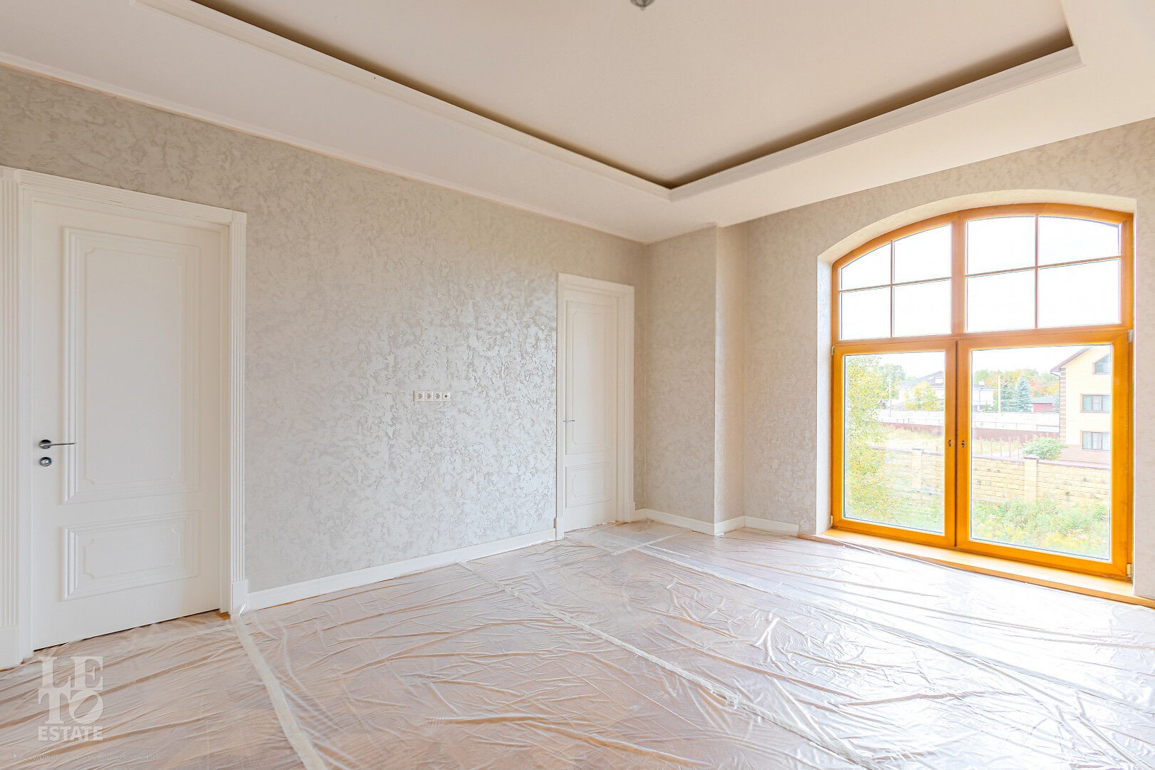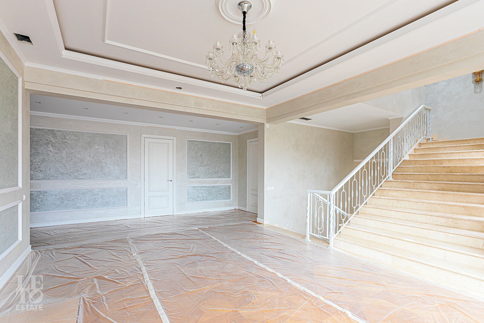 Дом построен в классическом стиле. Фасад дома украшен барельефами, входная группа выделена колоннами и красивым крыльцом с лестницей. Выполнена фасадная шпатлевка. В доме предусмотрена приточно-вытяжная вентиляция. Отделка выполнена с использованием элементов из дерева, мрамора и ковки. Украшением дома служит прекрасная мраморная лестница с коваными ограждениями и перилами из массива дуба. Высота потолков в комнатах 3,5 м. На полу – наборный паркет из дуба. На всем первом этаже сделан теплый пол, на втором этаже – только в санузлах.
