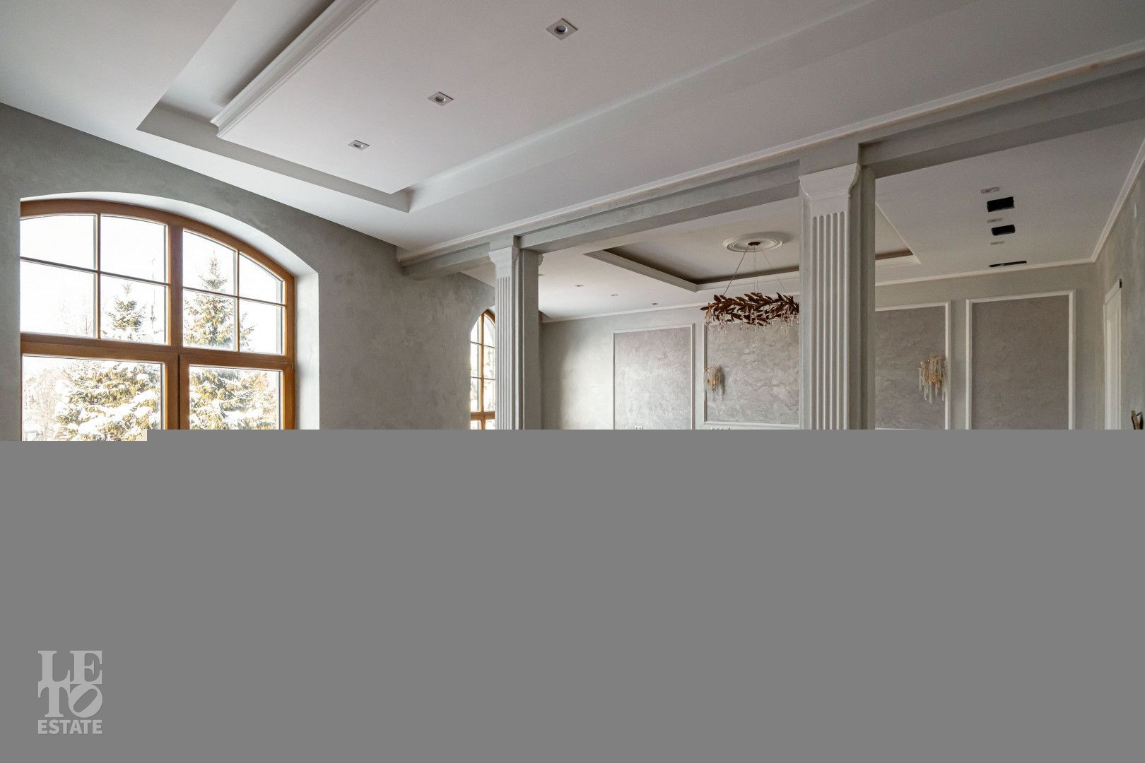 Дом площадью 840 кв. м с 6 спальнями расположен на участке 19,2 сот. Архитектура дома задаёт спокойный, респектабельный ритм жизни, где классика сочетается с ощущением света, воздуха и уюта.