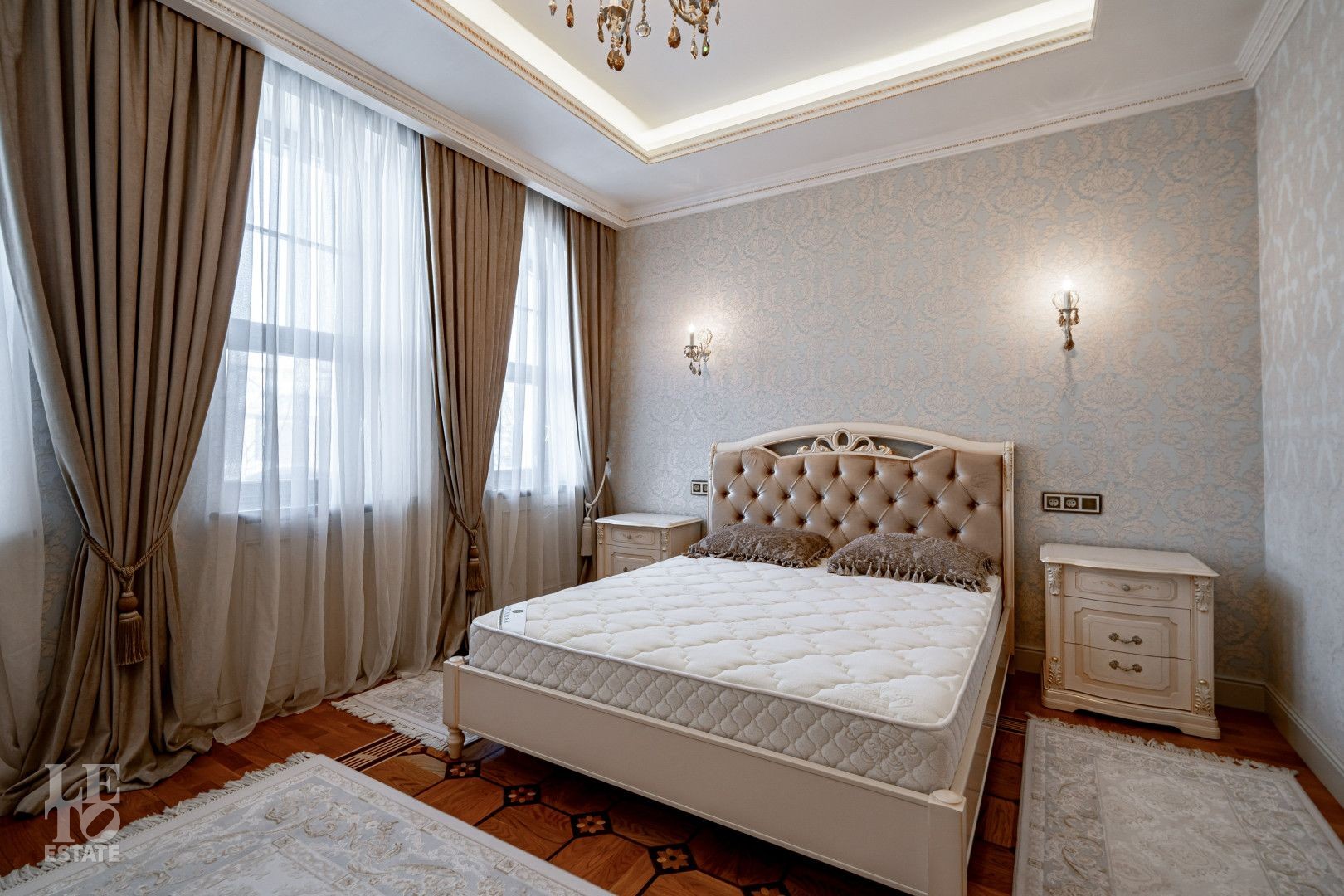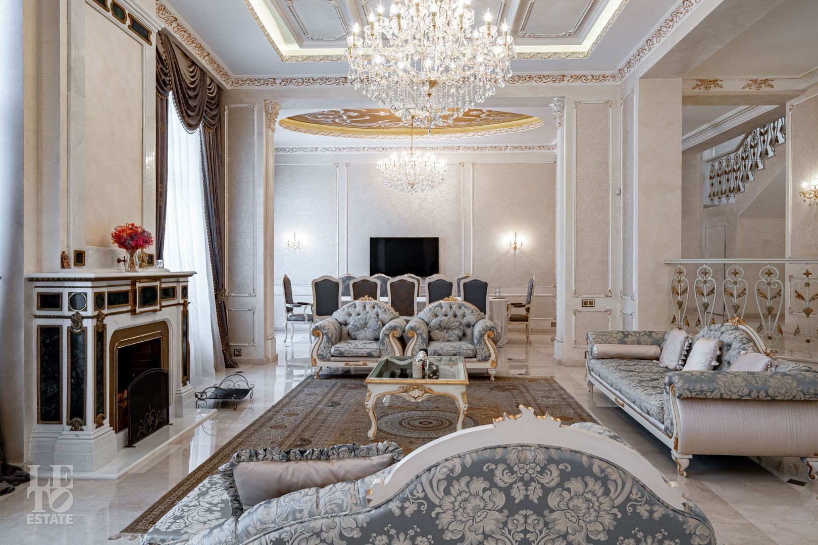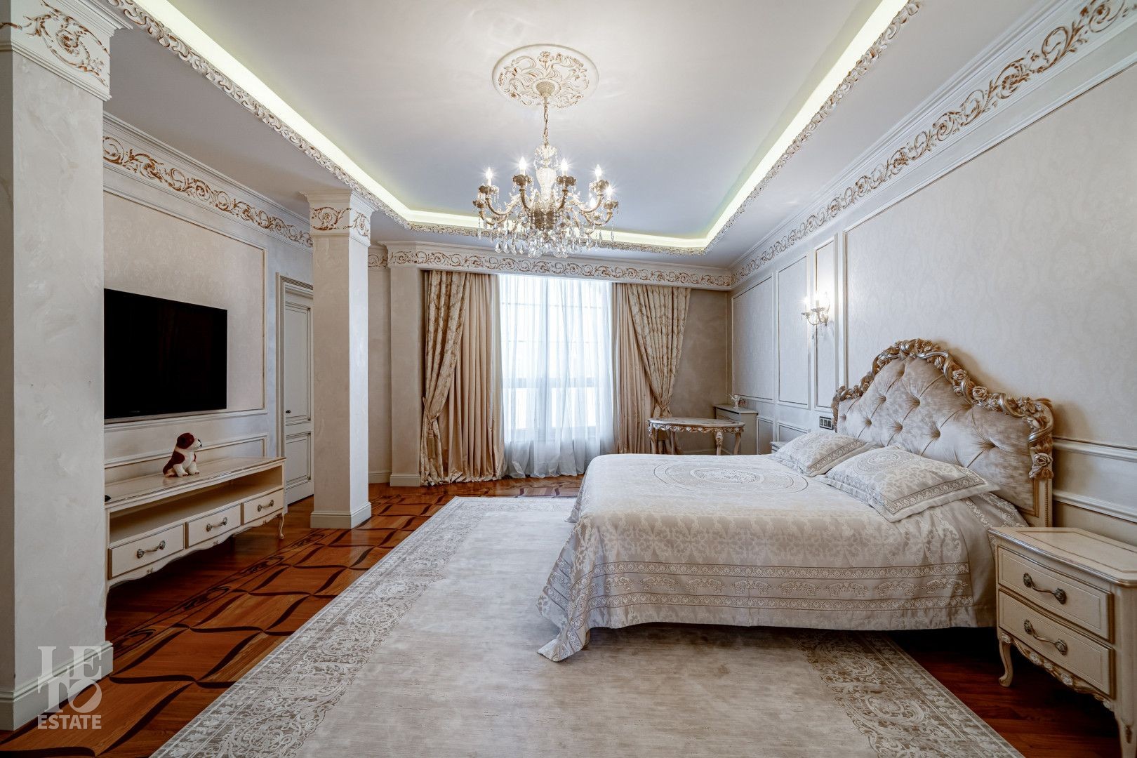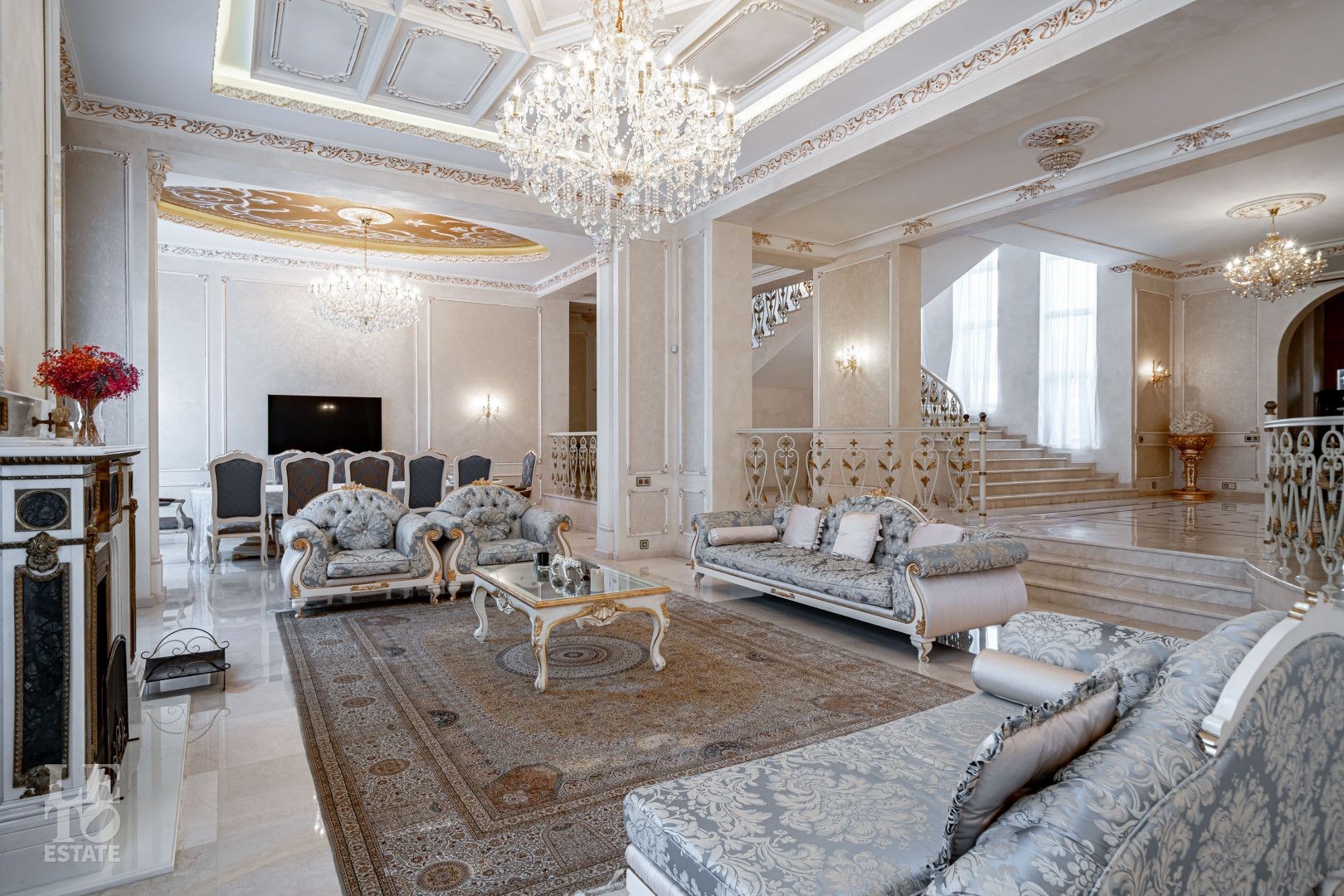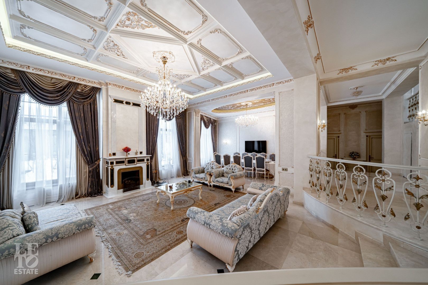 системой подогрева пола, создающие комфортную температуру в любое время года. Интерьеры дополнены лестницей с коваными перилами, декоративной лепниной и потолками с ручной
