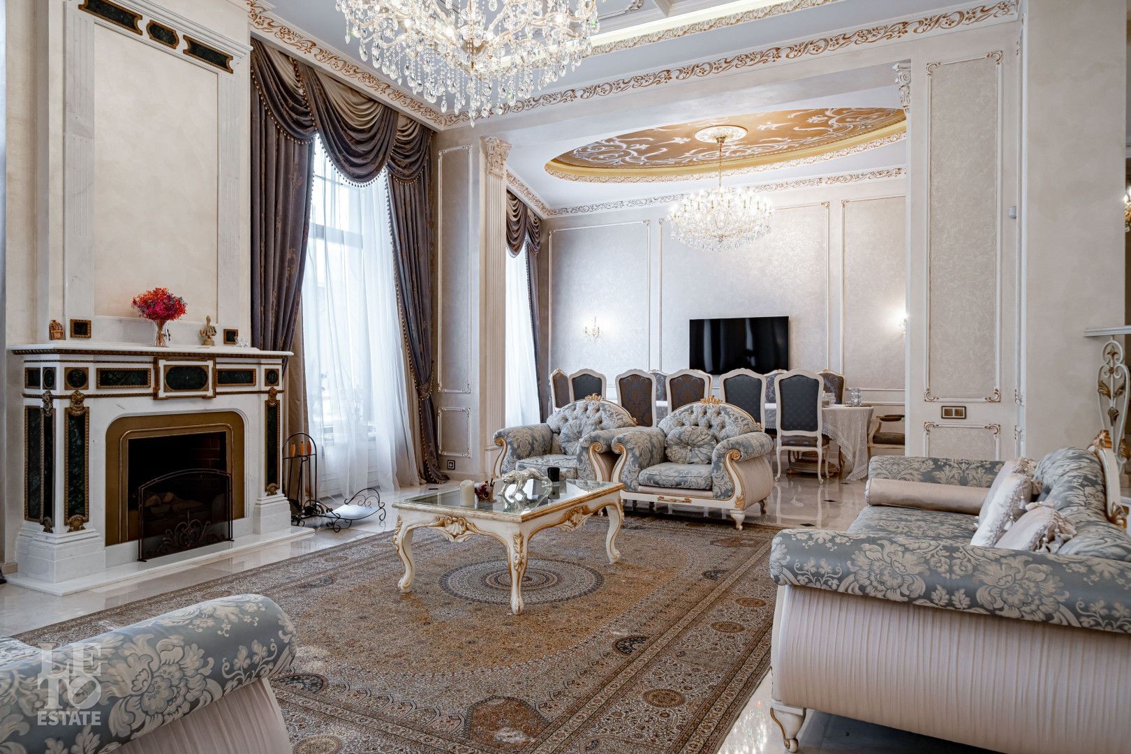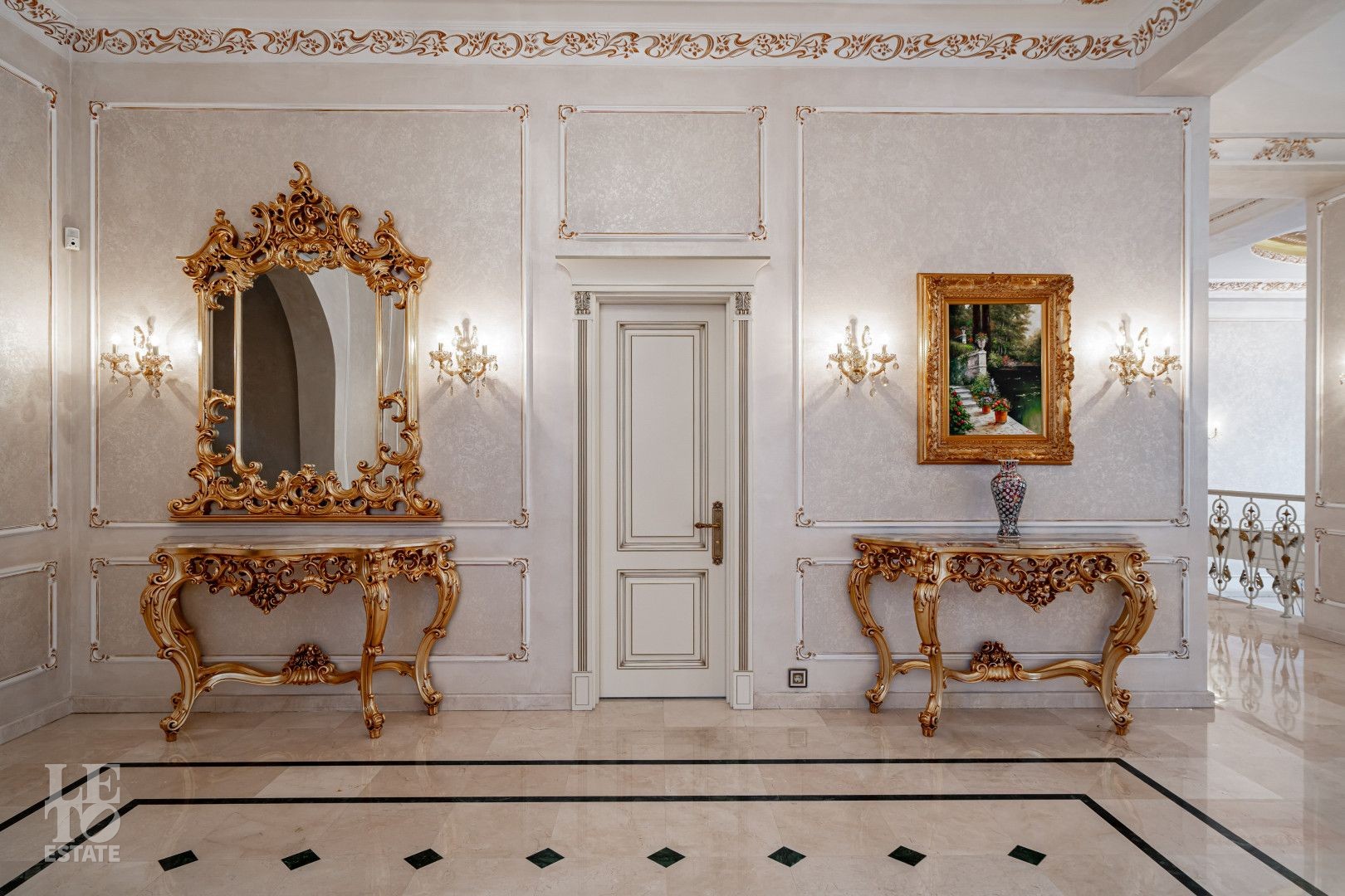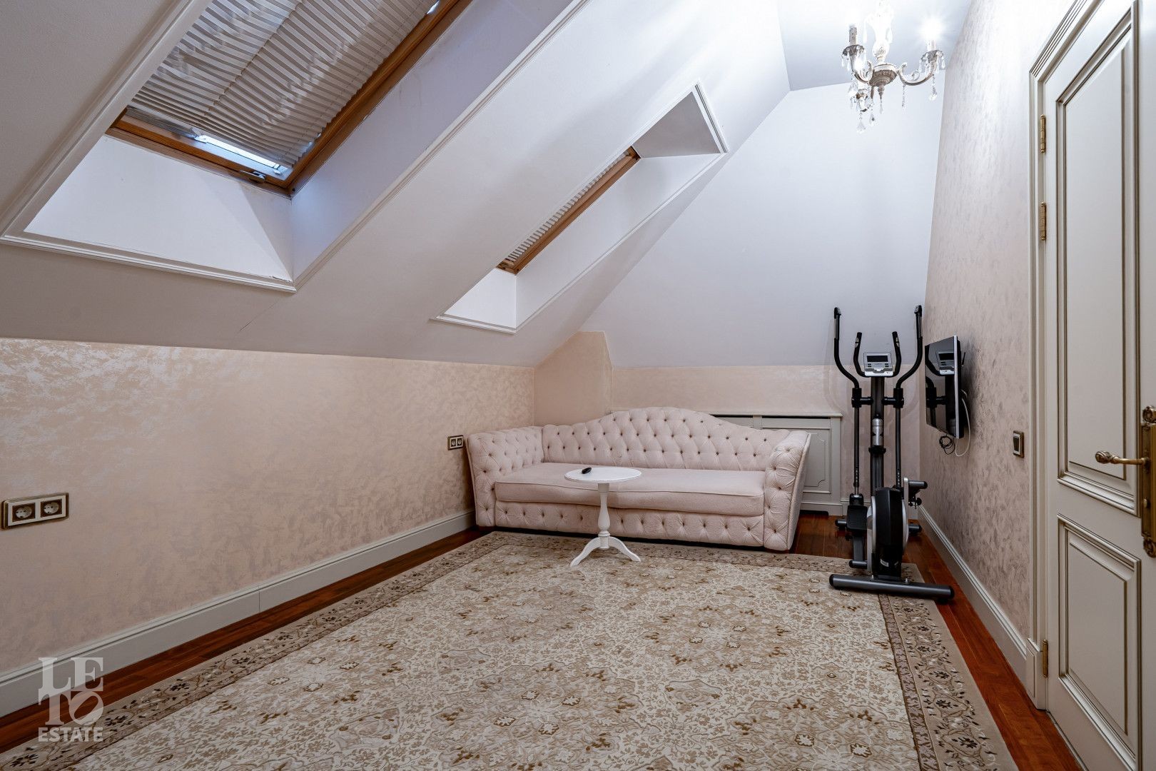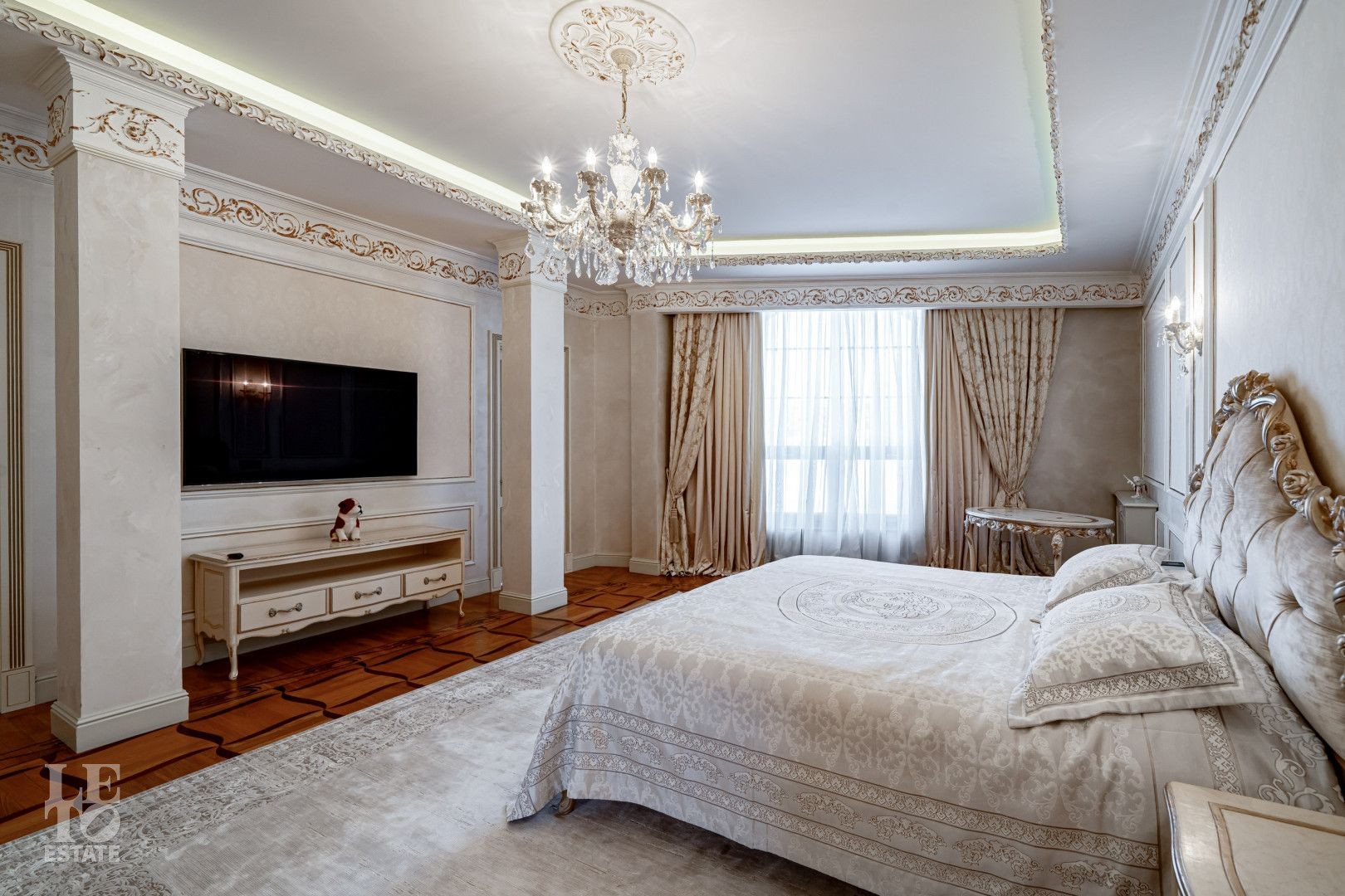 системой подогрева пола, создающие комфортную температуру в любое время года. Интерьеры дополнены лестницей с коваными перилами, декоративной лепниной и потолками с ручной