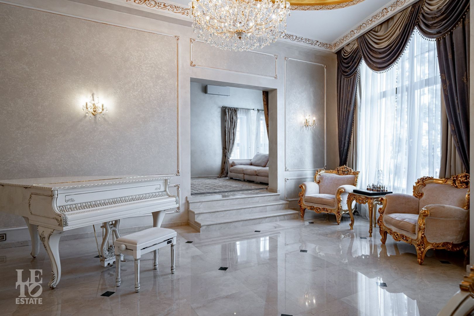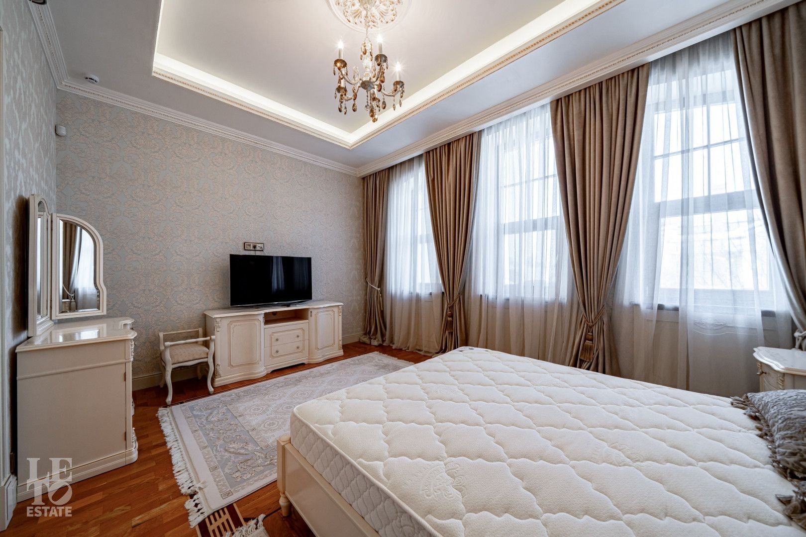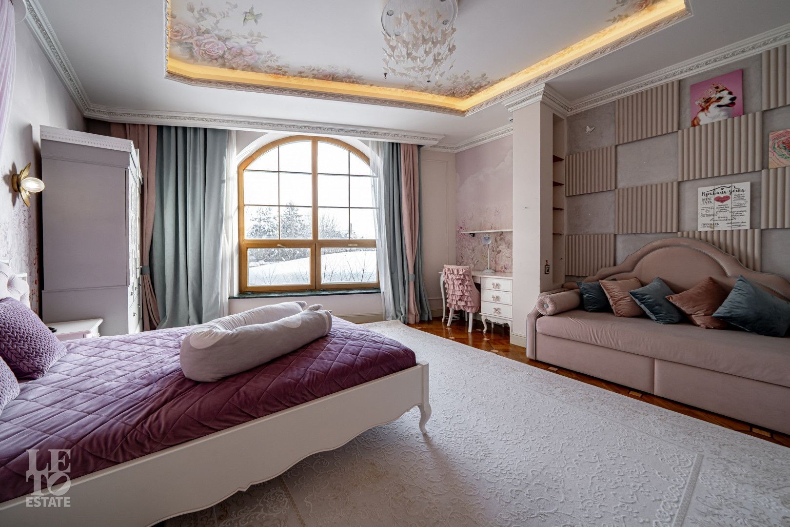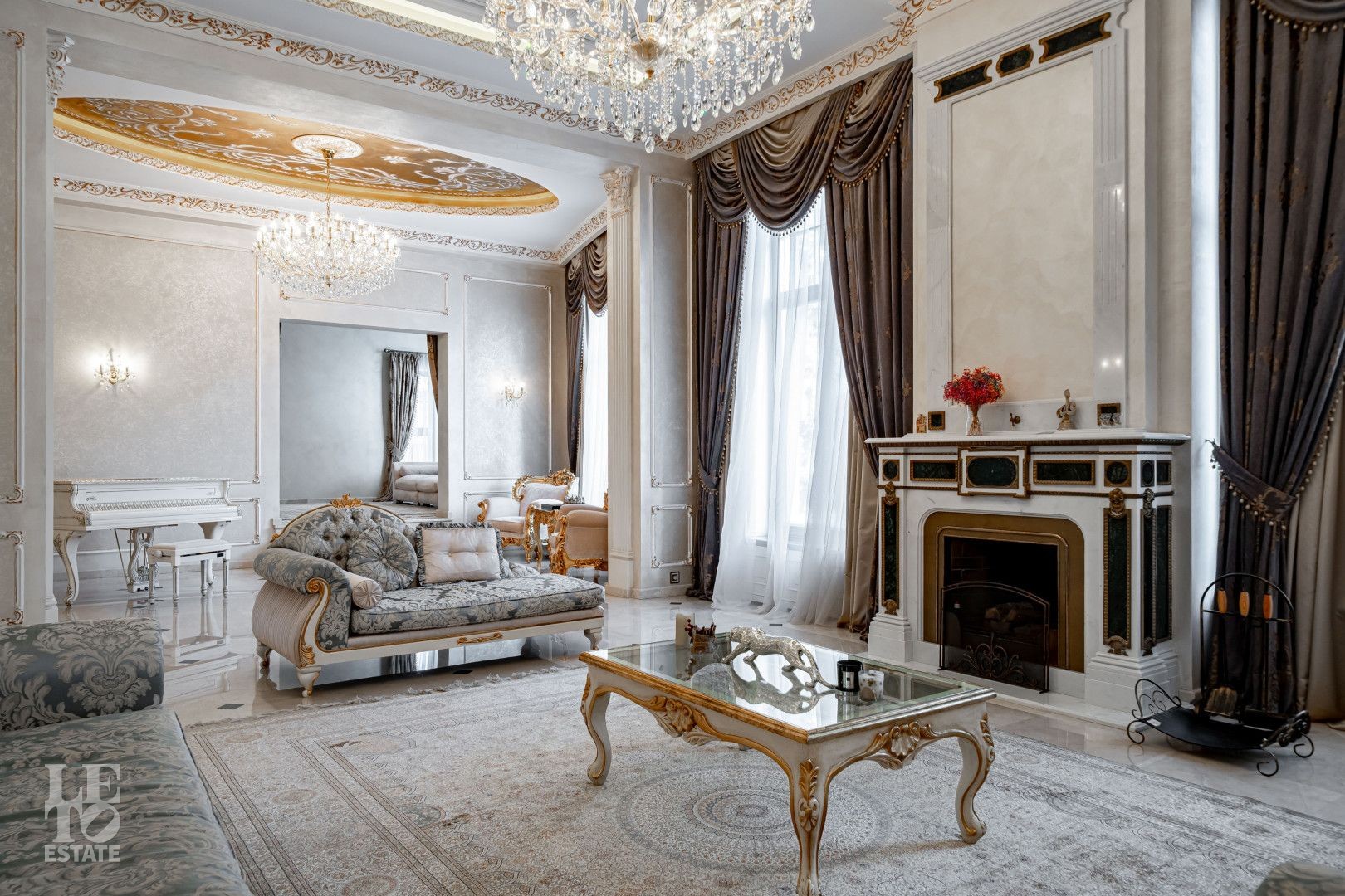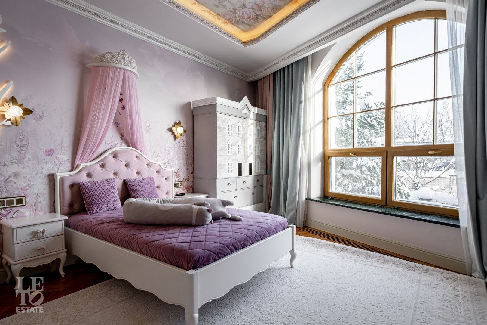 системой подогрева пола, создающие комфортную температуру в любое время года. Интерьеры дополнены лестницей с коваными перилами, декоративной лепниной и потолками с ручной