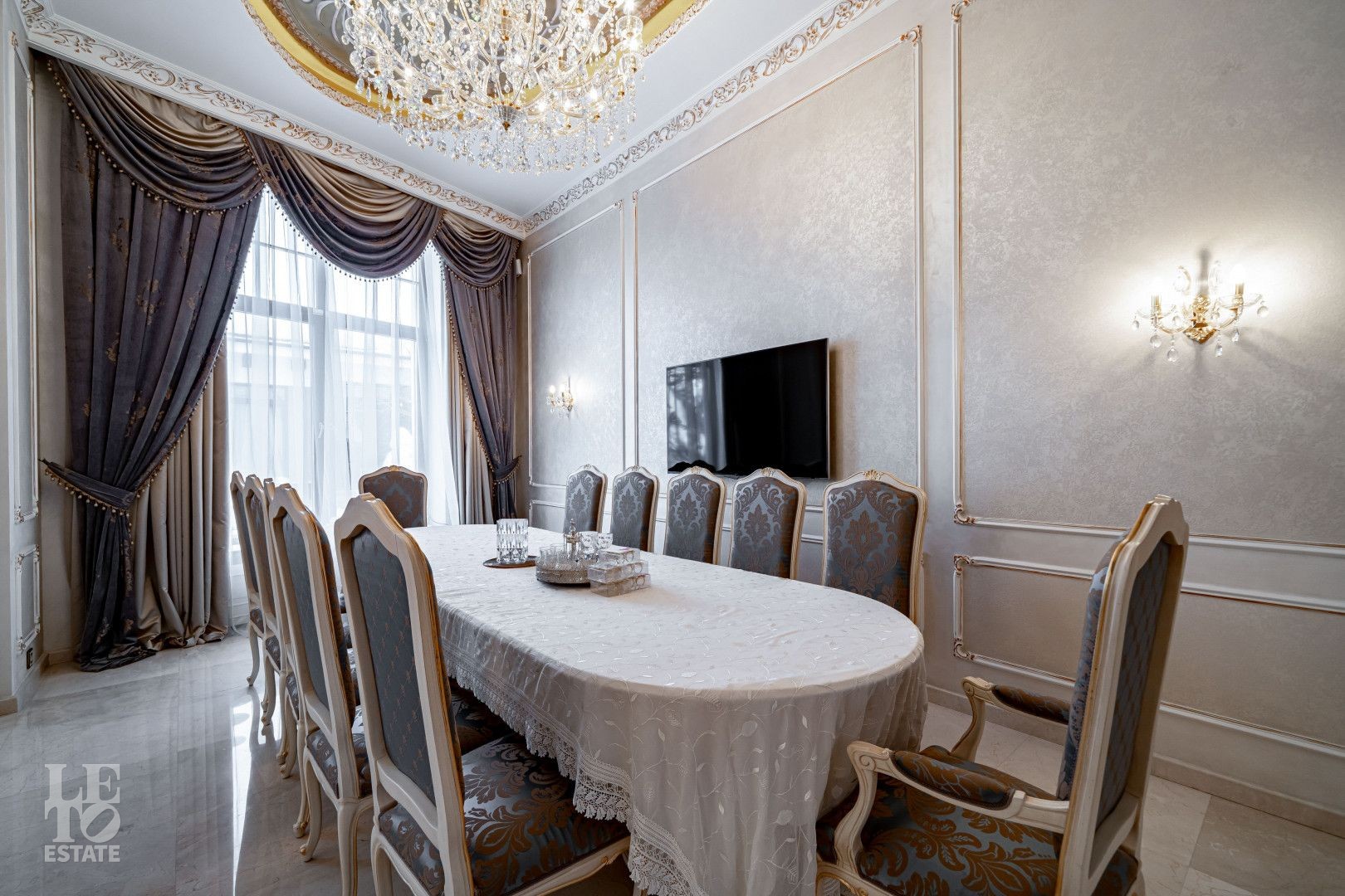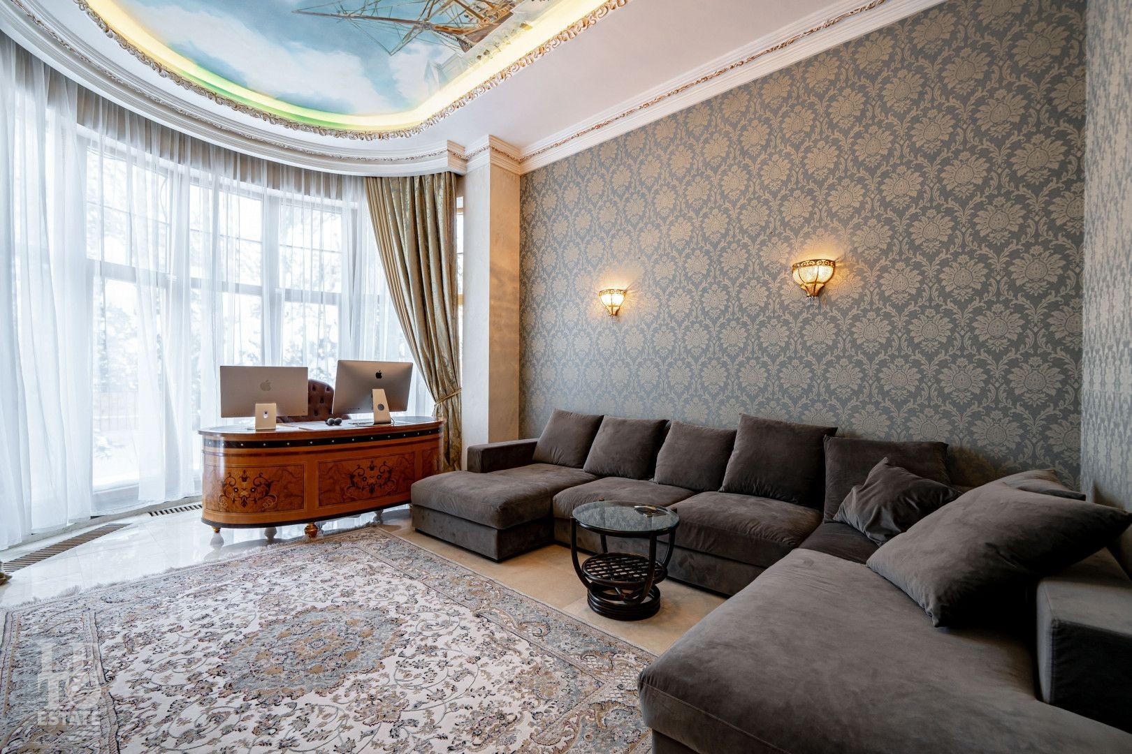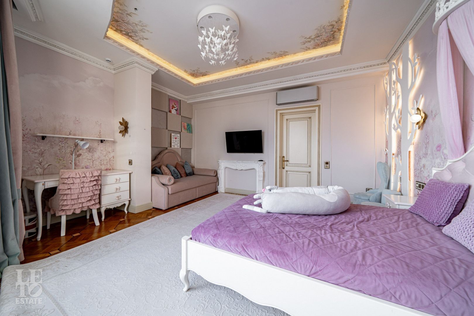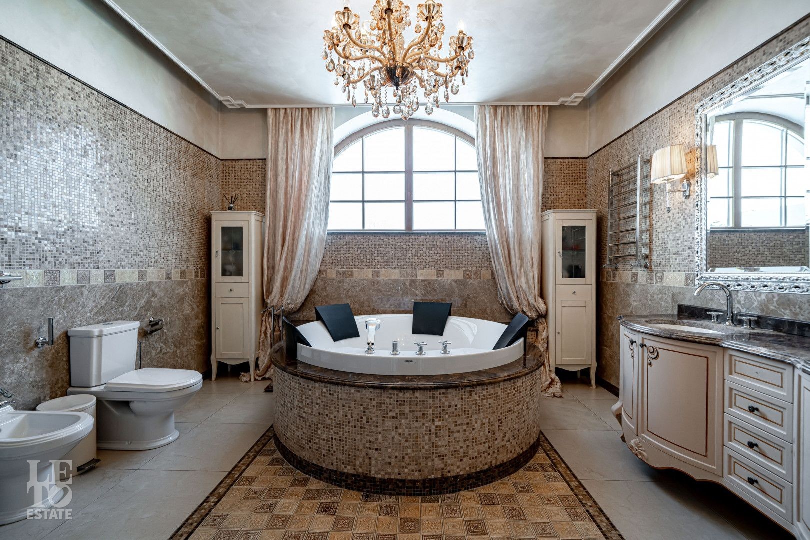 системой подогрева пола, создающие комфортную температуру в любое время года. Интерьеры дополнены лестницей с коваными перилами, декоративной лепниной и потолками с ручной