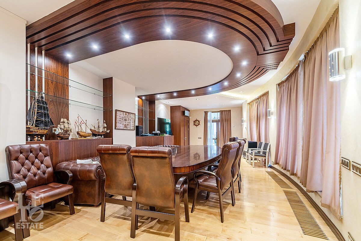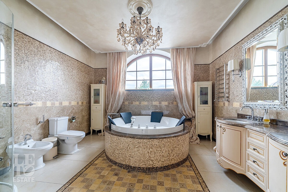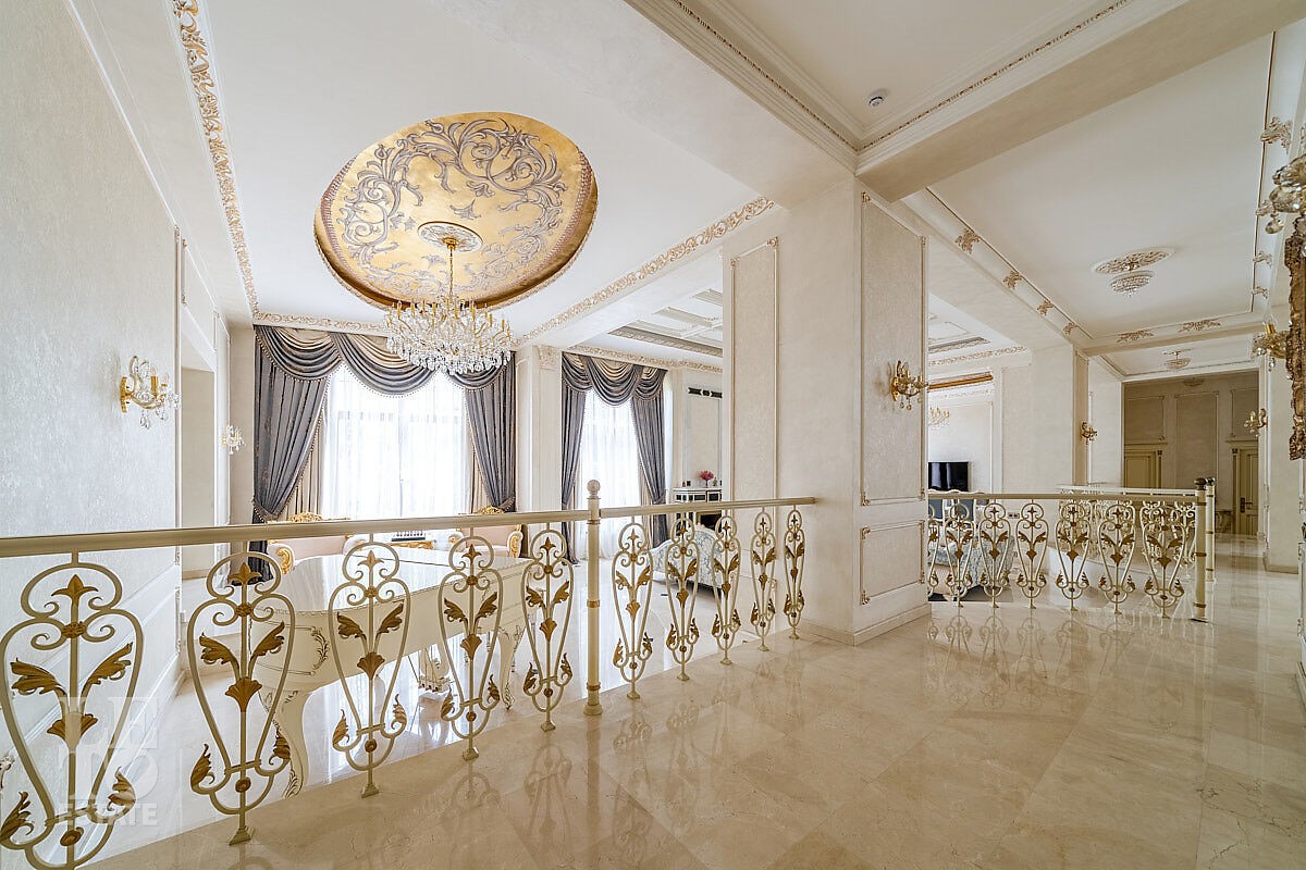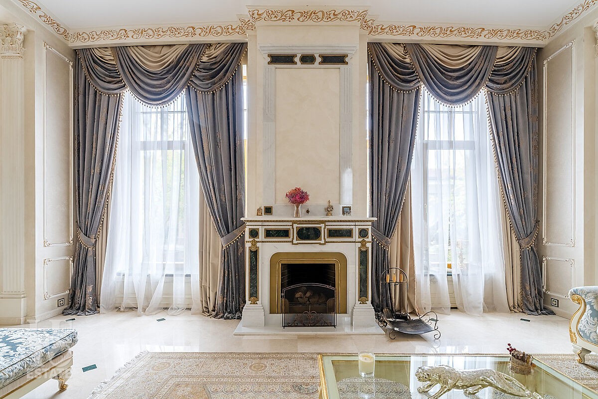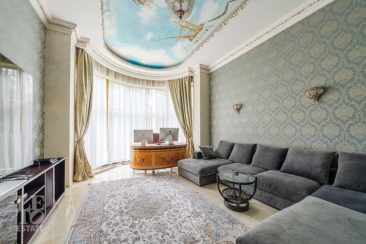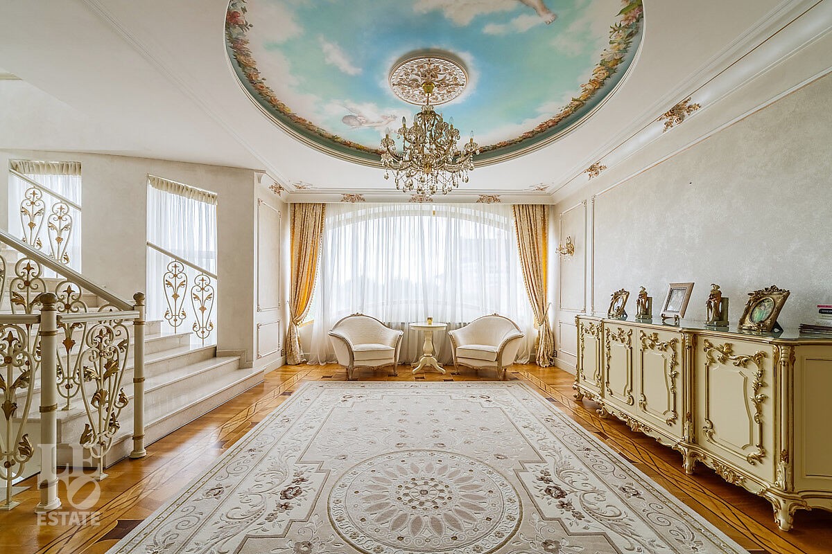 Дом построен в классическом стиле. Фасад дома украшен барельефами, входная группа выделена колоннами и красивым крыльцом с лестницей. Выполнена фасадная шпатлевка. В доме установлена система водоочистки и водоподготовки, предусмотрена приточно-вытяжная вентиляция. Отделка выполнена с использованием элементов из дерева, мрамора и ковки. Украшением дома служит прекрасная мраморная лестница с коваными ограждениями и перилами из массива дуба. Высота потолков в комнатах 3,5 м. На полу – наборный паркет из дуба. На всем первом этаже сделан теплый пол, на втором этаже – только в санузлах. Отделка дома закончена в 2018 году. Дом продается с мебелью.