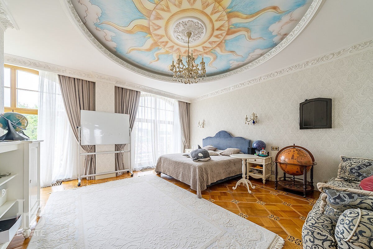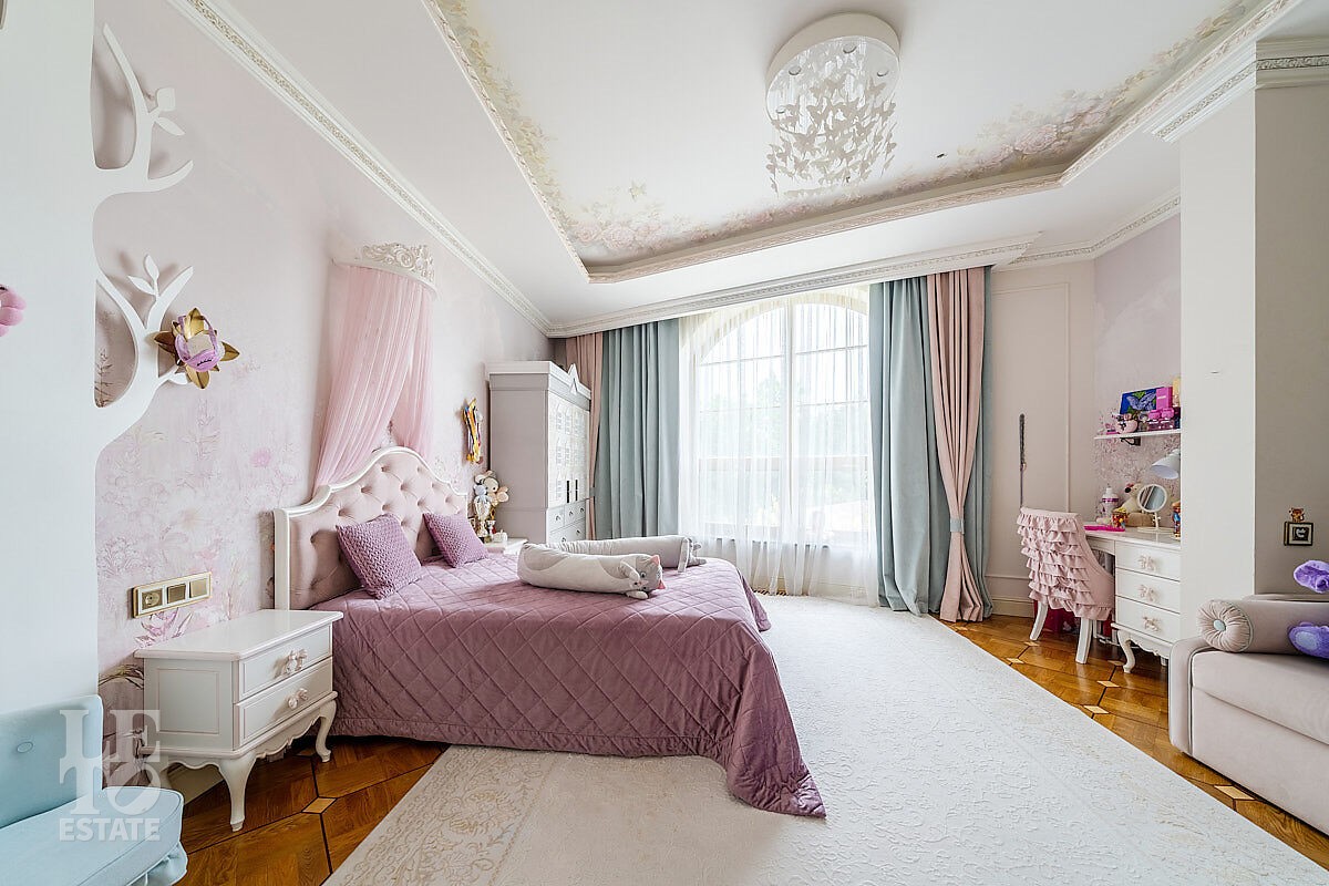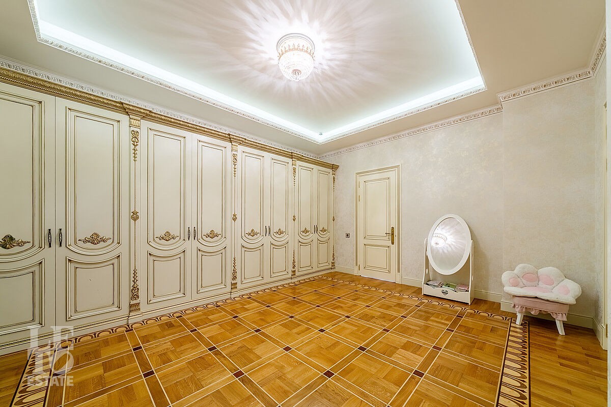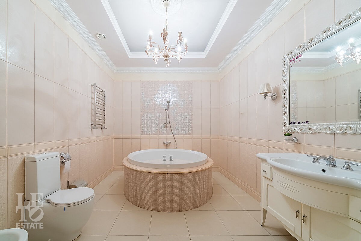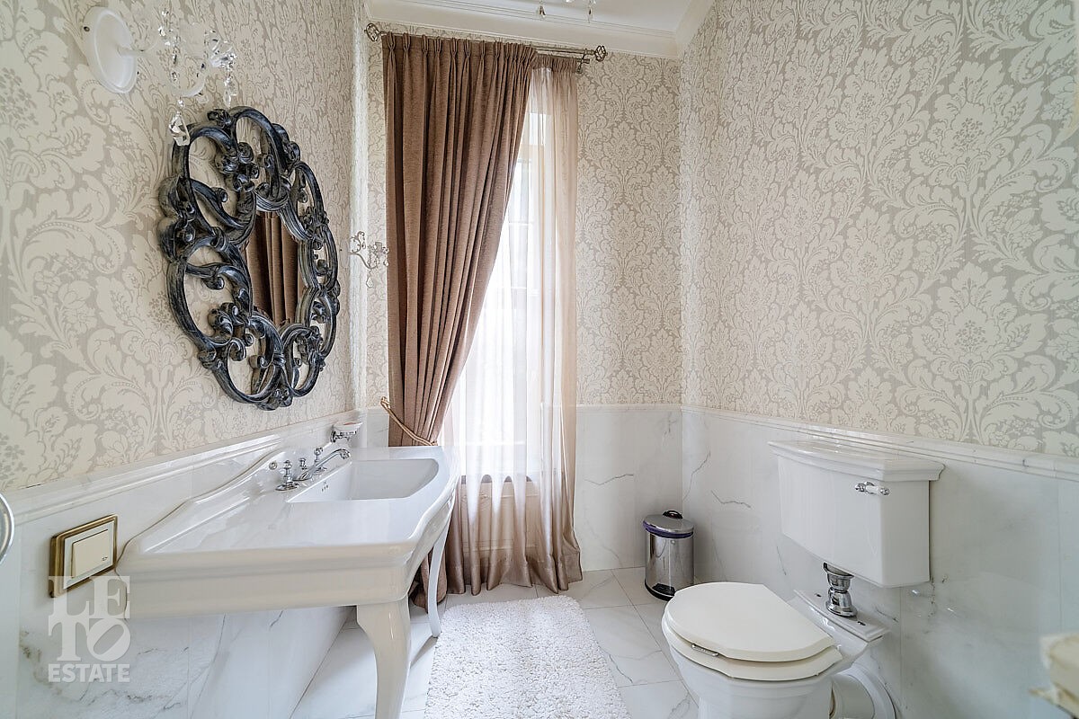 Дом построен в классическом стиле. Фасад дома украшен барельефами, входная группа выделена колоннами и красивым крыльцом с лестницей. Выполнена фасадная шпатлевка. В доме установлена система водоочистки и водоподготовки, предусмотрена приточно-вытяжная вентиляция. Отделка выполнена с использованием элементов из дерева, мрамора и ковки. Украшением дома служит прекрасная мраморная лестница с коваными ограждениями и перилами из массива дуба. Высота потолков в комнатах 3,5 м. На полу – наборный паркет из дуба. На всем первом этаже сделан теплый пол, на втором этаже – только в санузлах. Отделка дома закончена в 2018 году. Дом продается с мебелью.