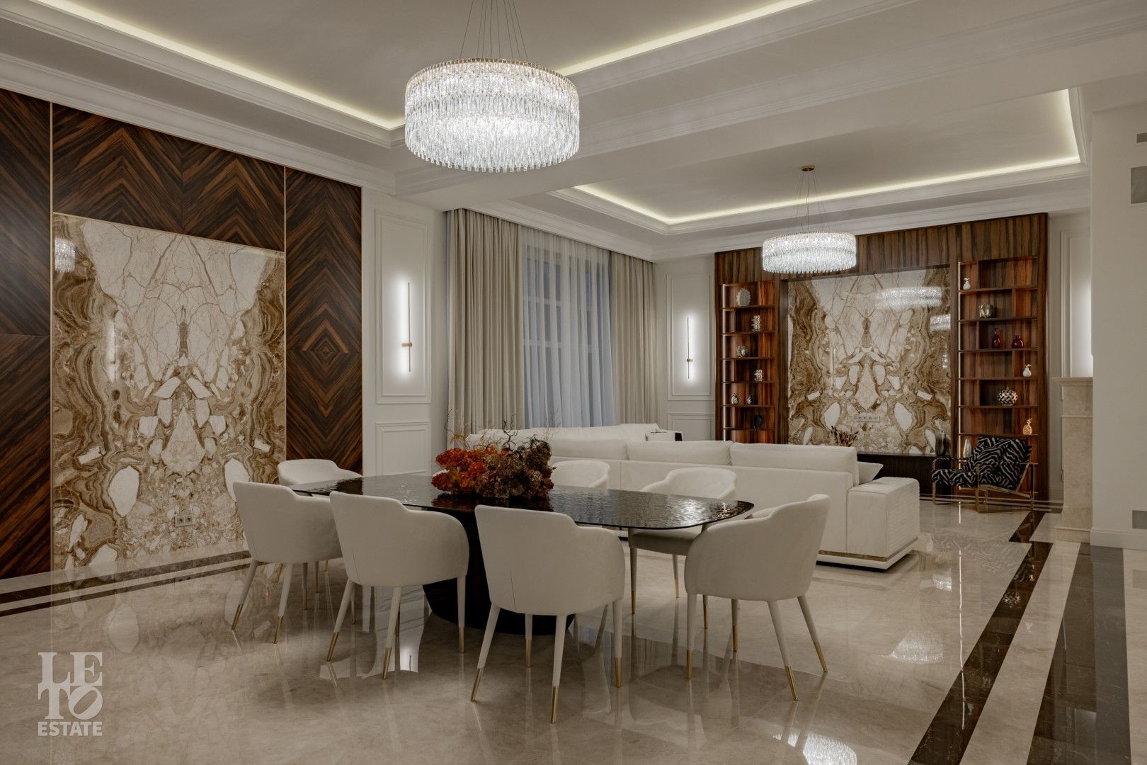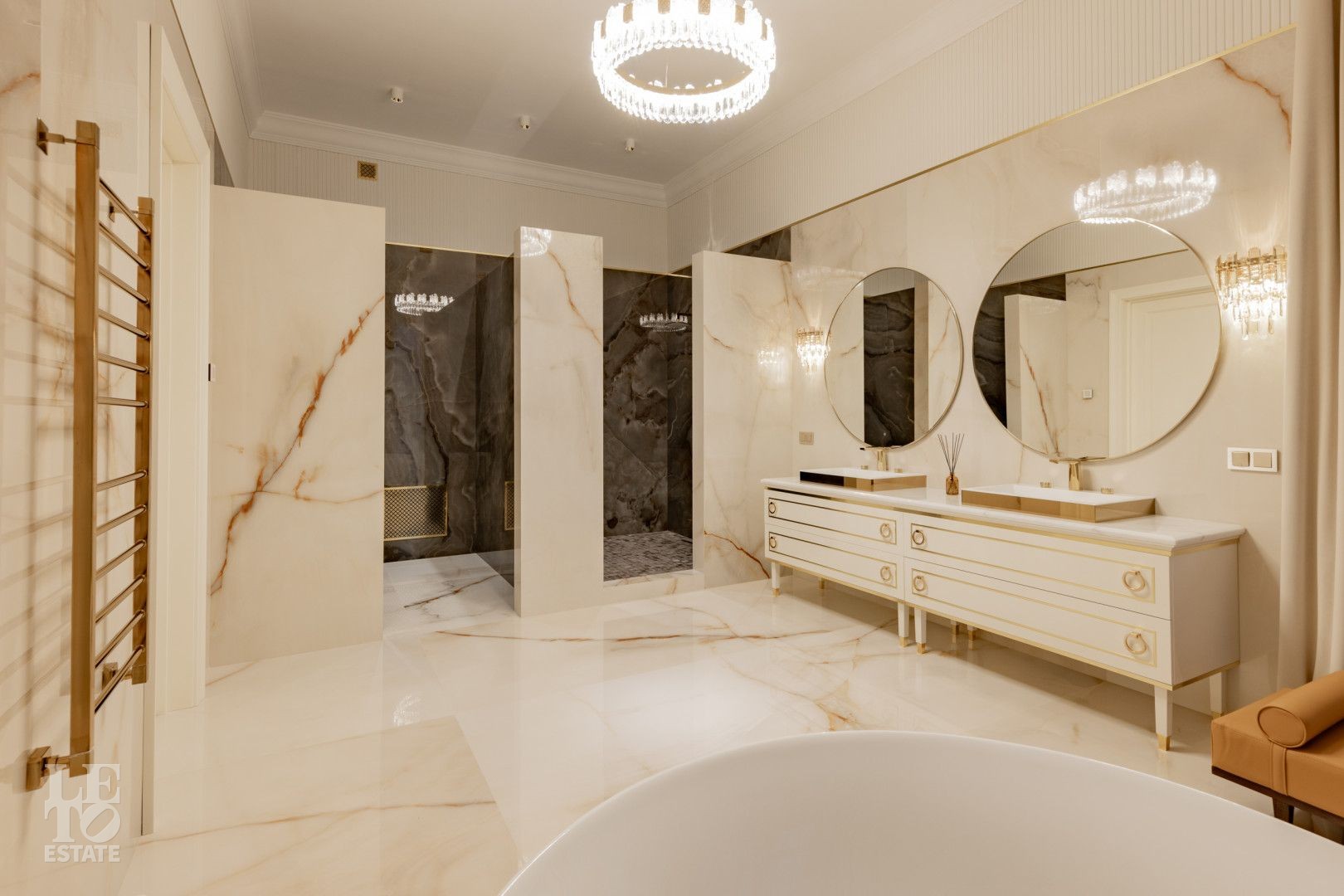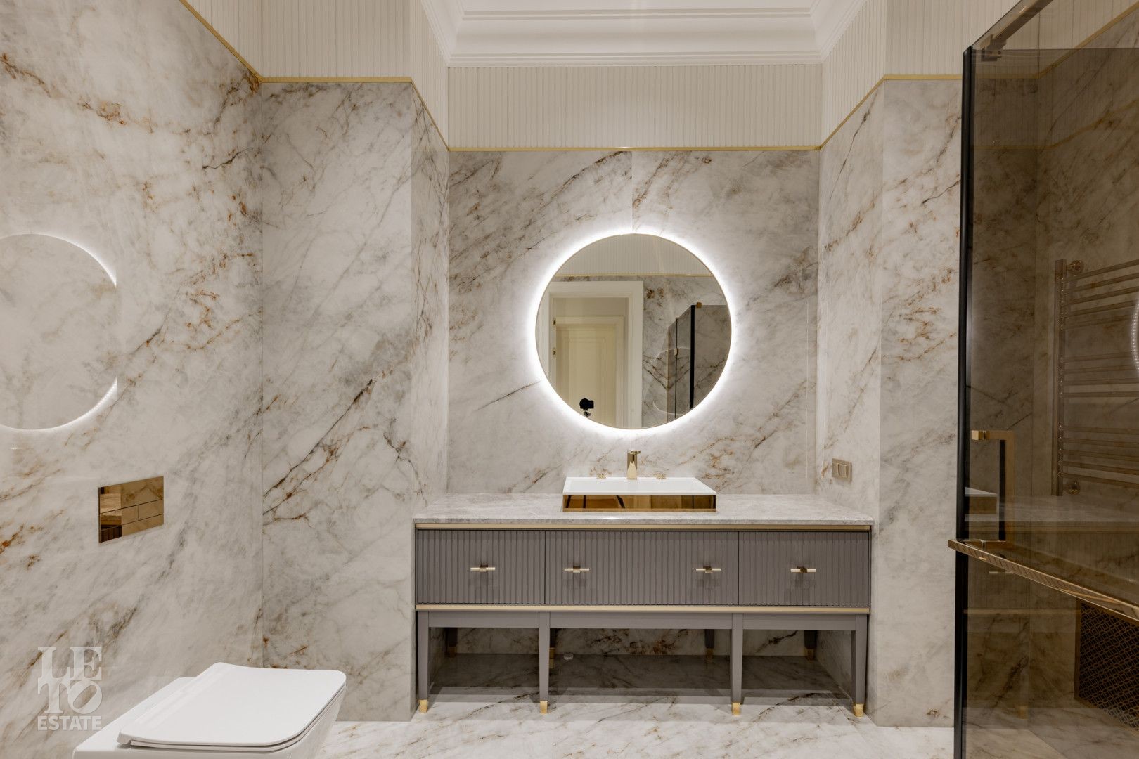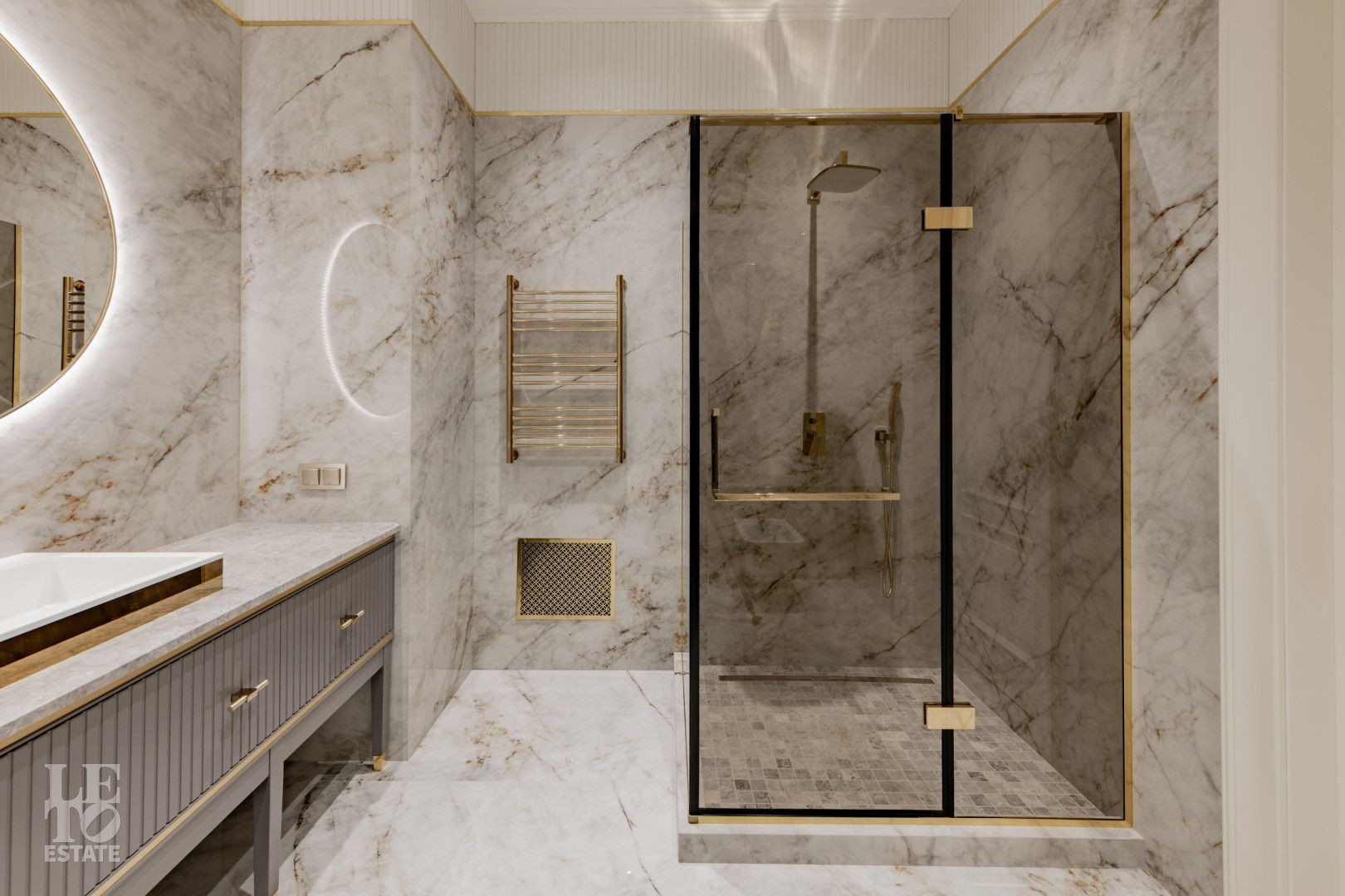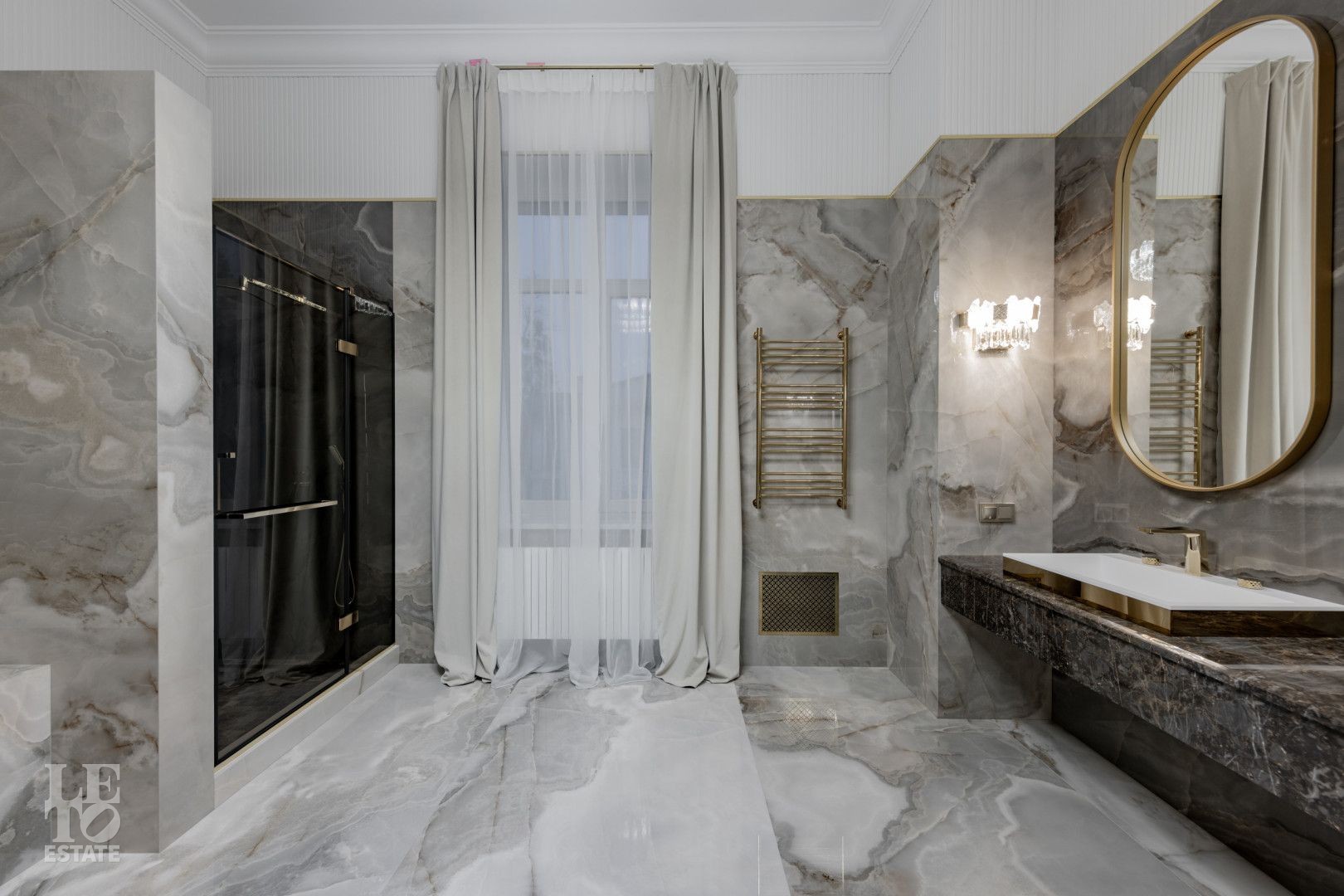 В отделке использованы высококачественные материалы, в частности итальянский керамогранит, натуральный мрамор, а также представлена премиальная сантехника из Италии и Германии. Функционально удобная планировка, просторные помещения и панорамное остекление расширяют пространство и предусматривают комфортное проживание для большой семьи. Современные инженерные системы включают центральное кондиционирование, автоматическую регулировку теплых полов и конвекторное отопление, создавая комфортные условия в любое время года.