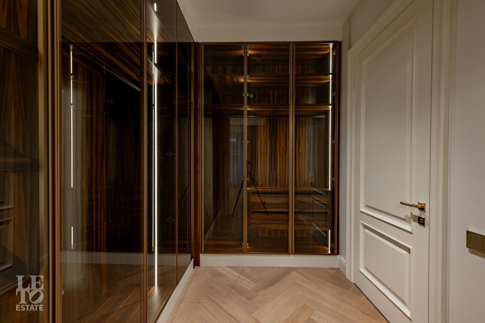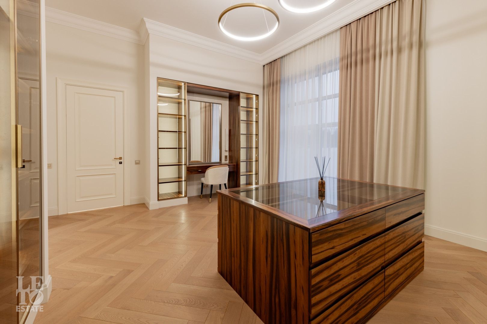 Второй этаж: 3 спальни с гардеробными и санузлами, кабинет (комната свободного назначения), санузел.