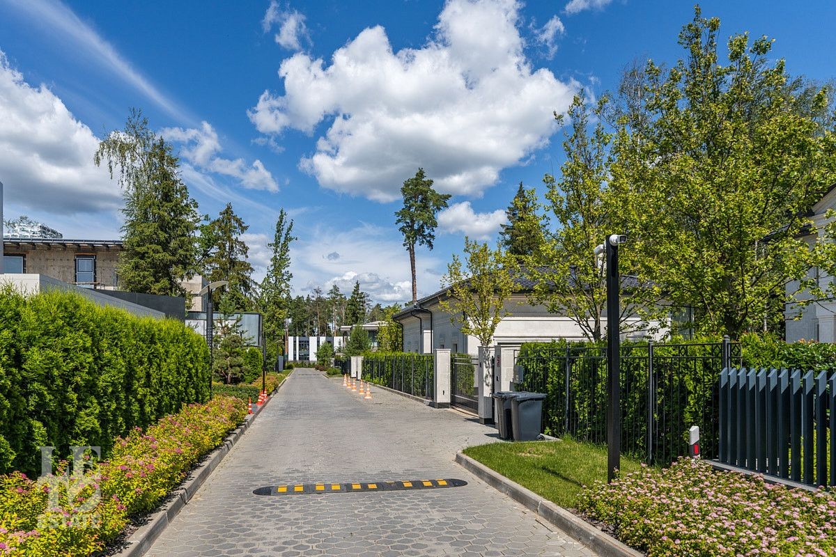 На участке в 15 соток выполнен ландшафтный дизайн с озеленением и газоном, оборудовано наружное освещение и подсветка дорог.
