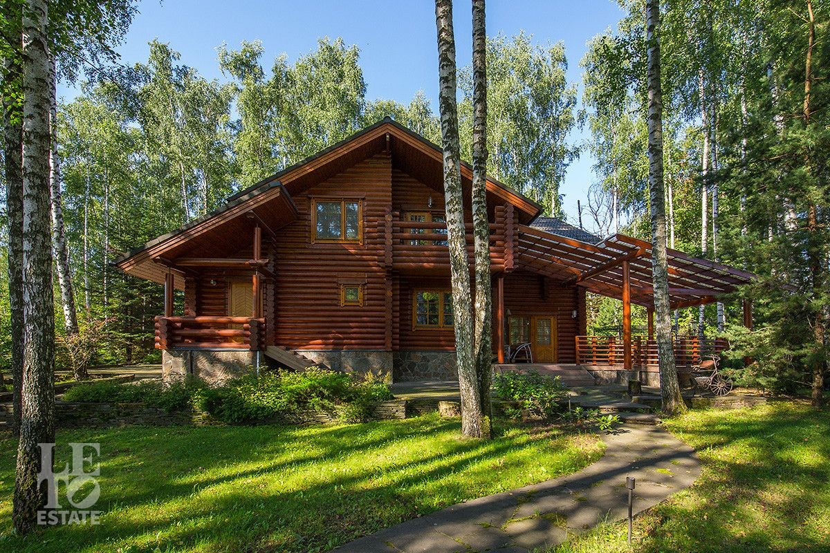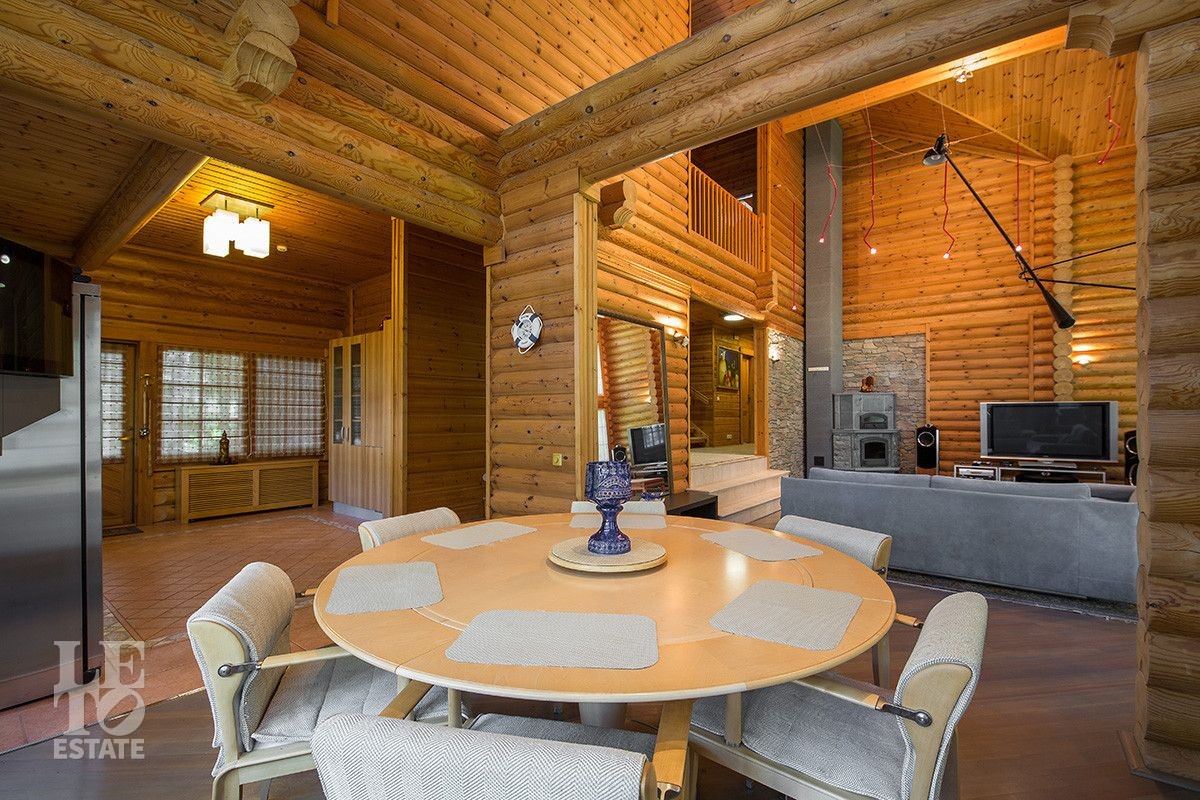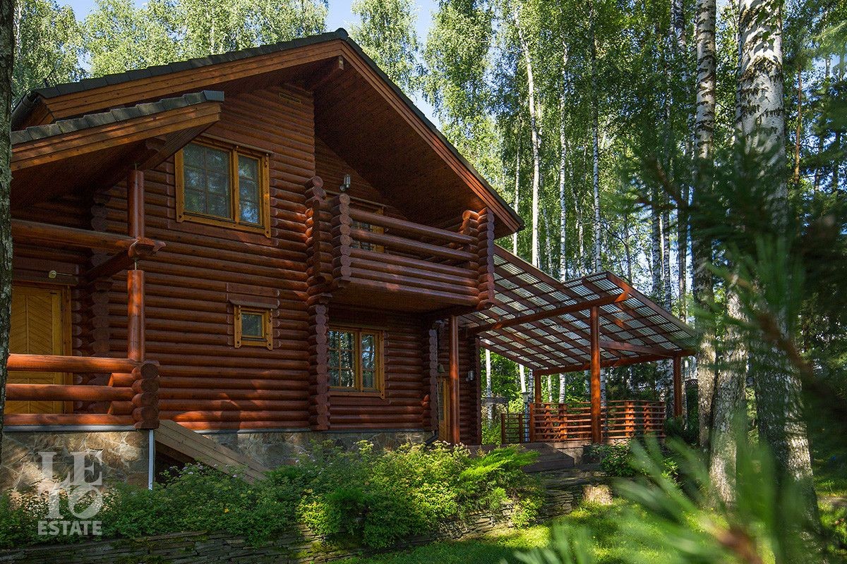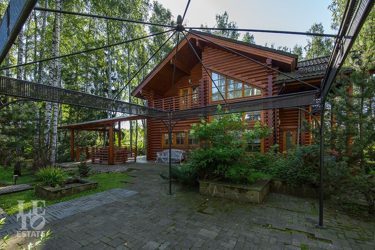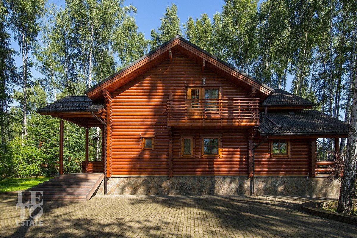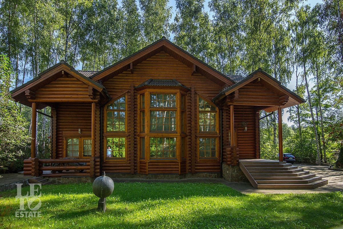 Дом построен из оцилиндрованного бревна, укомплектован всей необходимой мебелью и бытовой техникой. На участке растут большие лесные деревья, имеется декоративный прудик и беседка. Организована площадка для парковки автомобилей.