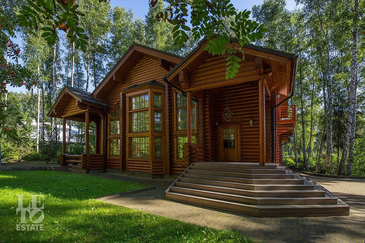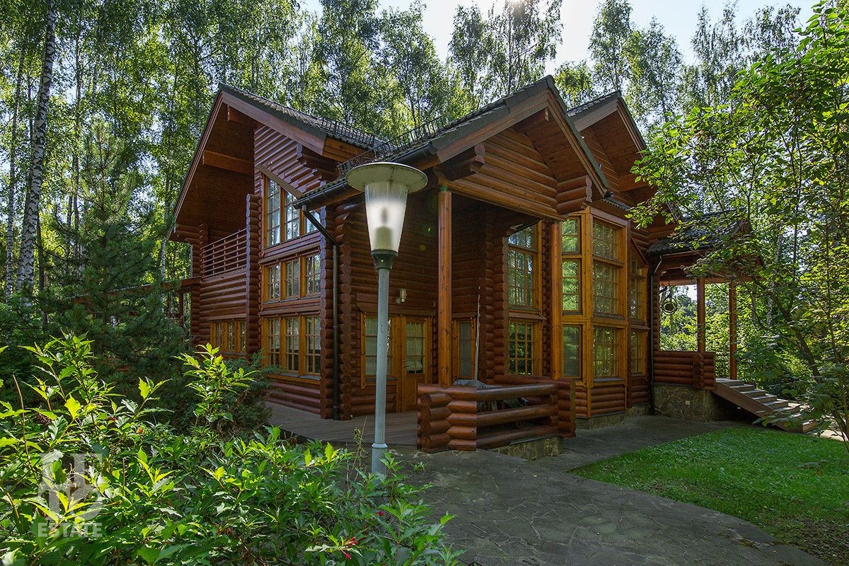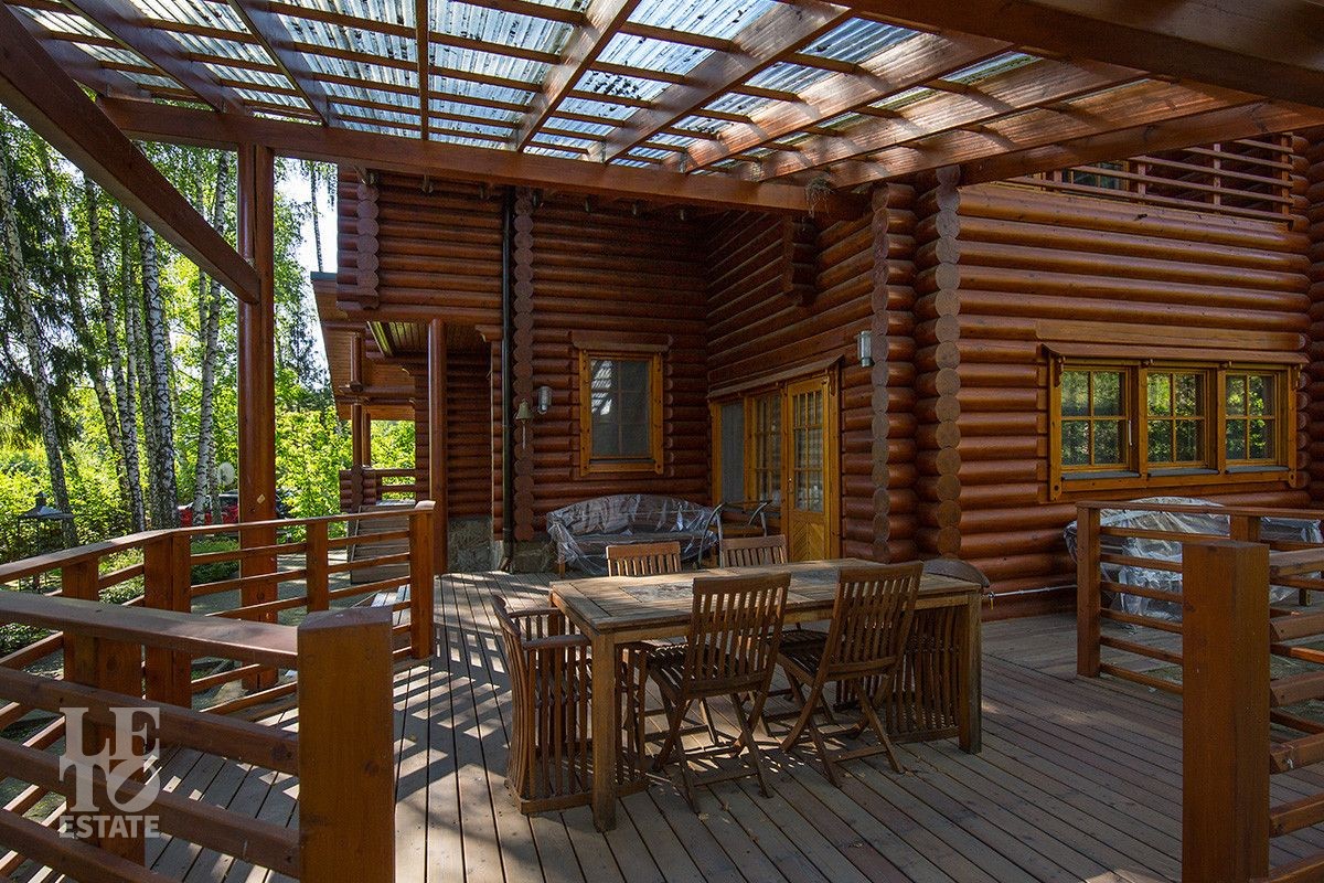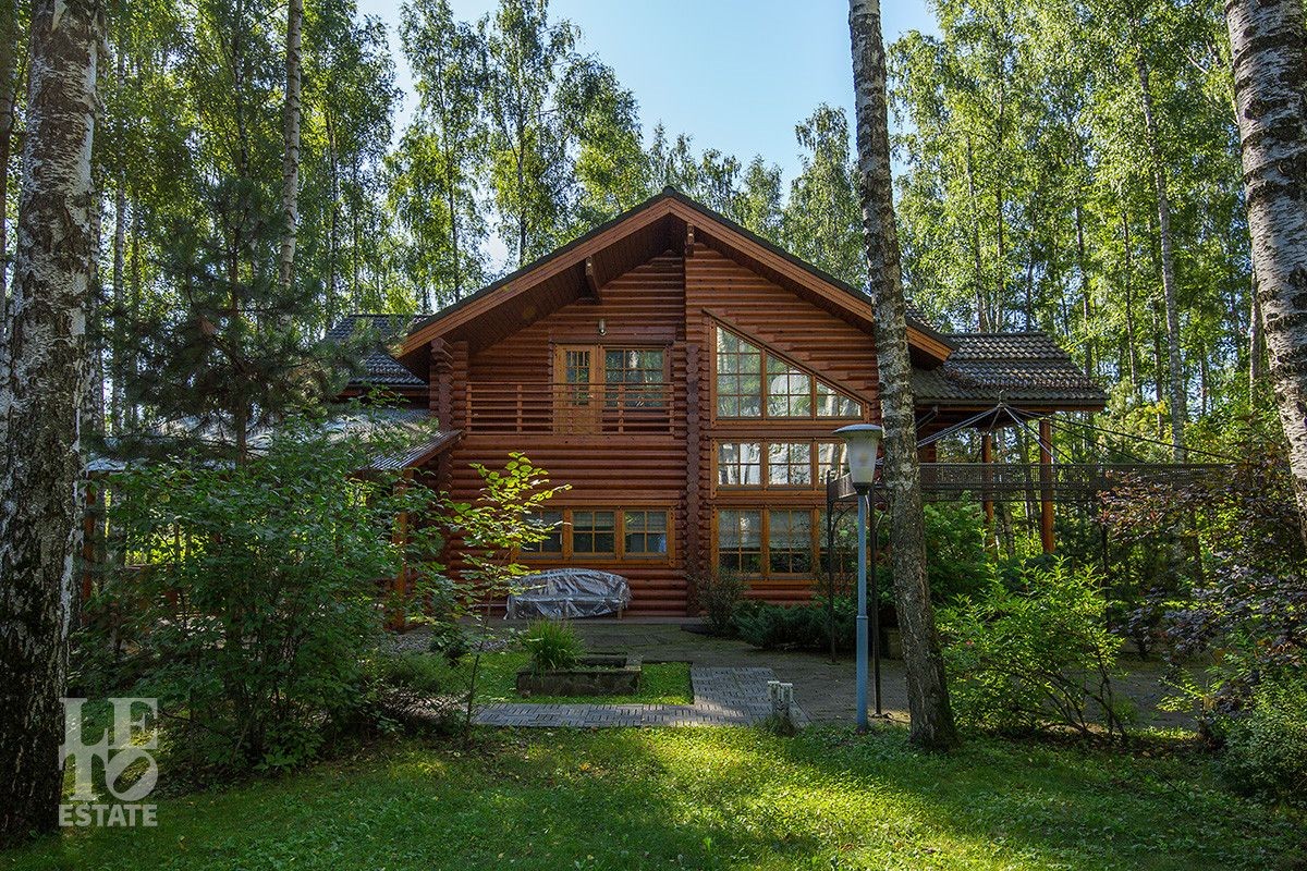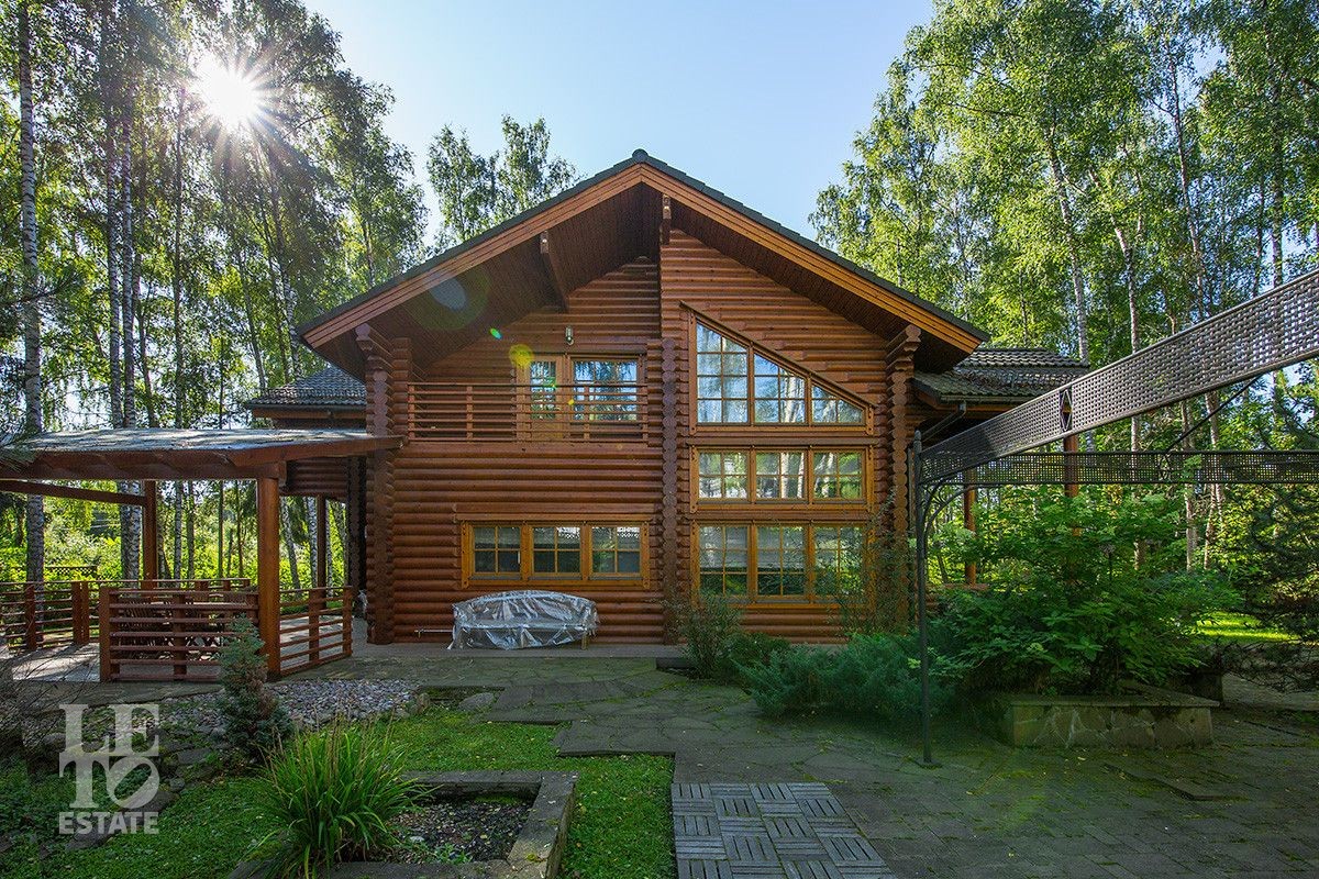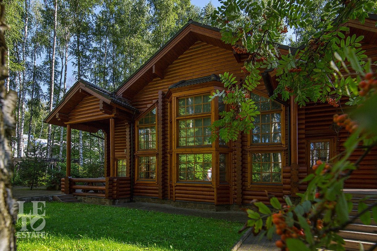 Дом построен из оцилиндрованного бревна, укомплектован всей необходимой мебелью и бытовой техникой. На участке растут большие лесные деревья, имеется декоративный прудик и беседка. Организована площадка для парковки автомобилей.