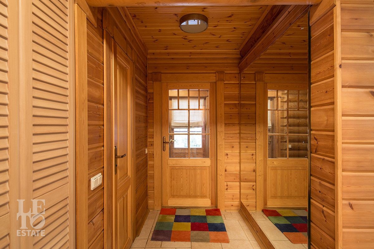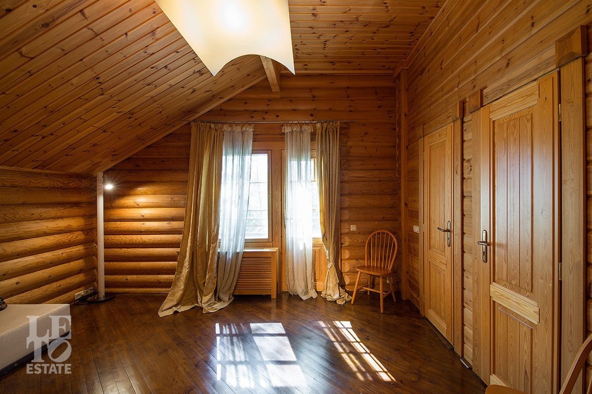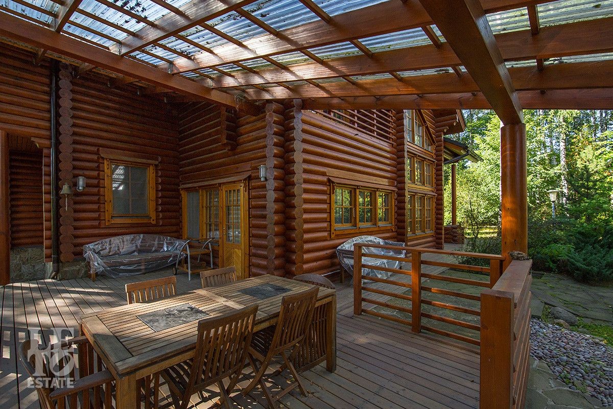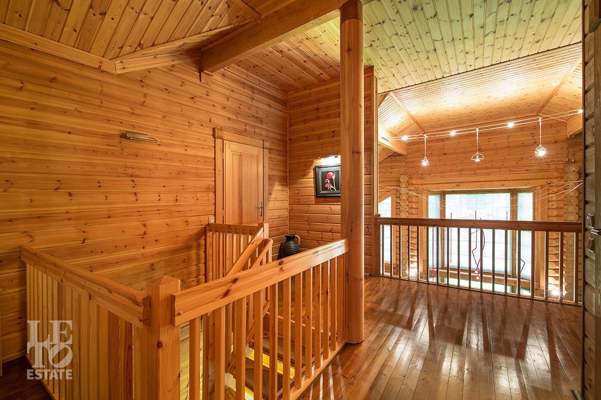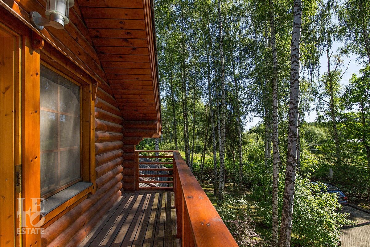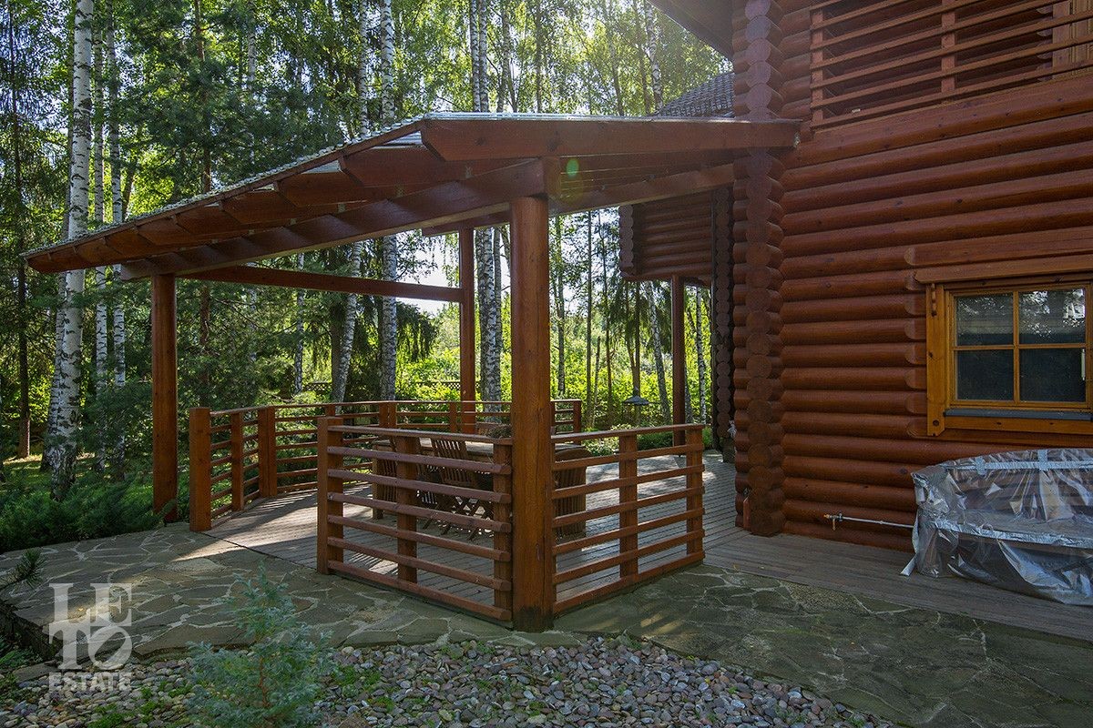 Дом построен из оцилиндрованного бревна, укомплектован всей необходимой мебелью и бытовой техникой. На участке растут большие лесные деревья, имеется декоративный прудик и беседка. Организована площадка для парковки автомобилей.