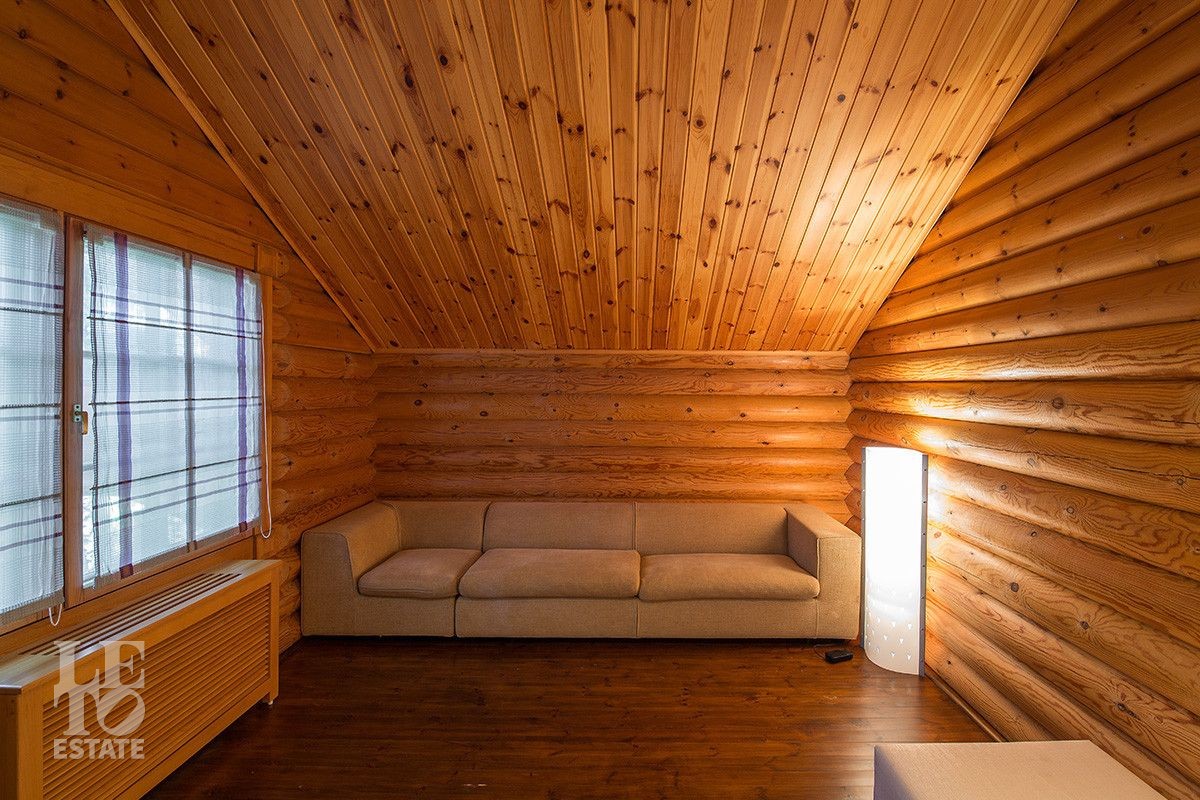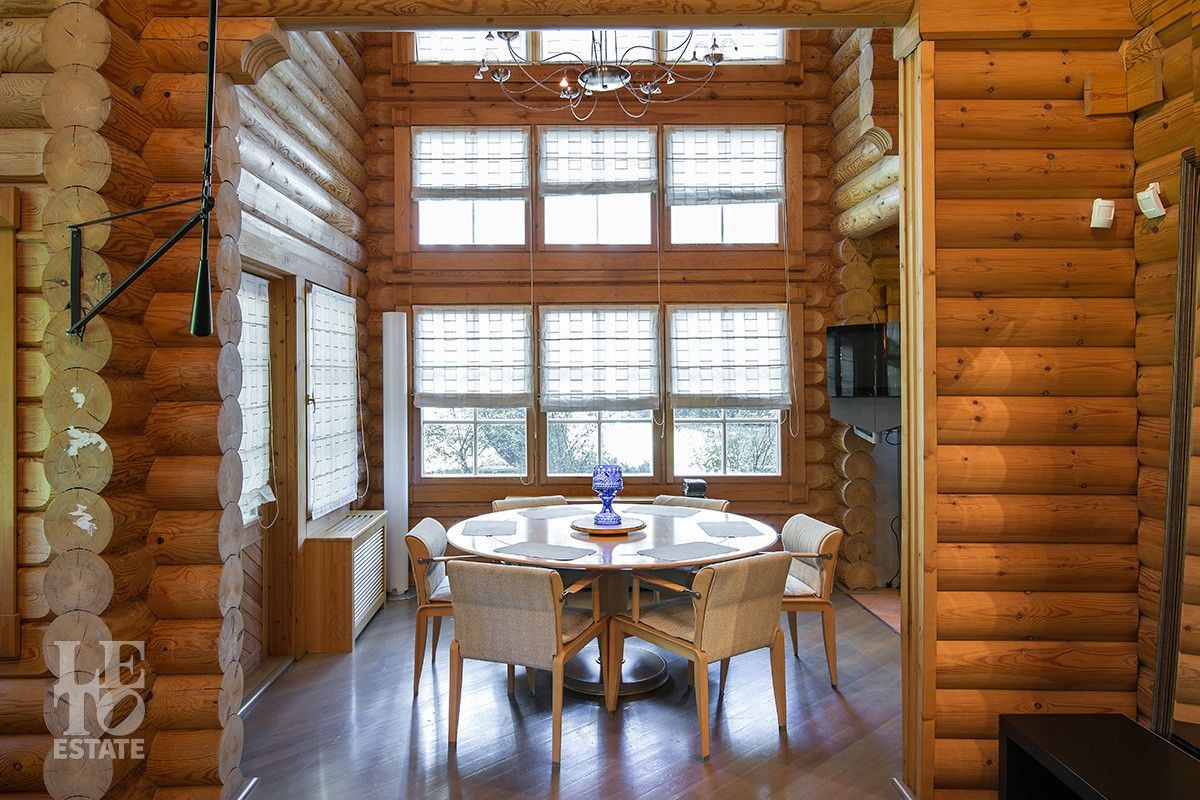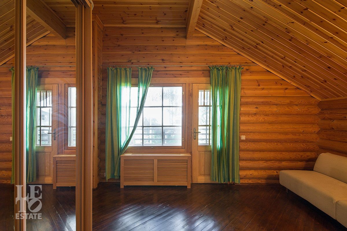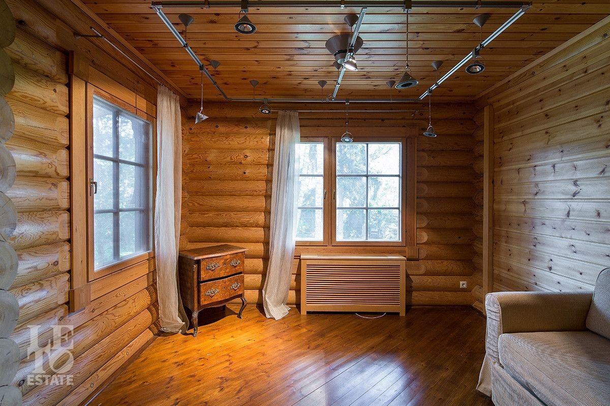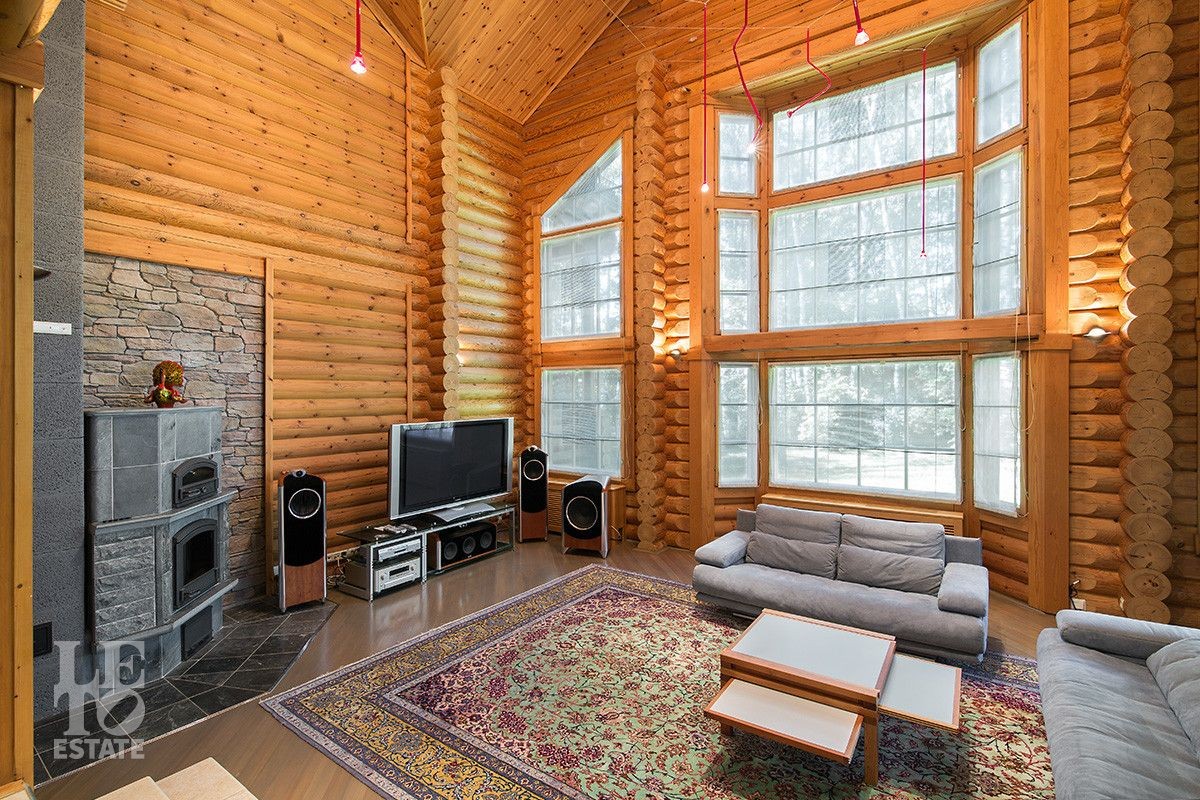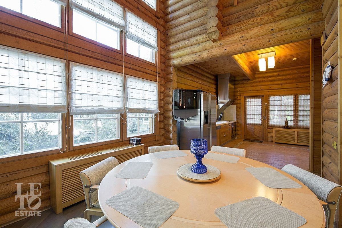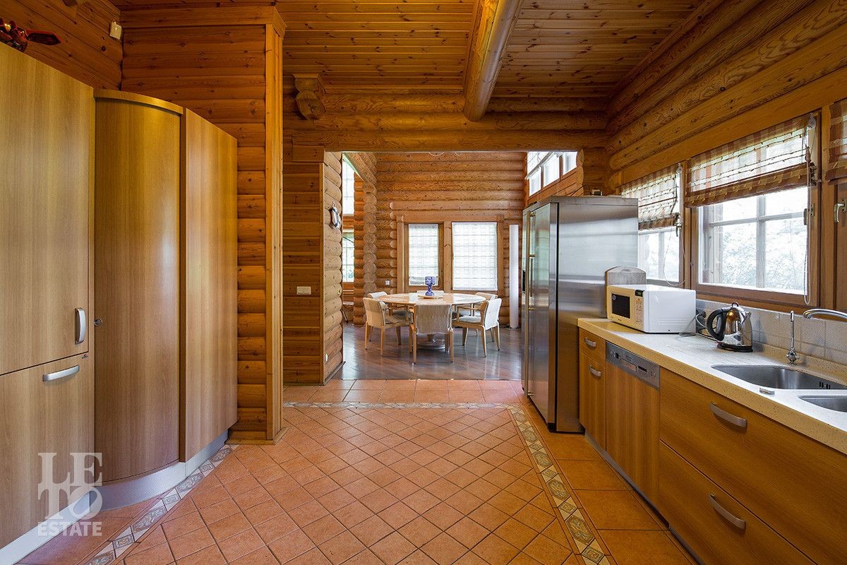 Дом построен из оцилиндрованного бревна, укомплектован всей необходимой мебелью и бытовой техникой. На участке растут большие лесные деревья, имеется декоративный прудик и беседка. Организована площадка для парковки автомобилей.