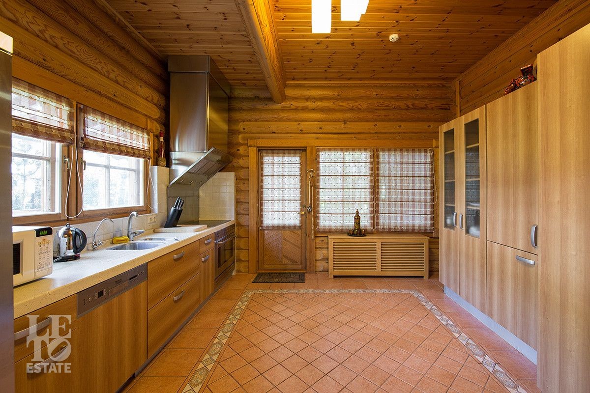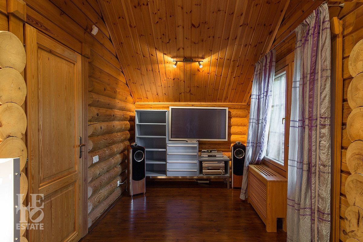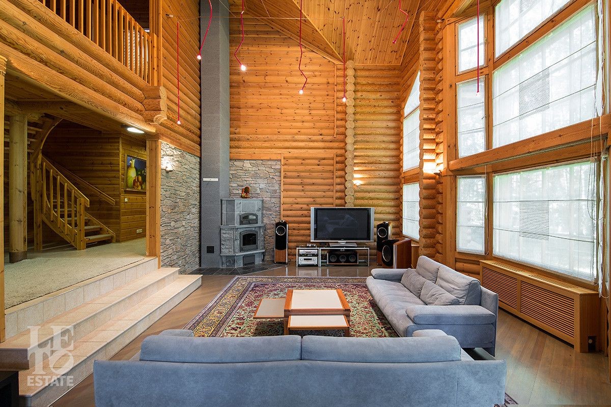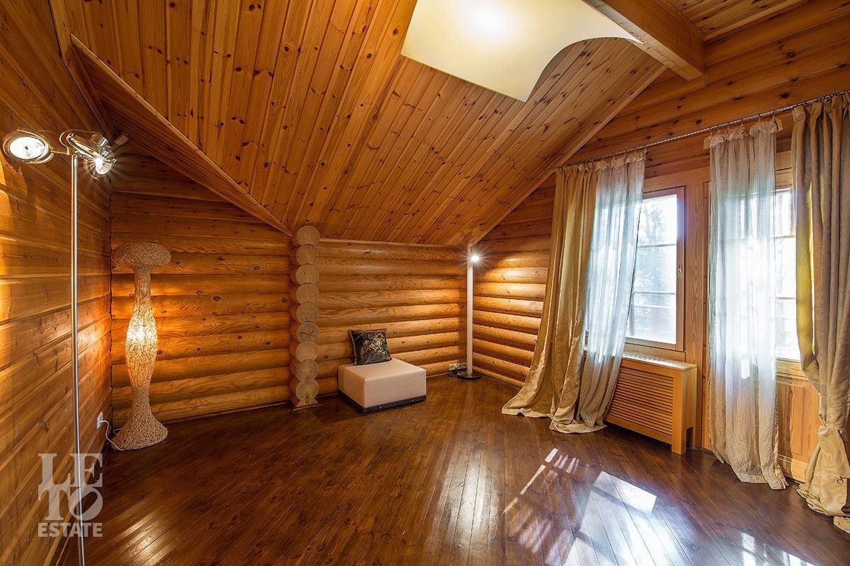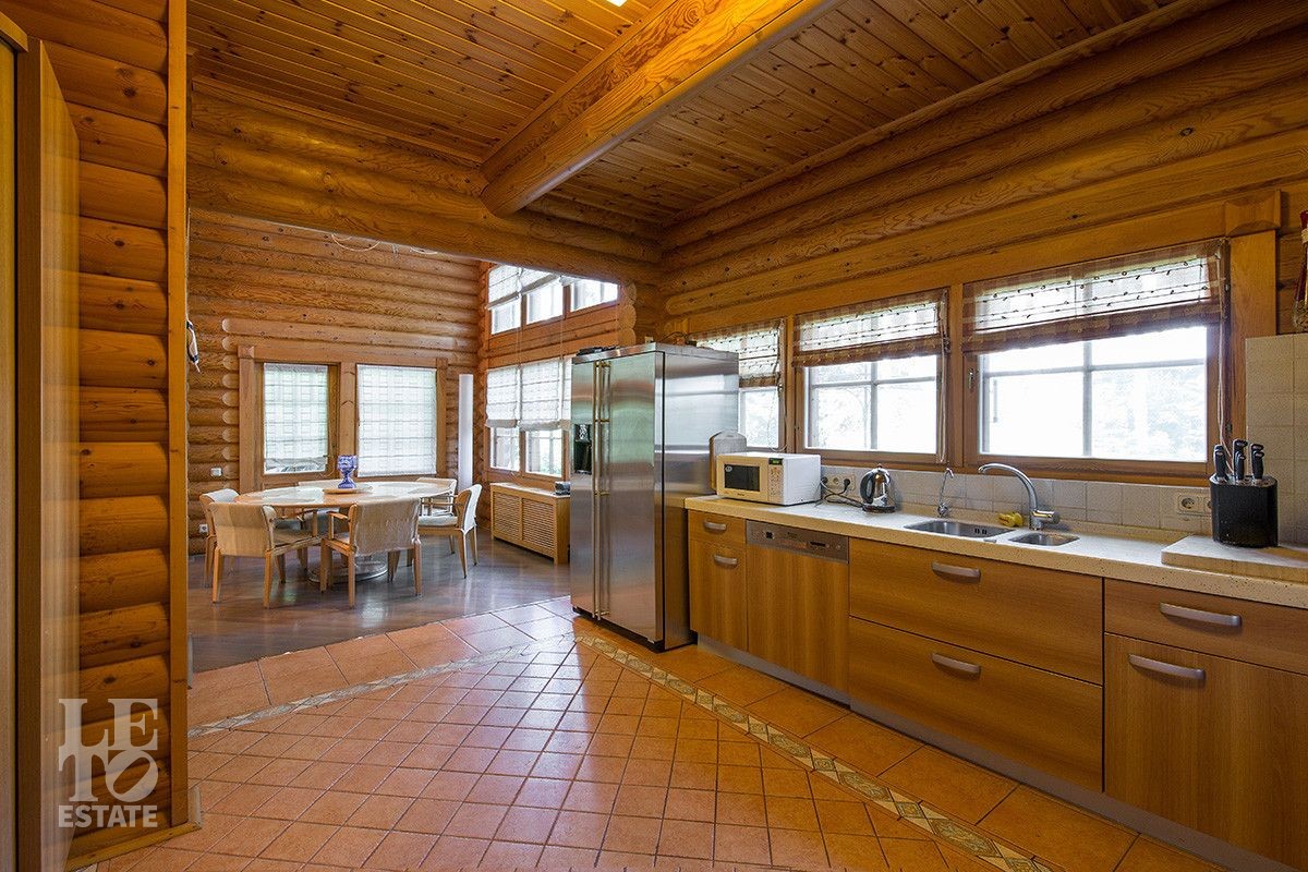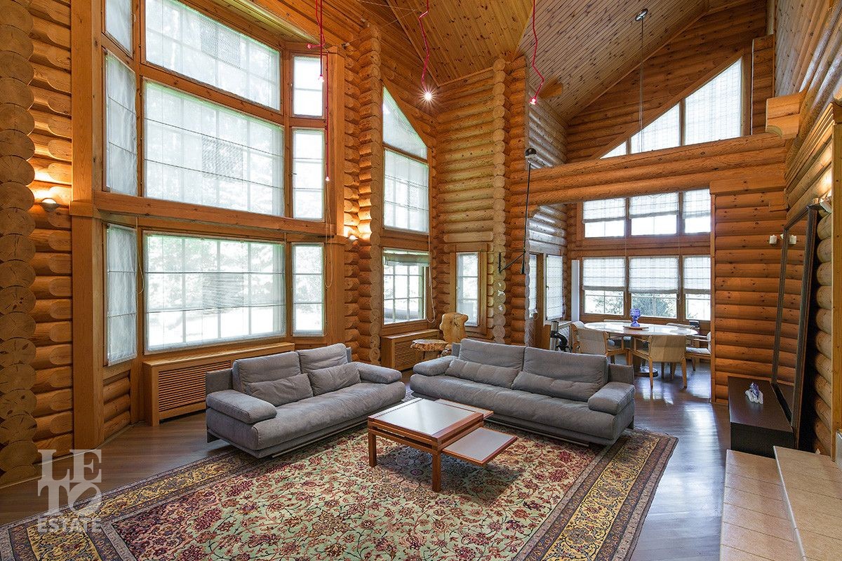 Дом построен из оцилиндрованного бревна, укомплектован всей необходимой мебелью и бытовой техникой. На участке растут большие лесные деревья, имеется декоративный прудик и беседка. Организована площадка для парковки автомобилей.