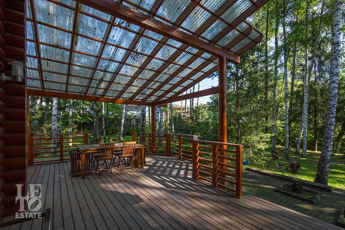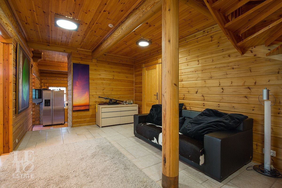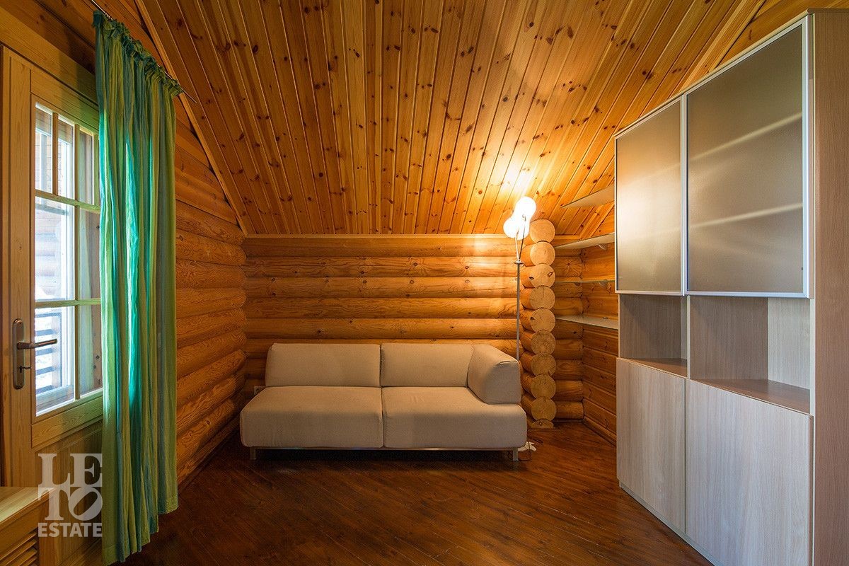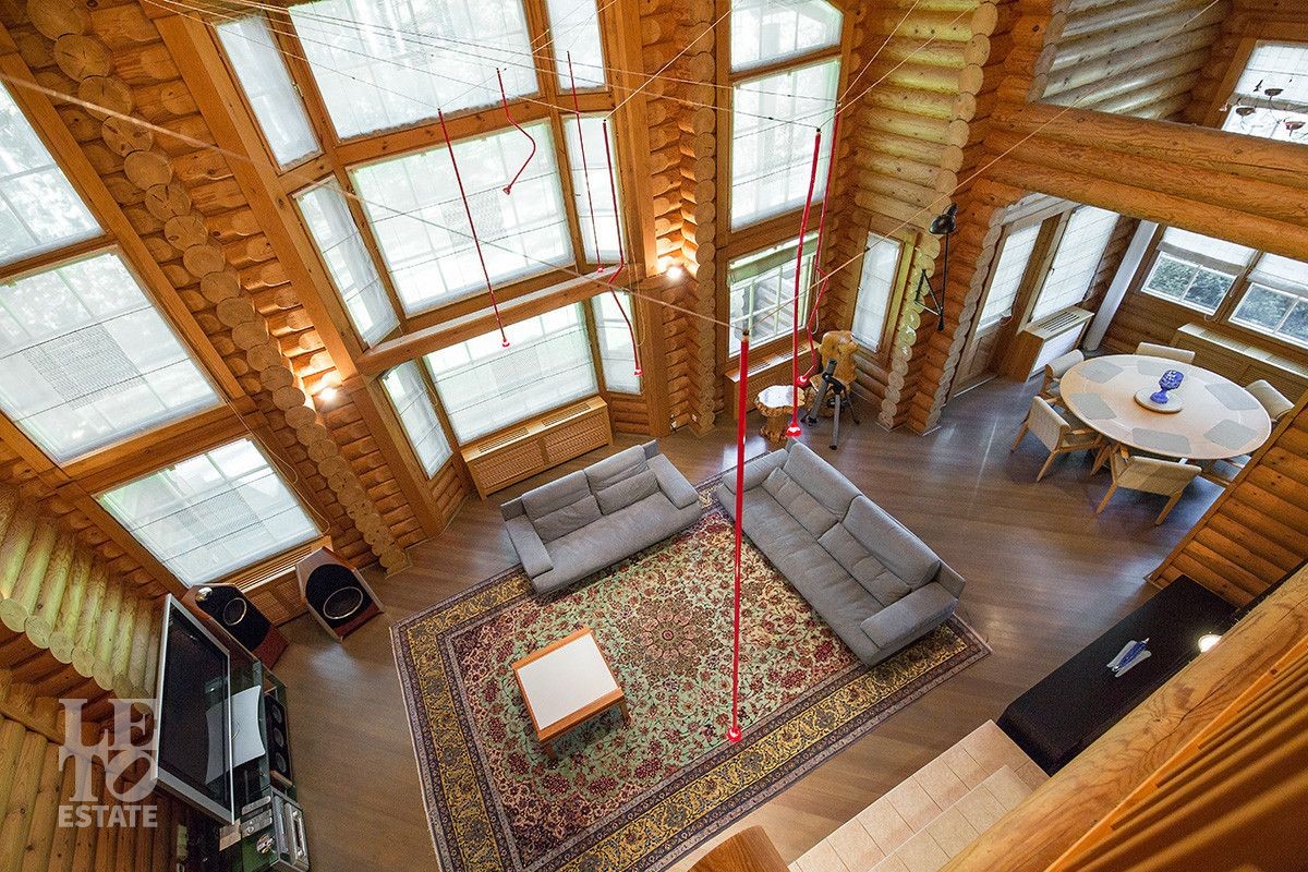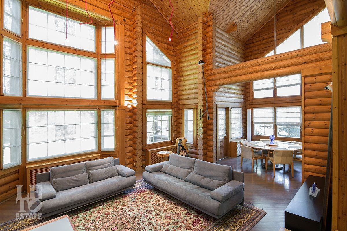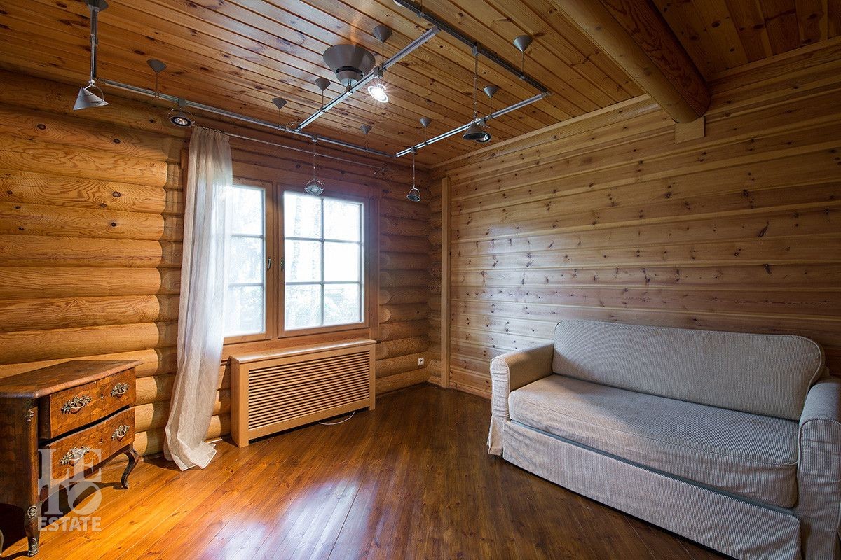Дом построен из оцилиндрованного бревна, укомплектован всей необходимой мебелью и бытовой техникой. На участке растут большие лесные деревья, имеется декоративный прудик и беседка. Организована площадка для парковки автомобилей.