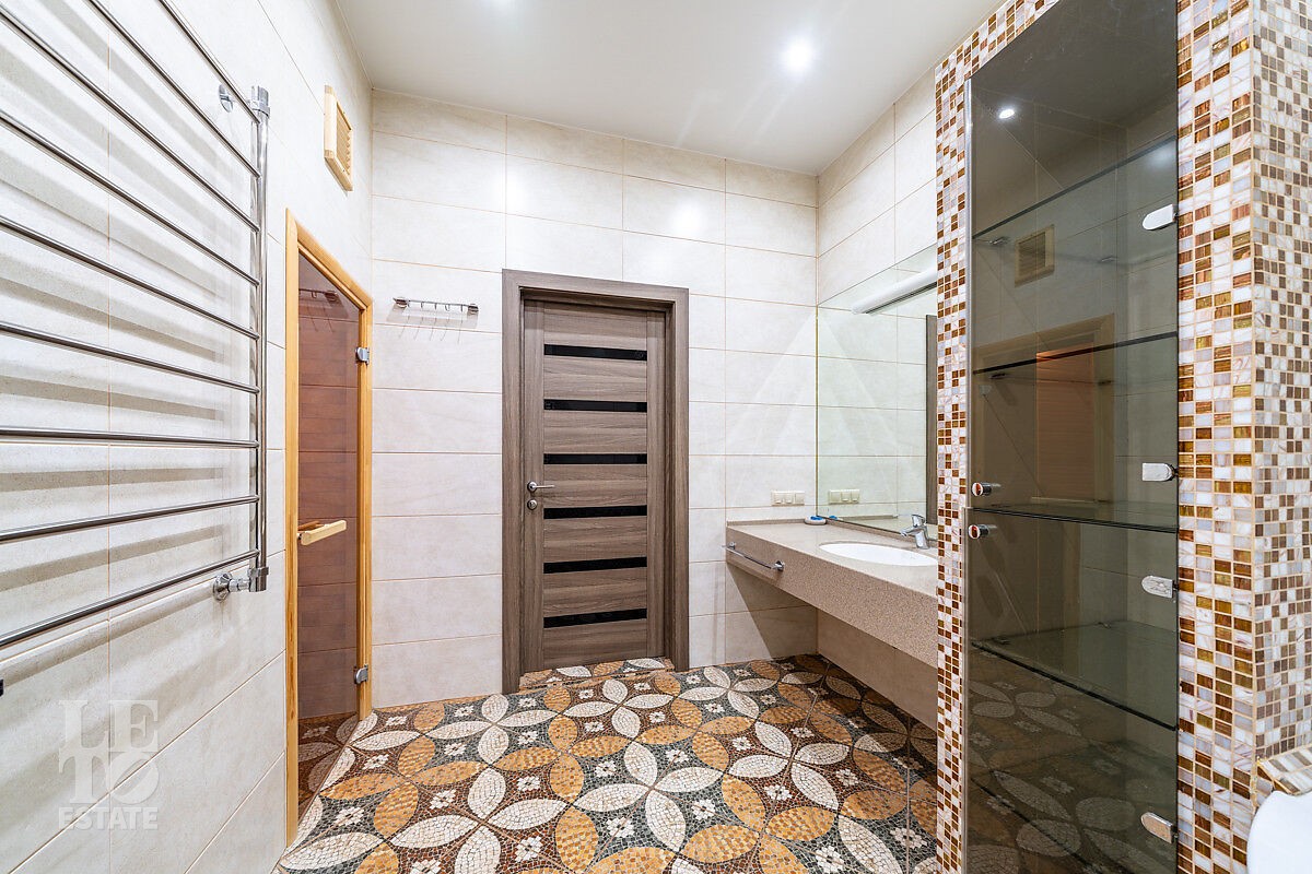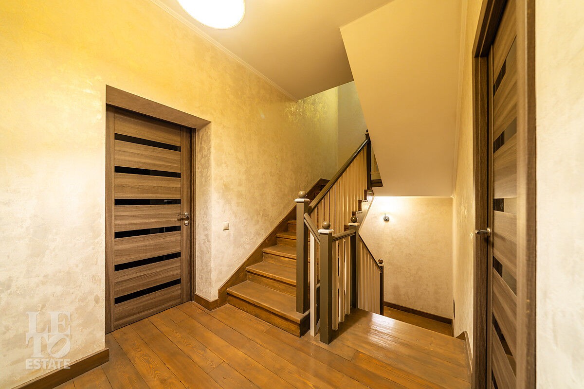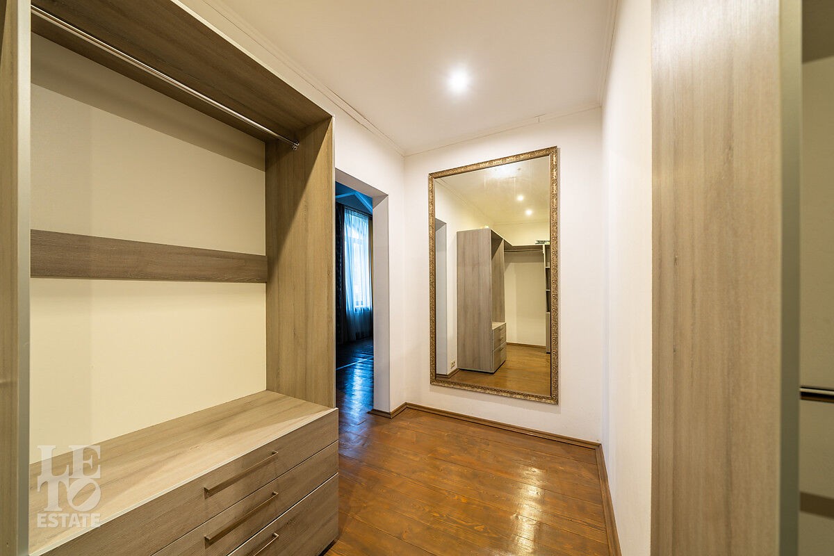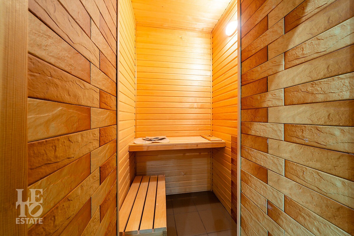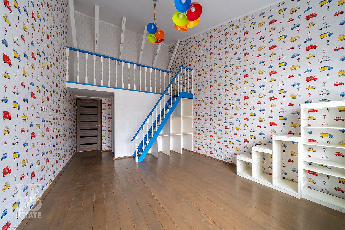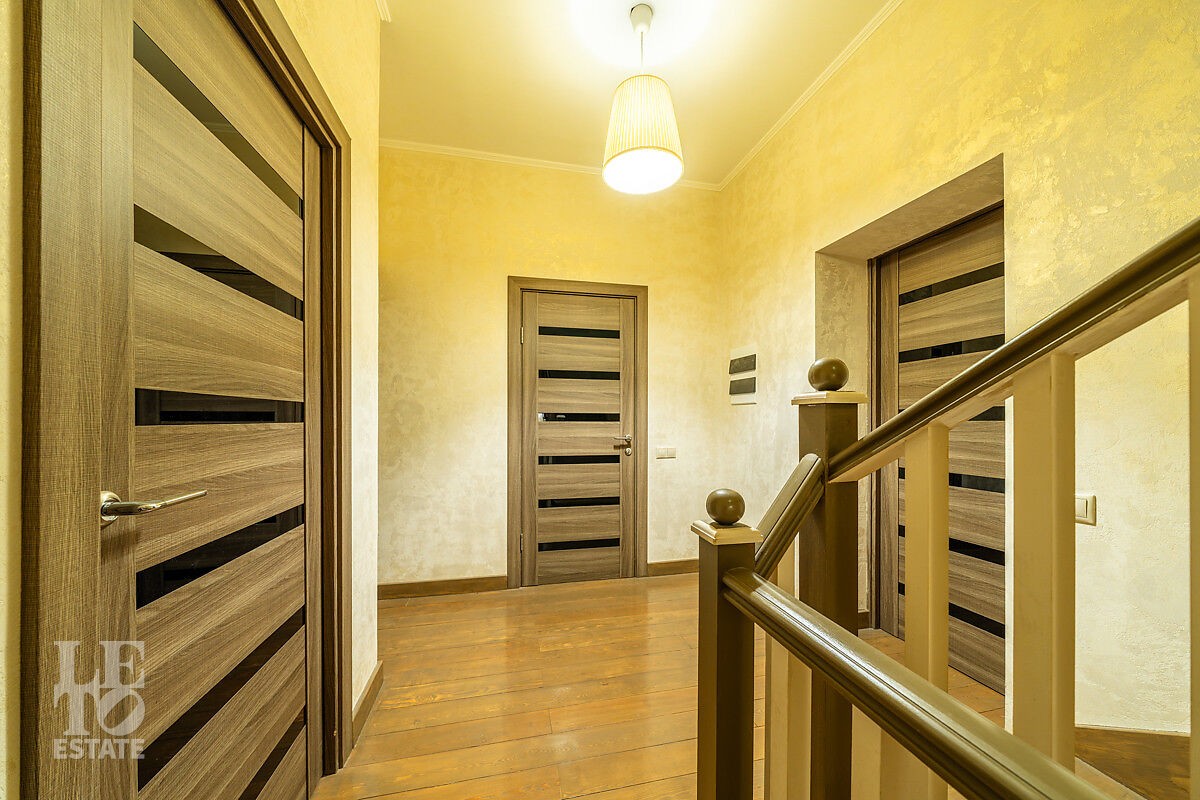 Холл, детская с гардеробной и антресолью, просторная спальня с выходом на балкон, просторный санузел с ванной и сауной, хозяйская спальня с большой гардеробной, антресолью и выходом на балкон.