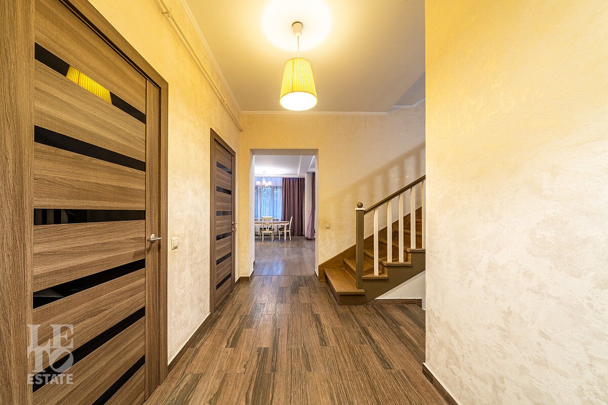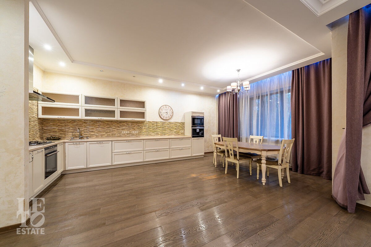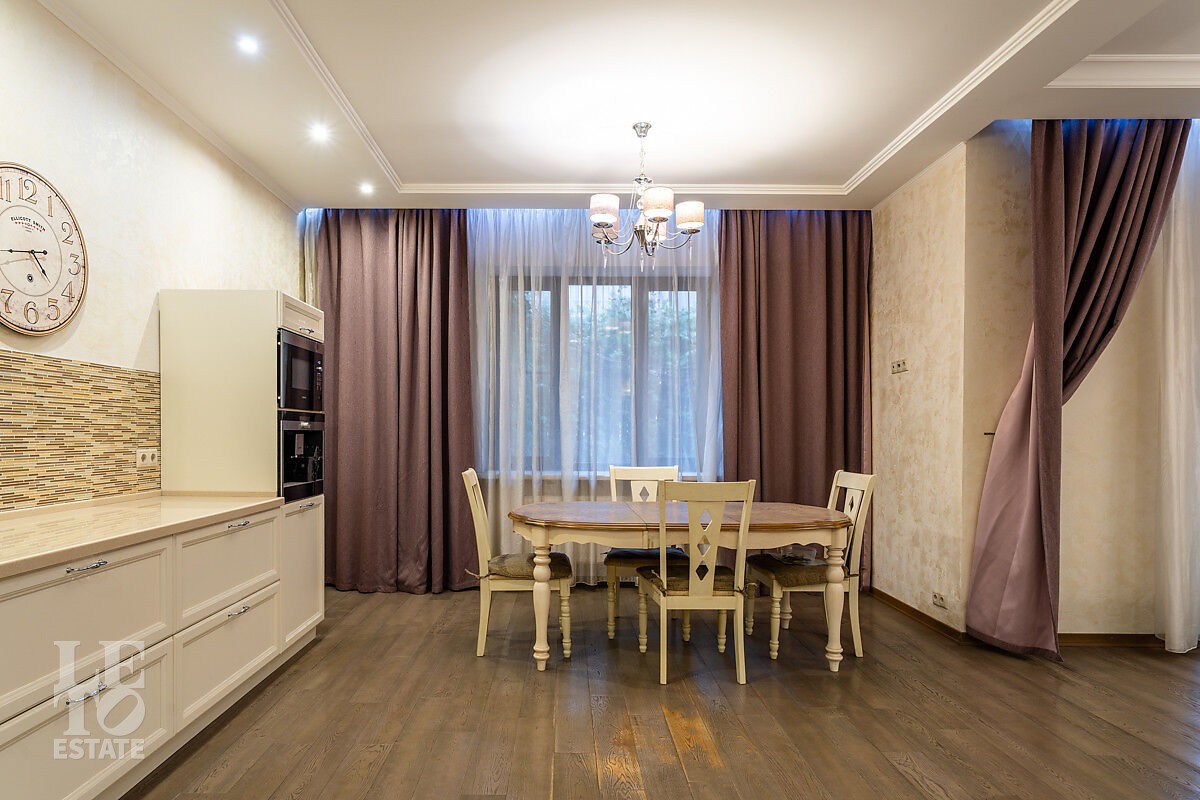 В доме выполнен современный ремонт из качественных материалов. Большая кухня-гостиная оснащена встроенным кухонным гарнитуром по единой столешницей с немецкой встраиваемой техникой SIEMENS: газовая поверхность, духовой шкаф, мощная вытяжка, СВЧ печь, кофе-машина, посудомоечная машина. Безусловно комфорта добавят измельчитель под раковиной и фильтр для питьевой воды.Деревянные фасады под эмалью, фурнитура фирмы Blum. Центром притяжения всей семьи несомненно станет дровяной камин в гостиной. Большая оборудованная гардеробная справится с хранением как сезонных вещей, так ежедневной одежды. Гостевой санузел оборудован в том числе и душевой. Отапливаемый гараж на один автомобиль позволит садиться в сухой и теплый авто в любую непогоду.