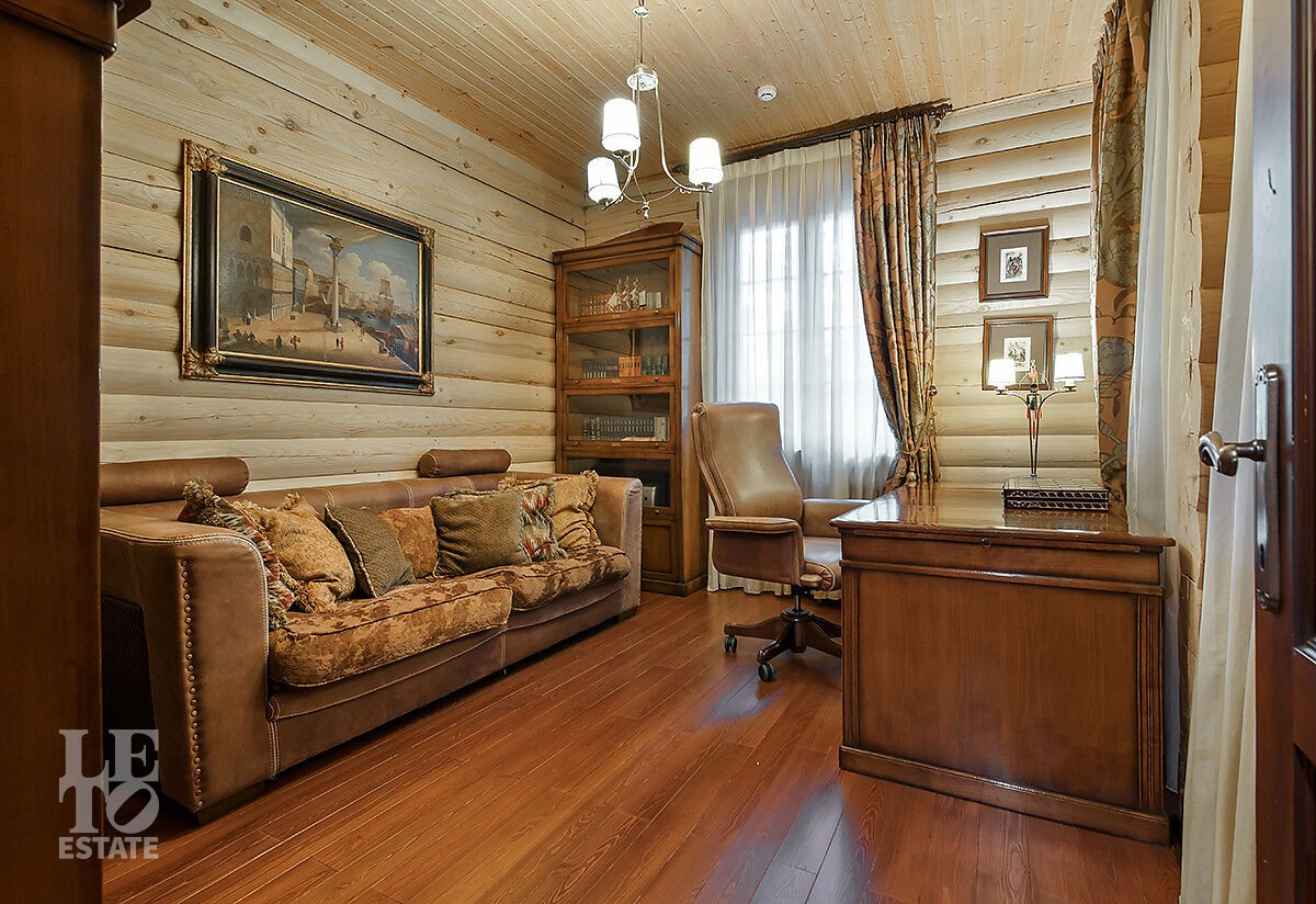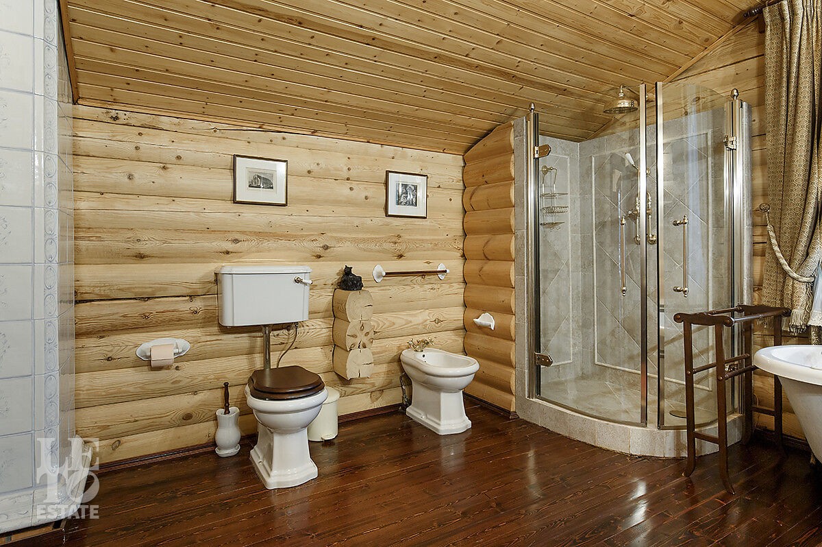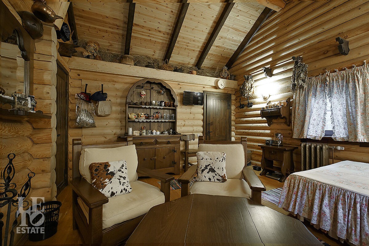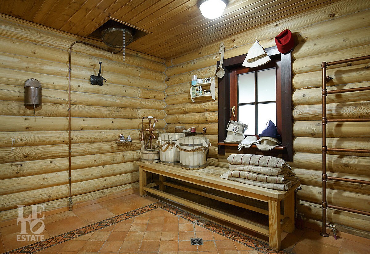 Отдельно стоящая баня включает парную, душевую, санузел и комнату отдыха. Здесь вы по-настоящему расслабитесь после прогулки по лесу или активного дня на свежем воздухе.