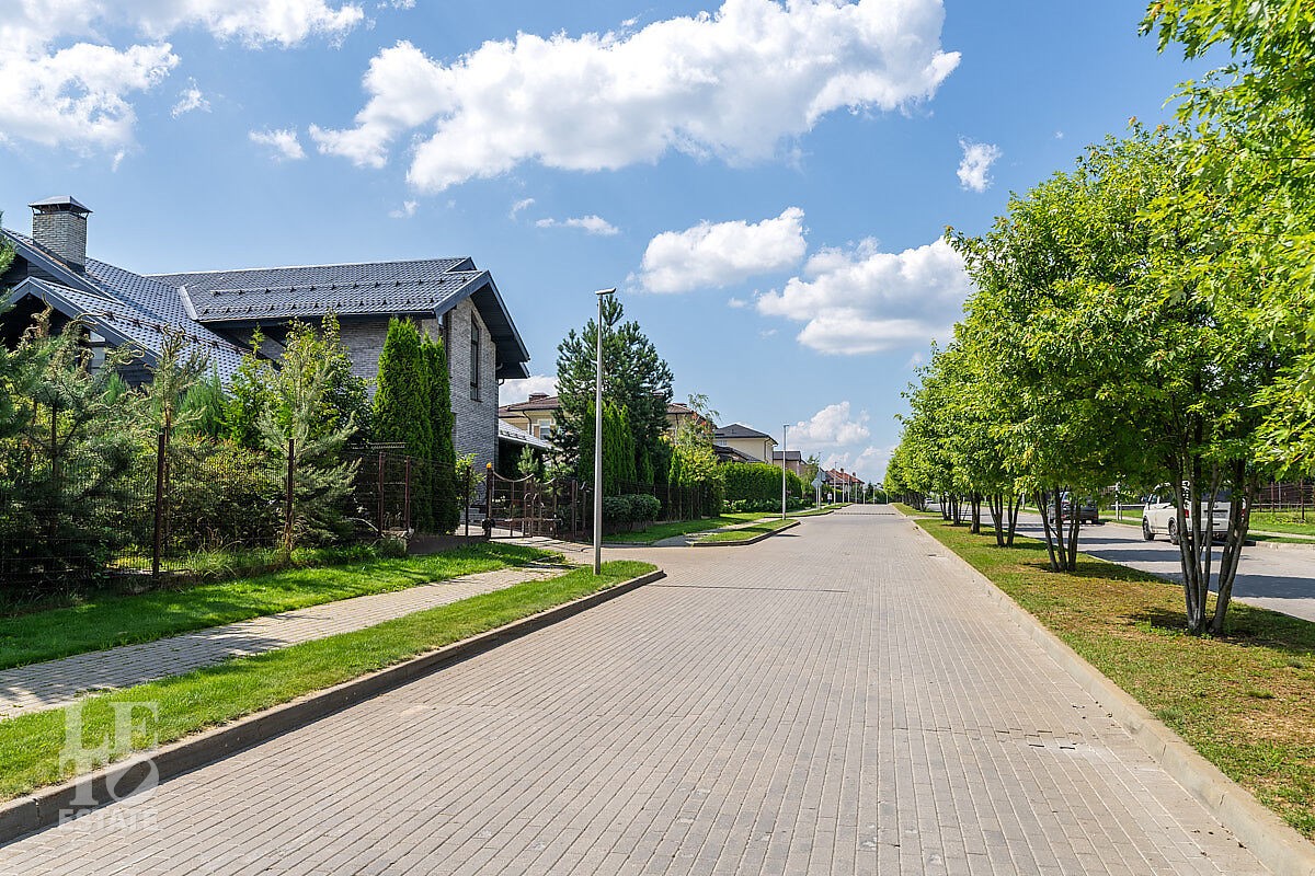 Участок площадью 15 соток грамотно благоустроен ландшафтным дизайнером. Высажен и ухожен газон, декоративные насаждения и плодовые деревья. Есть дренажная система и автополив с датчиком дождя. Для отдыха на свежем воздухе есть костровая и барбекю-зоны. Заняться спортом можно на баскетбольной площадке. Для малышей есть детская площадка с горкой и качелями. Есть гараж на два автомобиля с тёплым переходом в дом.